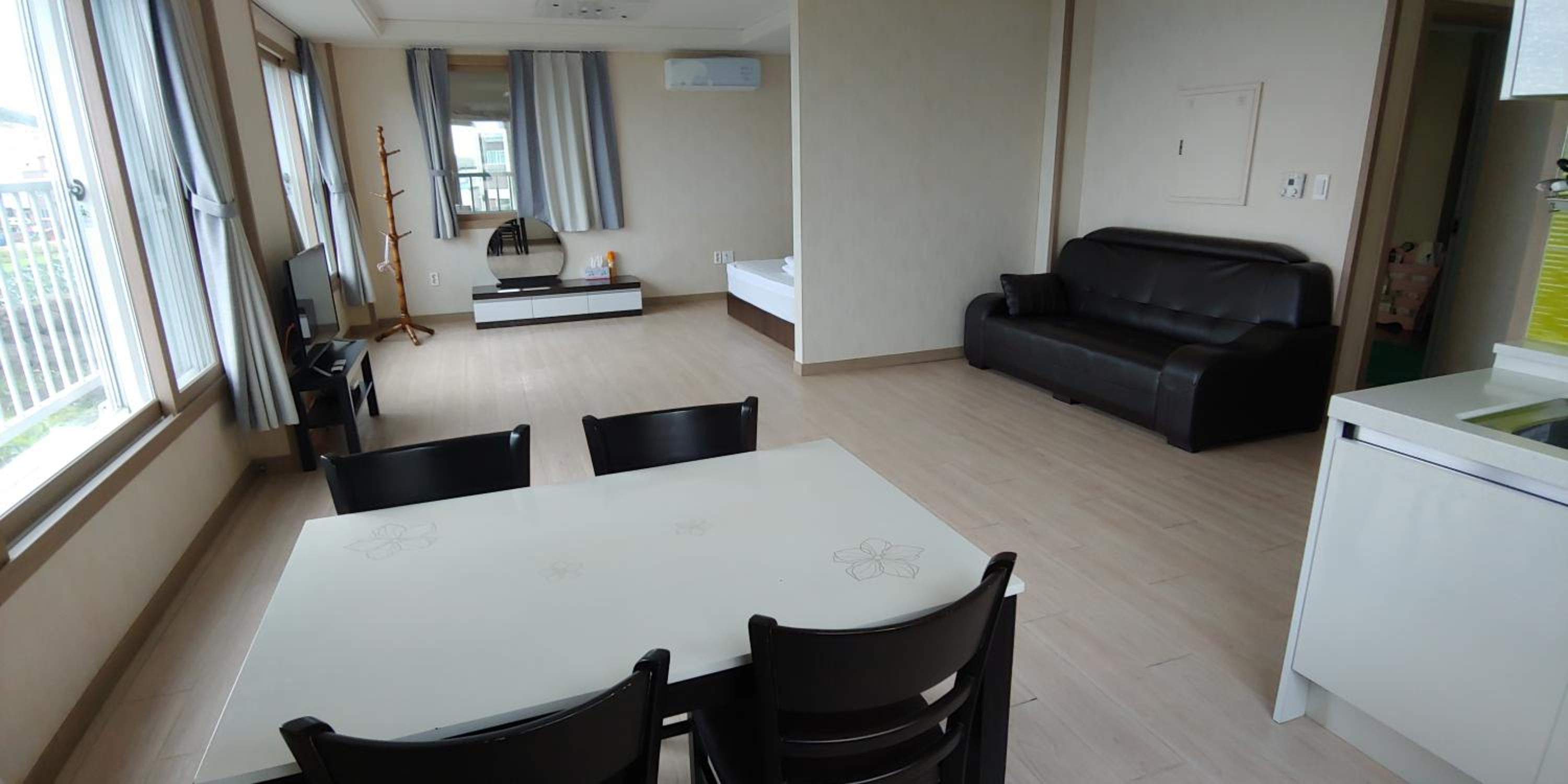 Not difficult to find with Naver. Lady landlord is friendly and appear when we check in. She give us a run down of the room and also did our laundry, which is great! There are complimentary coffee, instant noodles and cooking facilities in the room. Is also walking distance from main restaurant street and very near to Seongsan Ilchulbong.