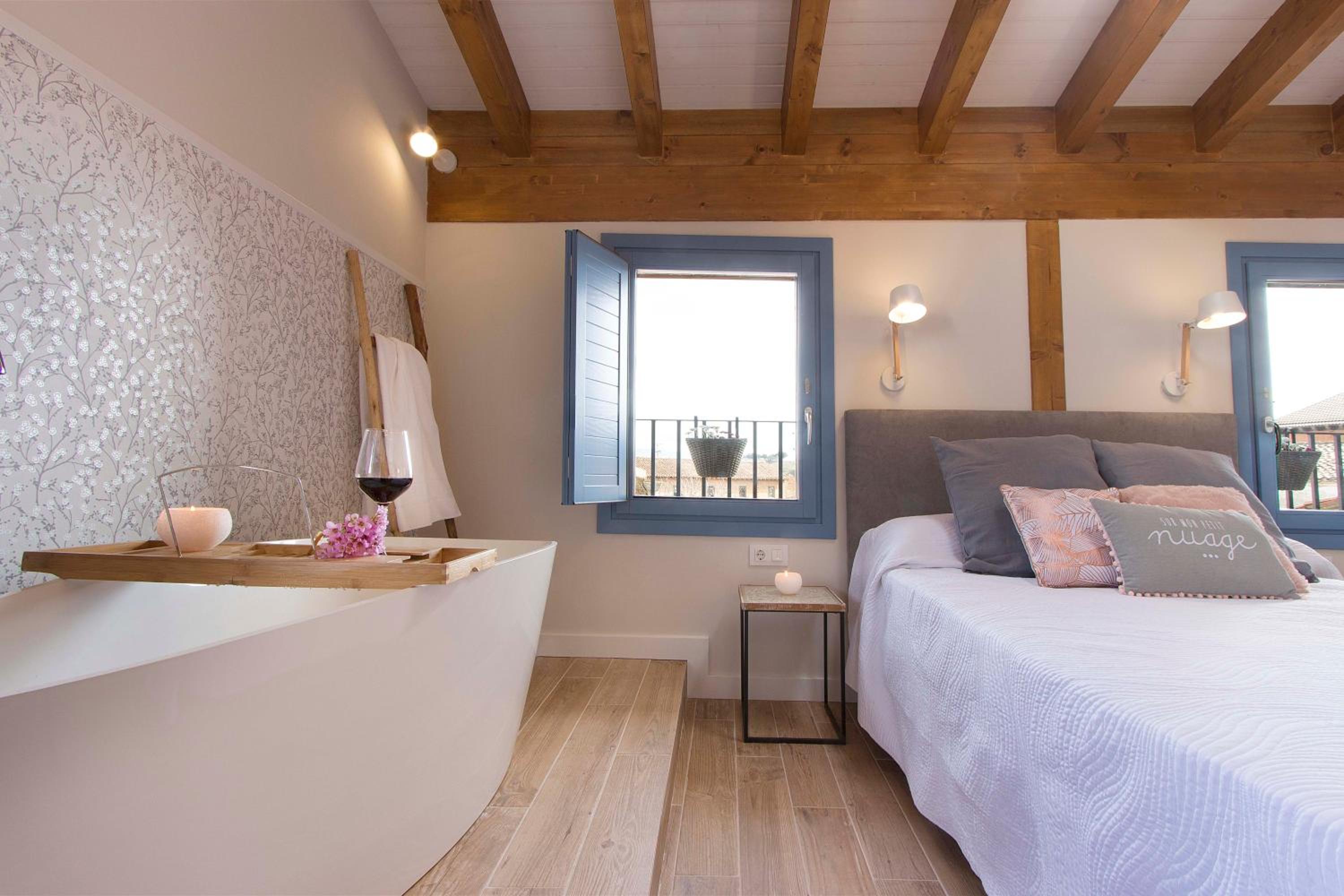 La habitacion muy confortable, total ausencia de ruidos, cama supergrande muy comoda, ducha con abundante cuadal de agua, facilmente regulable la temperatura. La calefacción de suelo radiante muy confortable. En el salon hay una chimenea de leña que cuando llegamos la habian encendido. No fue el caso porque no ibamos con intencion de hacer rutas, pero en los alrededores hay muchas rutas de naturaleza para hacer a pie o en bicicleta. Nuestra anfitriona Elena estuvo muy pendiente de nosotros durante toda la estancia, dandones buenos consejos que han contribuido a una estancia muy agradable