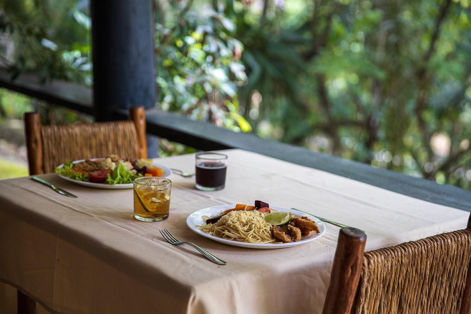 Paisagem natural, comida caseira, fresca e gostosa.