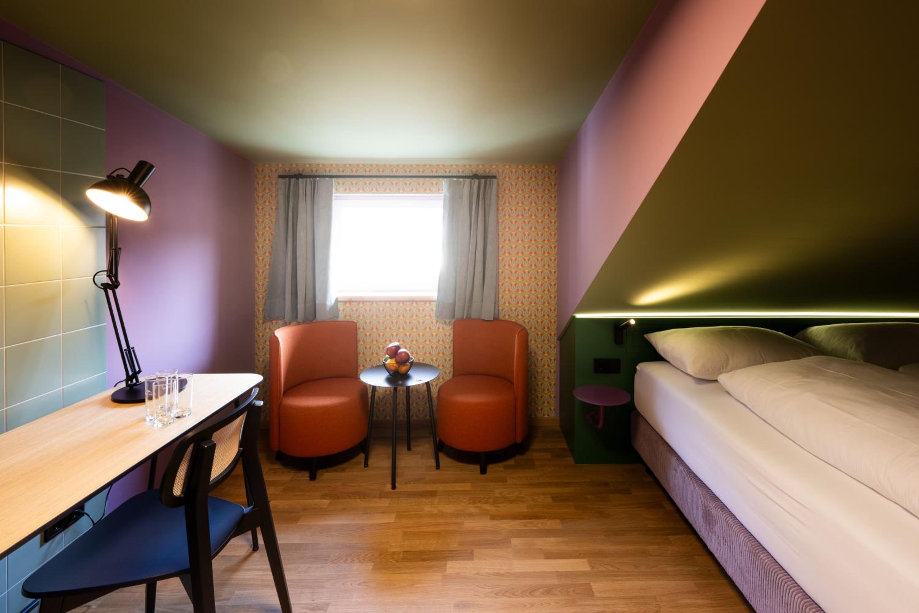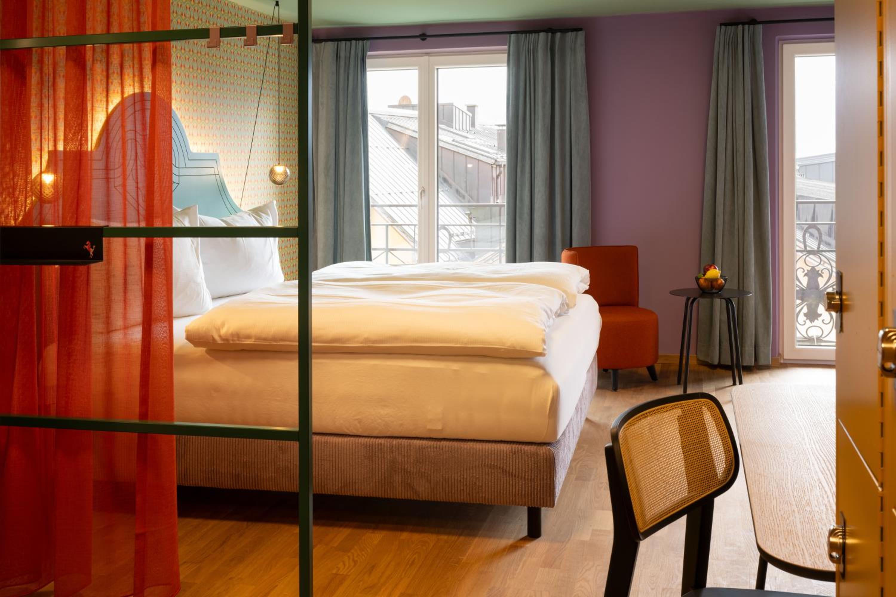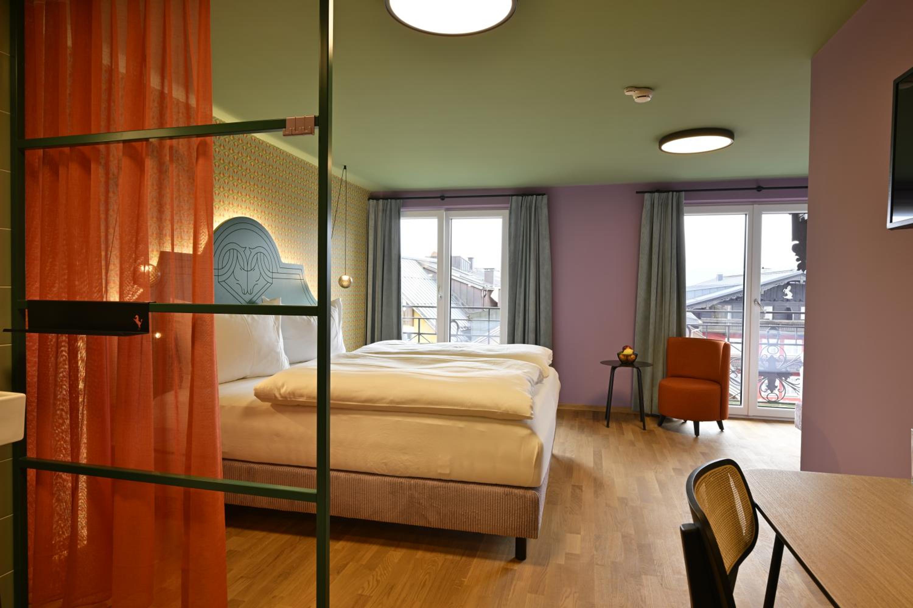 Tolles Hotel mit echt coolen Zimmern. Alles sehr stimmig, v.a. die Farben an den Wänden versprühen Freude. Wir hatten ein 3-Bettzimmer mit Balkon und Blick aufs Weisse Rössl! Frühstück war sehr gut.
