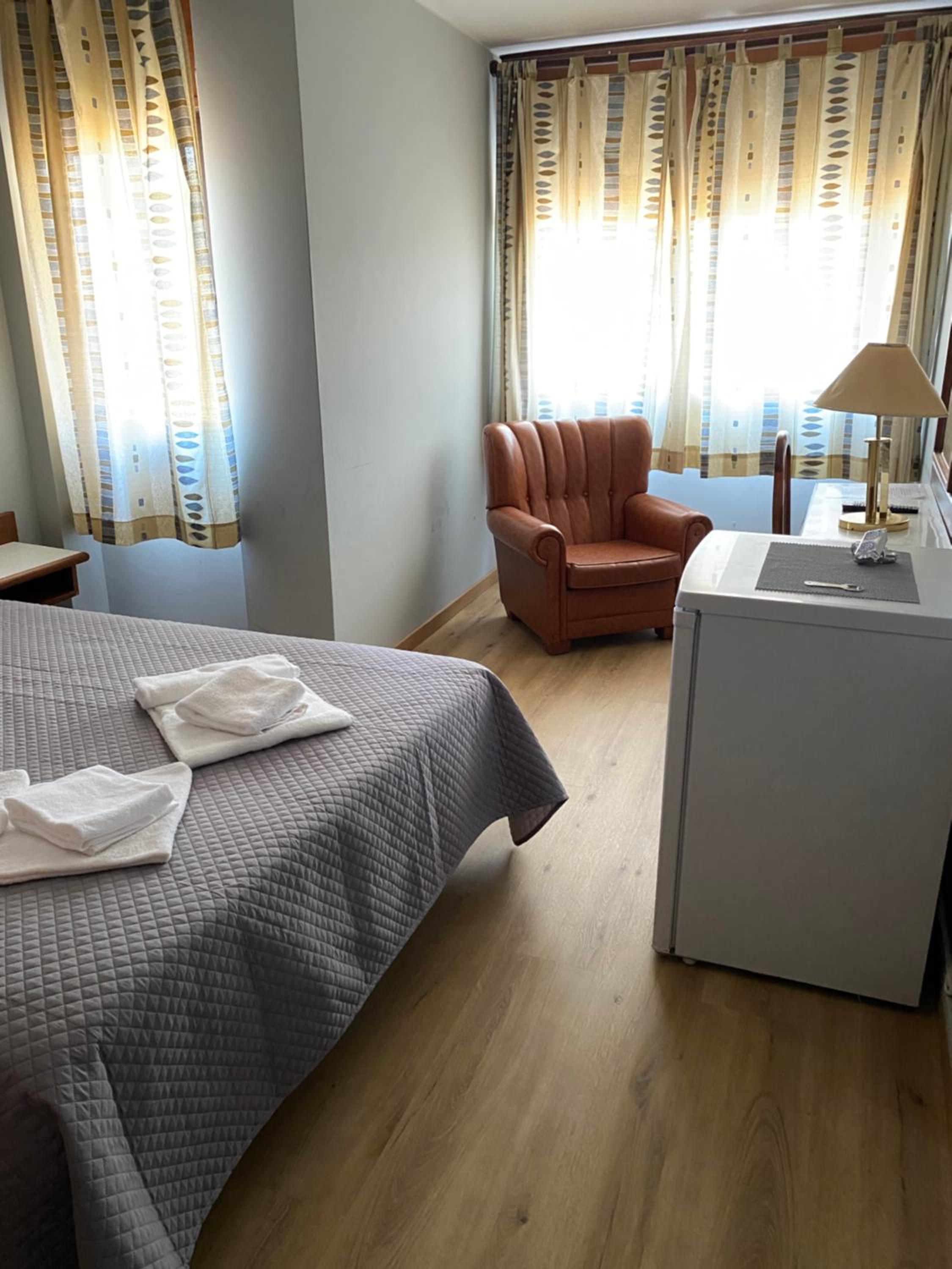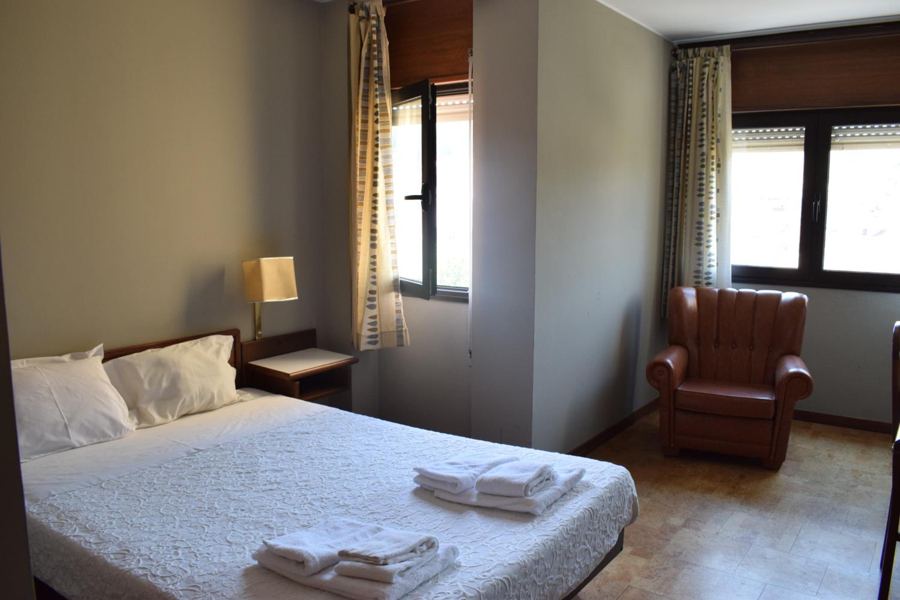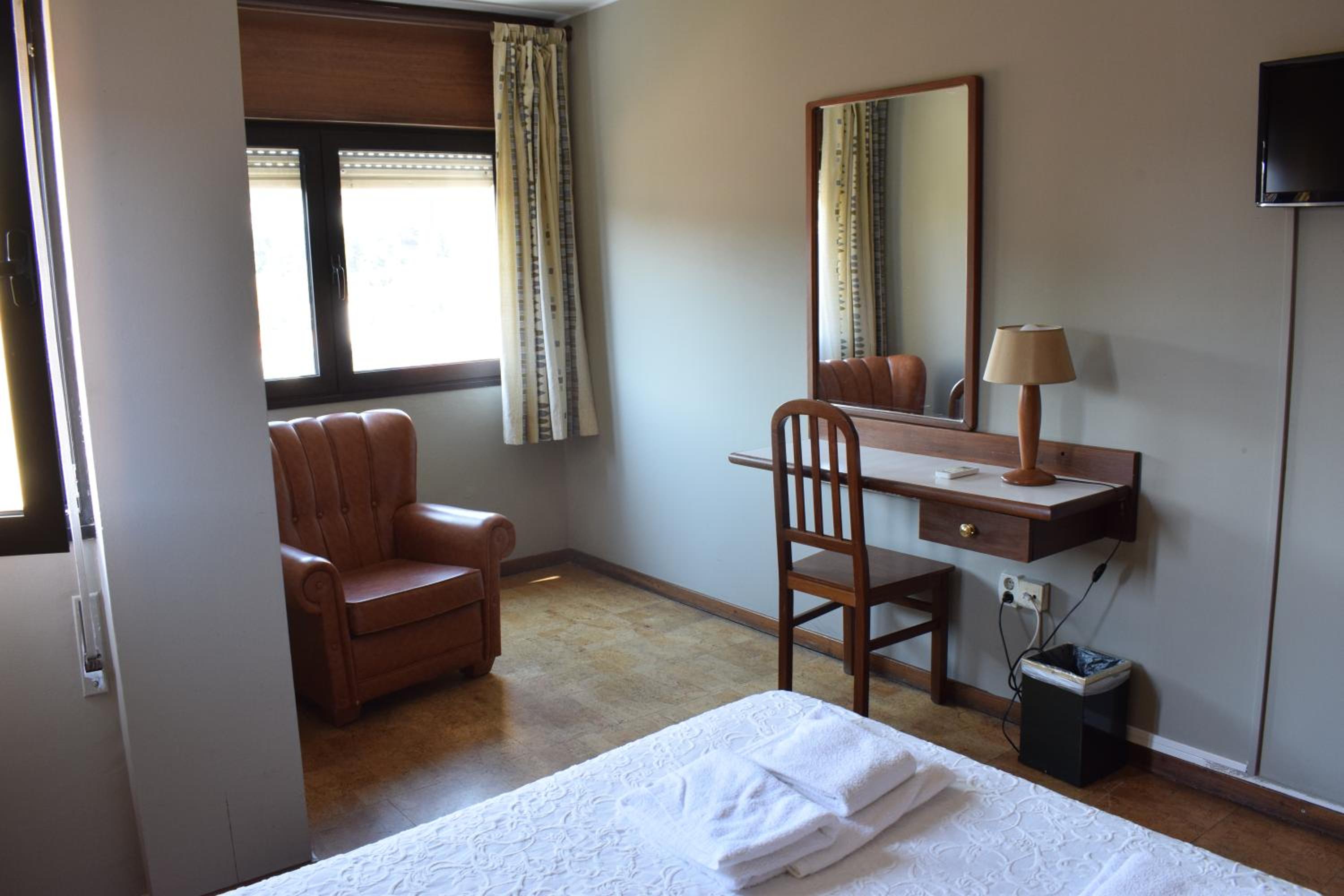 Hotel sencillo, camas cómodas, con desayuno incluido, café y leche, panecillo, queso, jamón York, y crisantemos con mermelada, se puede aparcar en la calle sin problemas