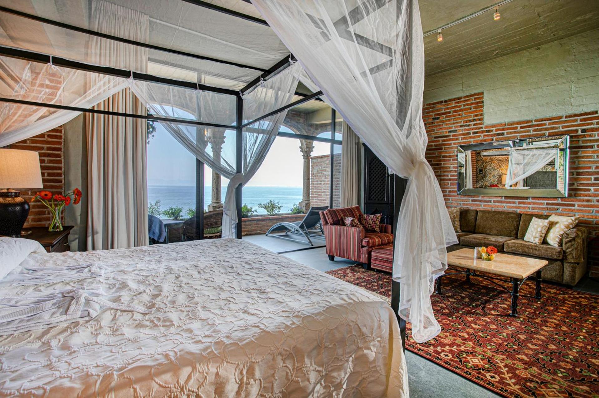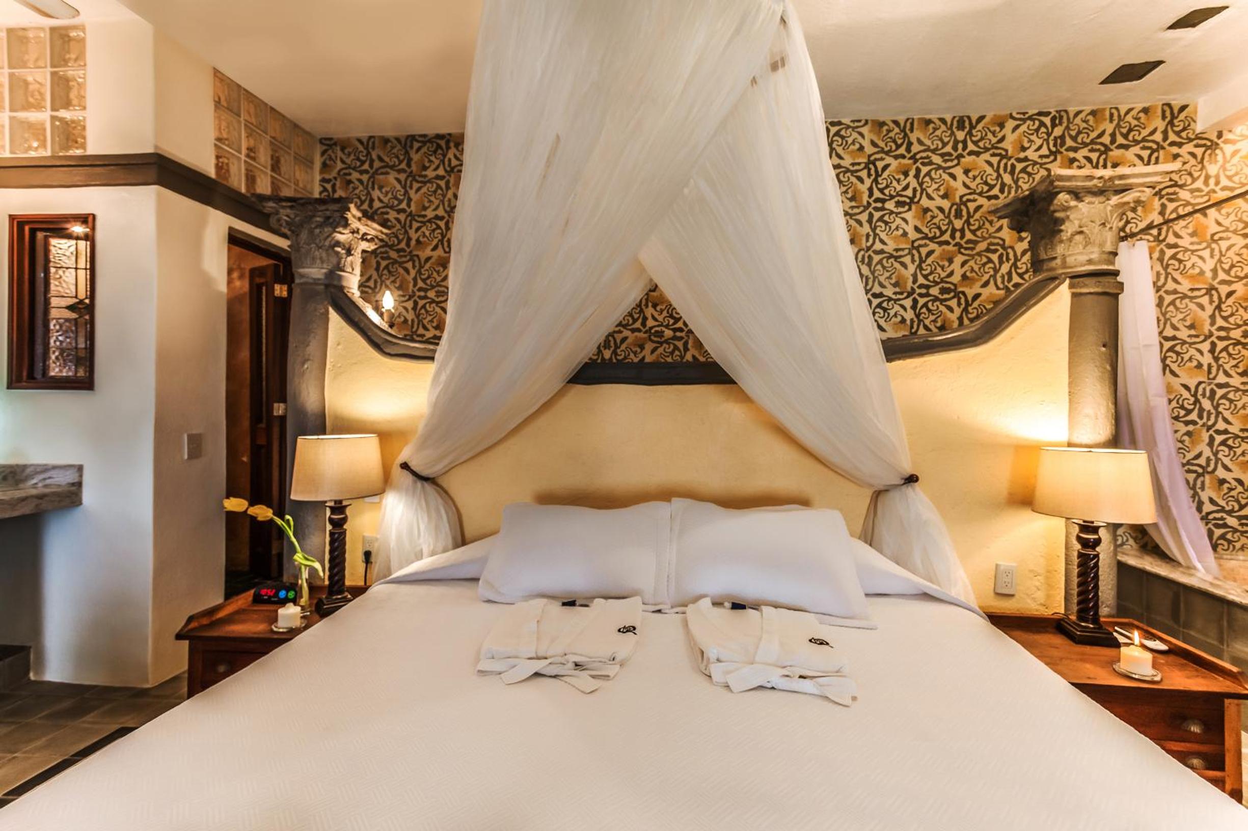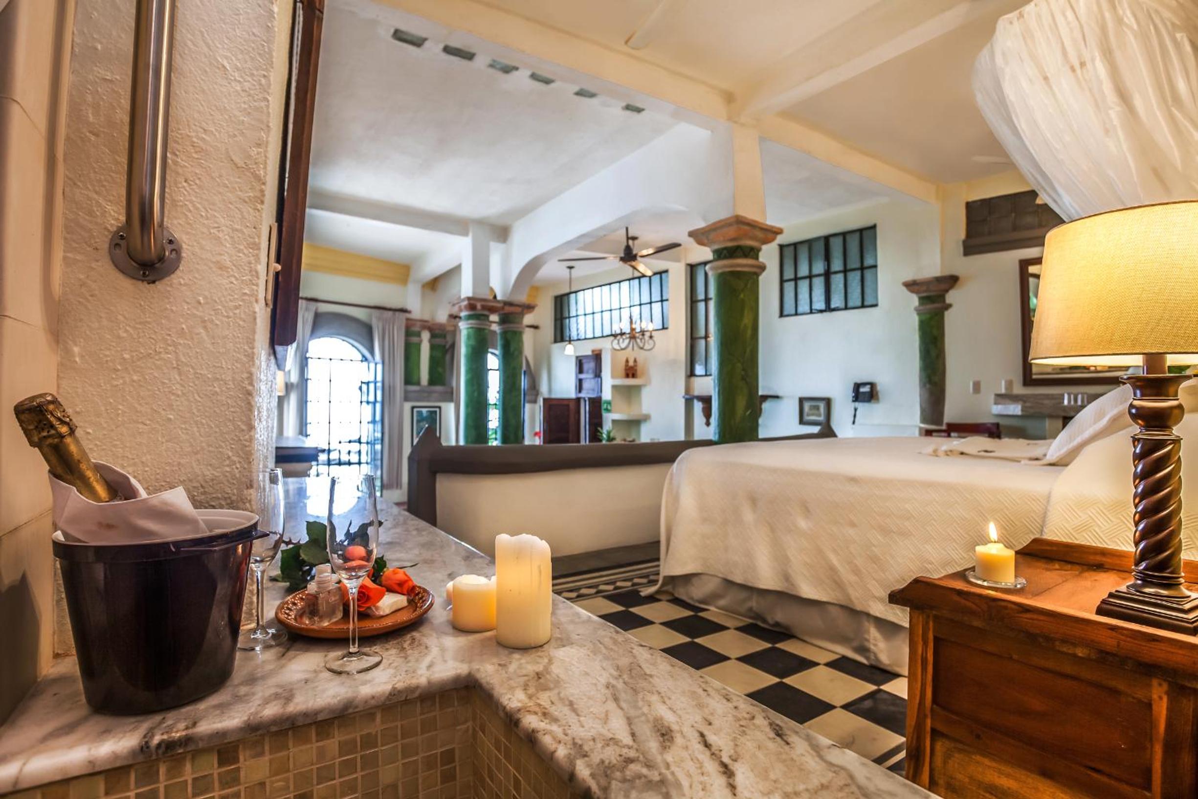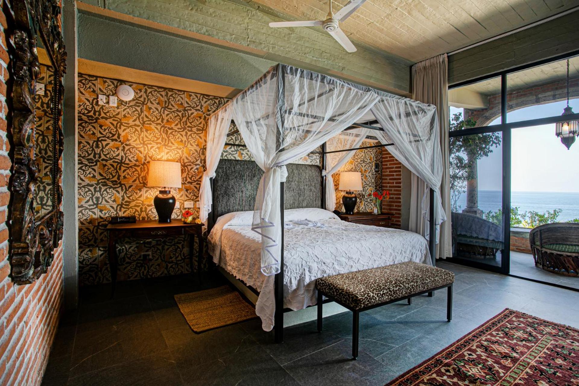 Elegant Suites with Ocean Views: Step into classic Mexican elegance with antique furniture and balconies overlooking the ocean. Enjoy modern amenities like free Wi-Fi, coffee makers, and kitchen facilities in most suites.