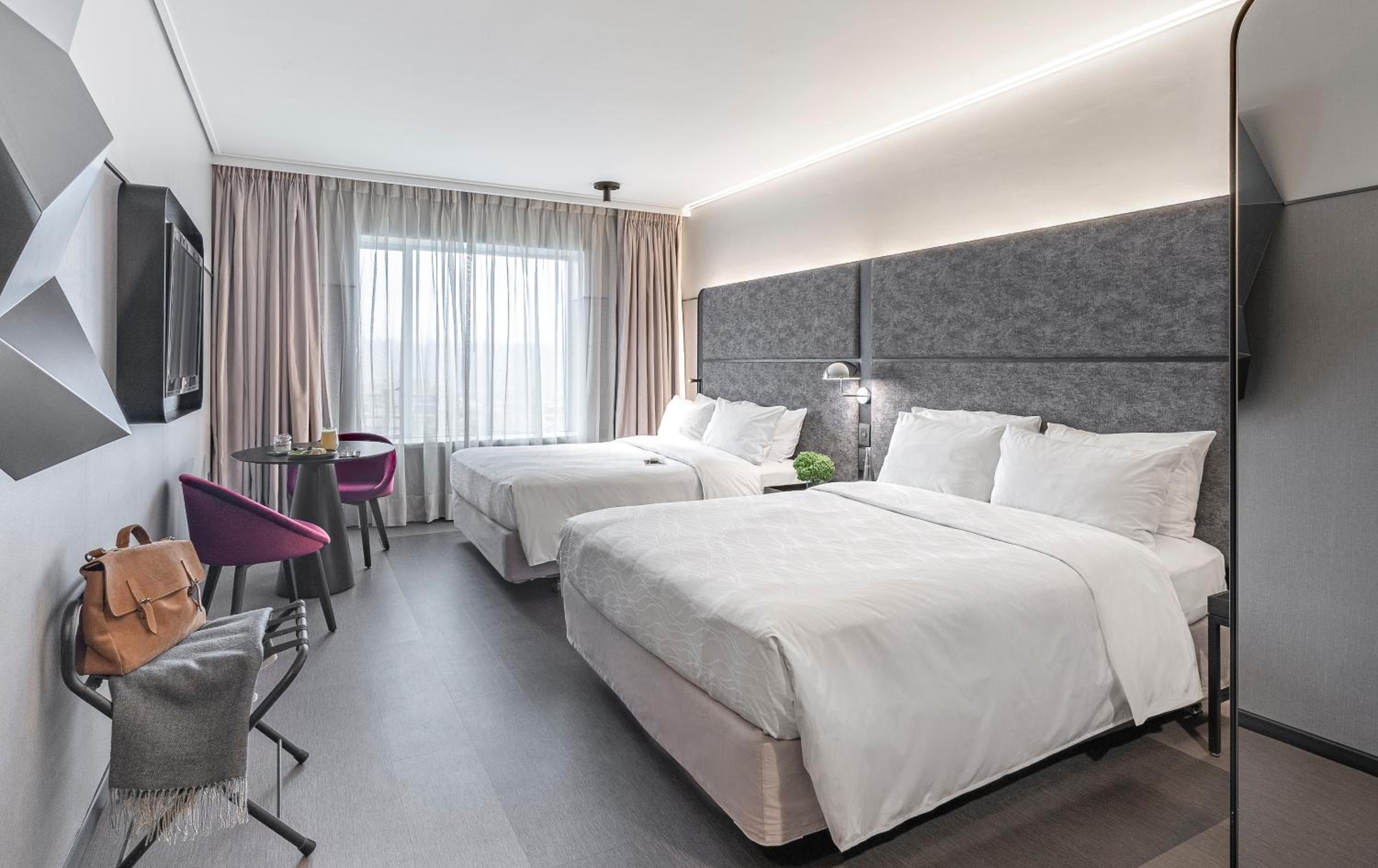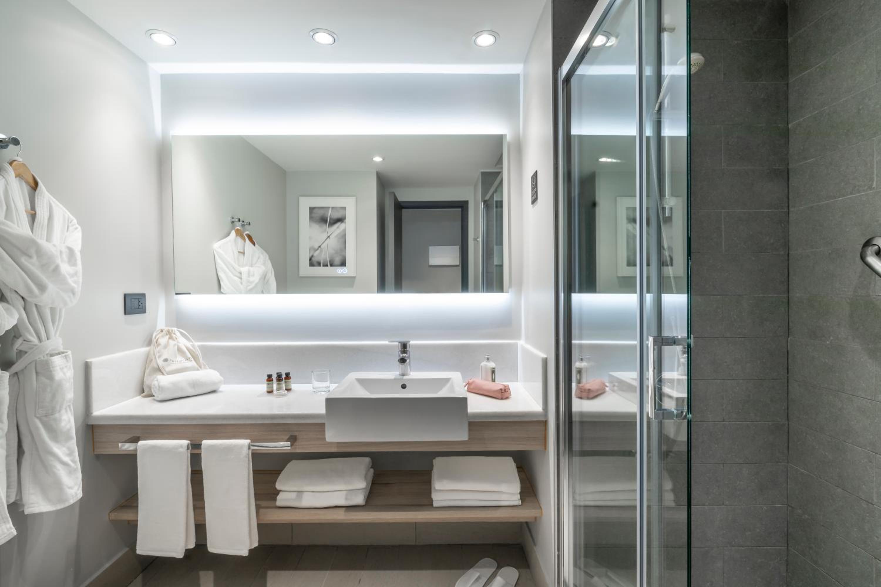 The rooms at Hotel Pullman Santiago Vitacura are designed for comfort, featuring carpeted flooring, heating, and private bathrooms with toiletries. Each room is equipped with free Wi-Fi and a flat-screen TV, ensuring a relaxing stay for all guests.