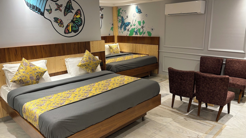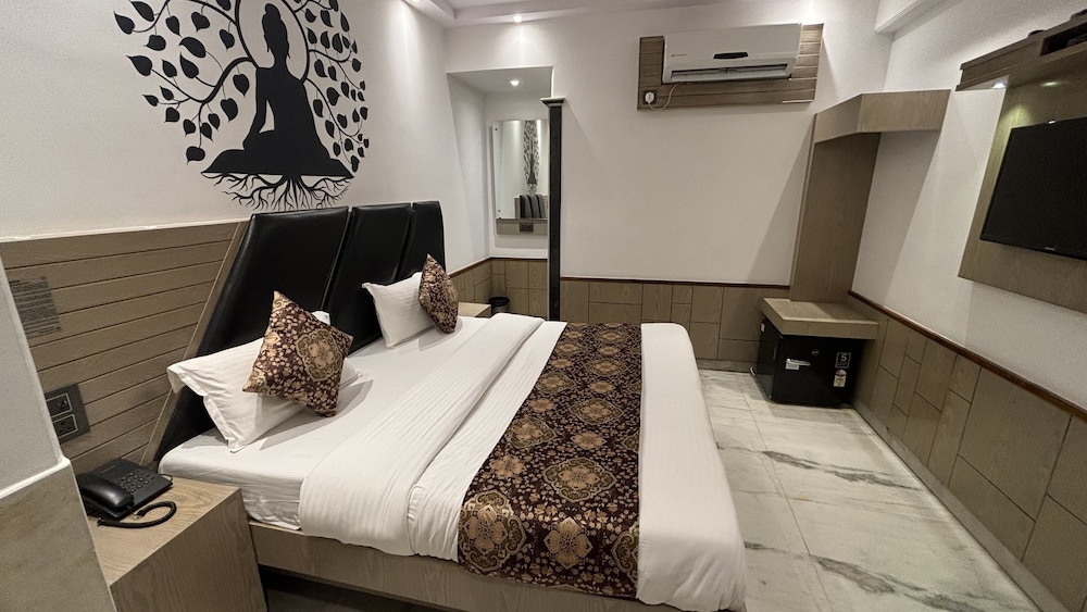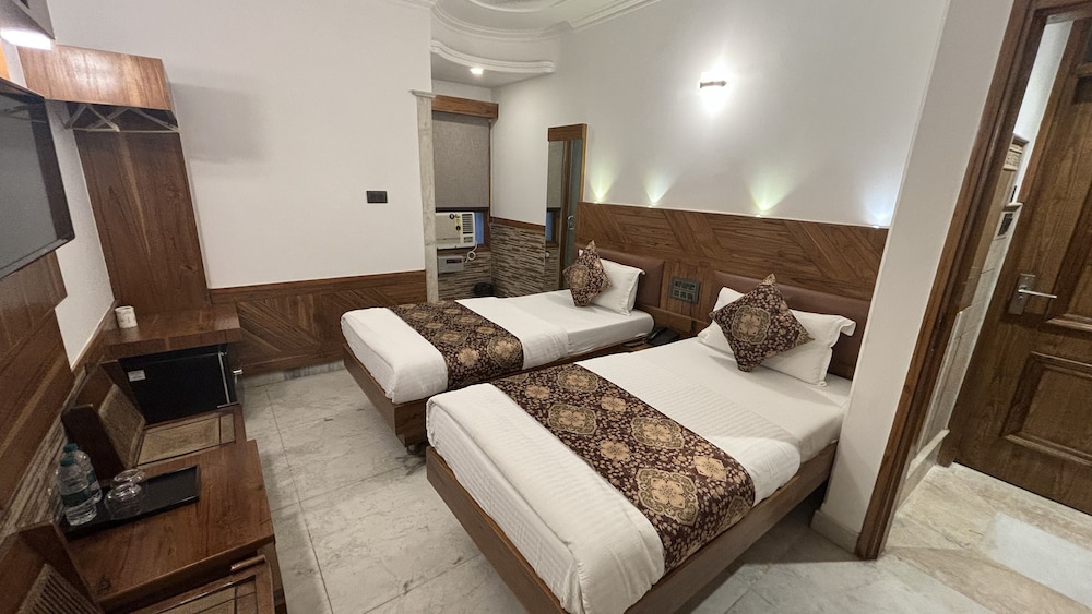 El hotel es adecuado para conocer la vida de la INDIA y como vive la mayoría de la gente. También su área aledaña de comercio y compras es muy barata y accesible. Pero el hotel y sus servicios son de pésimos a deprimentes. Sobre todo el baño que es inevitable mojar al bañarse y no hay donde colgar toallas, ni artículos básicos.. no hay limpieza en los tres noches que estuvimos. No tiene ventanas y había ruidos desagradables de los cuartos vecinos… en general poca higiene y el personal del front desk, parece que te hacen un favor por estar ahí… difícilmente un taxi llega en horas normales al hotel necesitas la mototaxis. Si traes equipaje asegúrate de que el transporte te alcance hasta el hotel. En dos ocasiones tuvimos que contratar el moto taxi porque era imposible llegar de otra manera al hotel. Los alrededores son sucios en la calle aunque hay restaurants baratos y limpios.