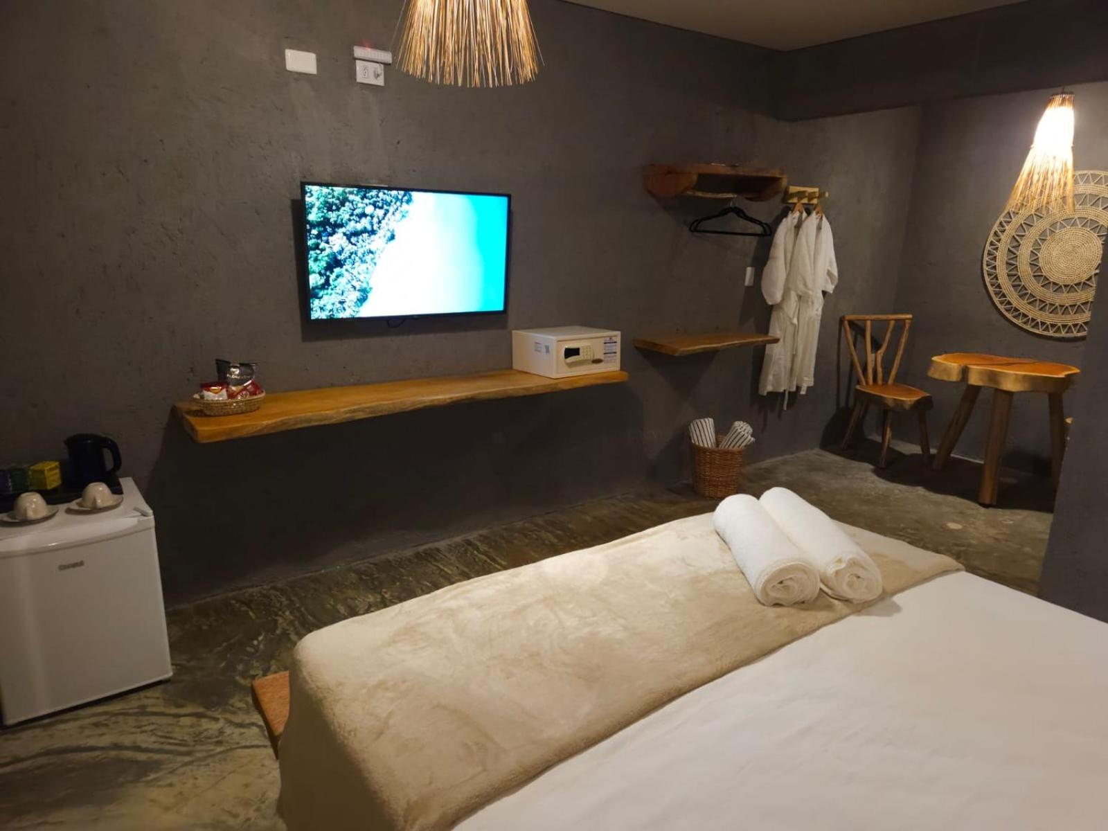 Comfortable Rooms with Modern Amenities: Our rooms feature a patio with pool views, private bathrooms, air conditioning, a safety deposit box, and flat-screen TVs for your comfort and convenience.