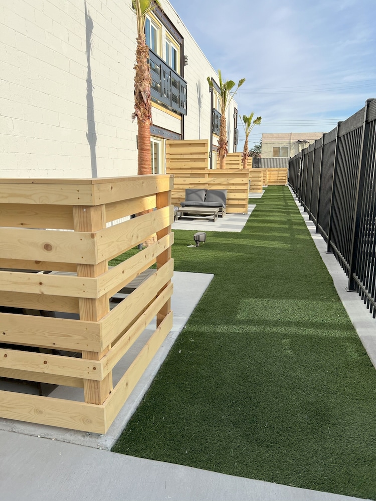 This boutique hotel offers all in the LGBTQ+ traveling community an excellent choice for staying in Las Vegas, and locals too, with a great pool and bar with menu food selections. The property has been completely refurbished like bran new. Fun interestingly decorated rooms offer several good choices and are an excellent value. On and off street parking available with security in this neighborhood in transition and genderfacation. Special shout out to the friendly fun and professional bar service by Brandon, James, Nolan, and Tim. I will be returning.