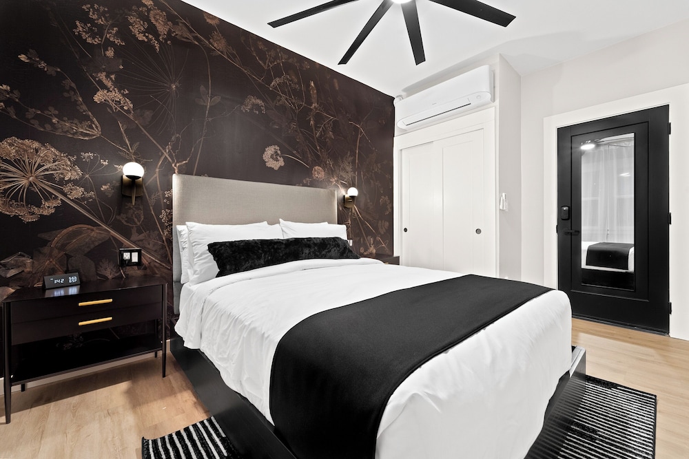 The hotel itself is very nice. Some rooms have shared bathrooms while others have their own bathrooms. I stayed in the 2 bedroom which had 2 full private baths. The entrance for the room is a little strange since it’s in the side of the hotel almost feels like a small walkway/alleyway. It was all self check in and remote, but the number they say to reach out in is very quick to respond to any questions. Now to the room itself, right when you enter there is a small doorway then to the right is the first room which has a twin bed and bath. Everything was clean and they provided shampoo, body wash and conditioner. Plus towels. Another factor to note is only the town room has a door. The room with the king bed does not have a door at all except in the bathroom. Also the living room which has a couch and tv is in the larger room. Also the mini fridge is in there. Since it’s on the bottom floor you can hear all the noise from the floor above. It’s not too bad but you can definitely hear it. The room doesn’t let any natural light in so you don’t really know what time it is or how the weather is outside. I didn’t mind it cause to sleep it definitely helped having it completely dark in there. The stay was nice , not your typical hotel but still enjoyed it. Also the walk to all the shops & food is only a couple mins since it’s right by little Italy. Also for Parking there is none but I used spot hero ( it’s an app) and found parking nearby for fairly cheap in a parking garage.