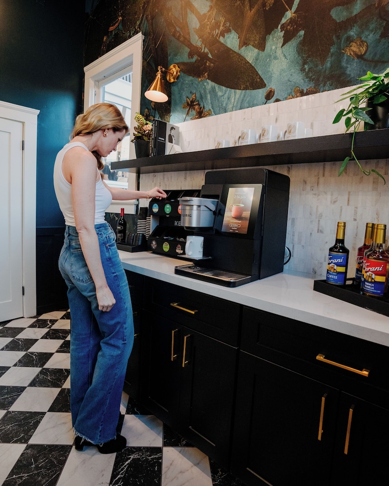 It has a nice look inside and out. The surrounding area is really nice and little Italy is so cool. The biggest downside is in the shared bathroom, the shower was not draining. The water was up to my ankles. So then I question even though the bathroom looks clean, why was this not fixed or was it not noticed. Luckily, another bathroom down the hall was a lot better. Ample coffee around too but I'm unsure how often they change the water in it.