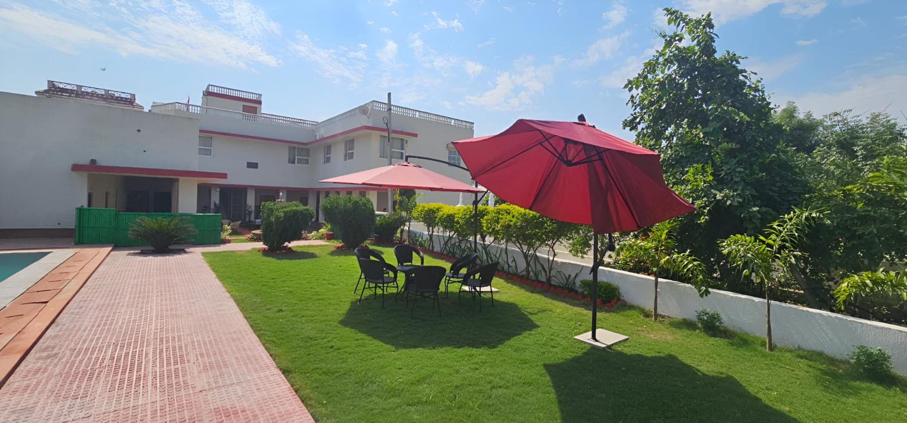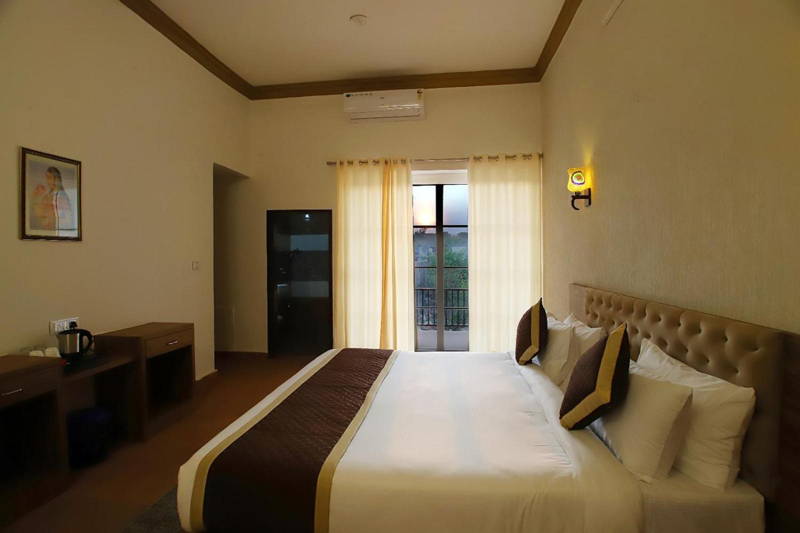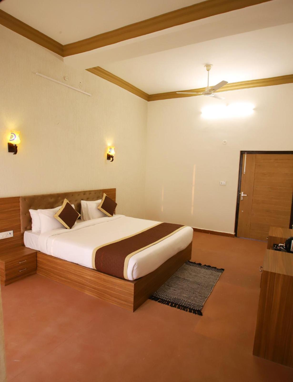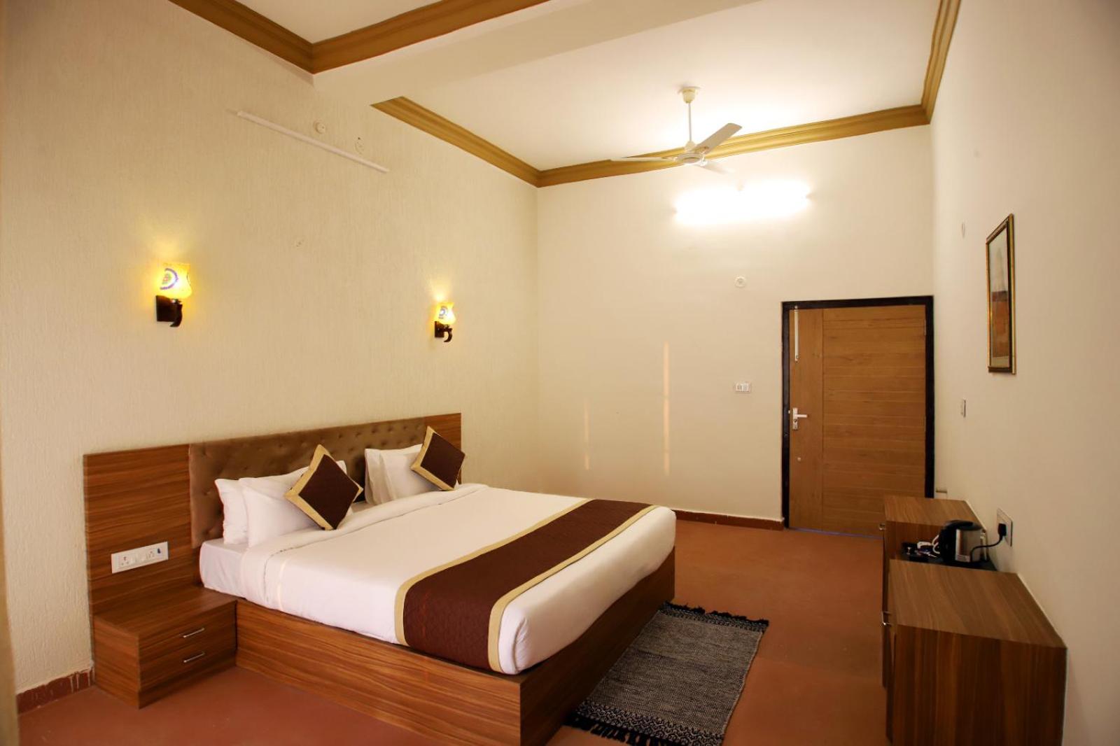 Book your stay at The Vanashv in Tehla and enjoy a relaxing getaway with your family. Explore Sariska National Park and unwind in our outdoor swimming pool. Indulge in delicious breakfast options and admire city views from your room's balcony. With family rooms, children's playground, and attentive 24-hour front desk service, we ensure a memorable stay for all guests. Experience comfort with air-conditioned rooms, free WiFi, and room service. Start your day with a hearty breakfast and make the most of your vacation in Tehla. Book now for a delightful holiday at The Vanashv.