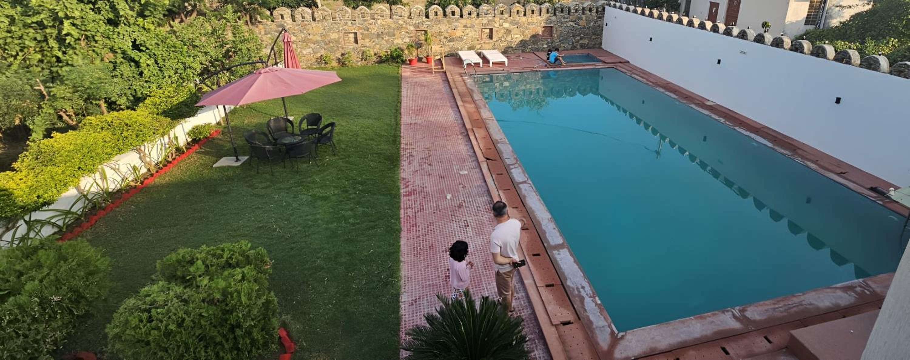 excellent hotel, located 1km away from sariska gate. very comfortable rooms, bathroom very Nice and very clean. excellent food made by the hotel team. the swimmingpool is very Nice with a view on a nearby fort. very recommended place!