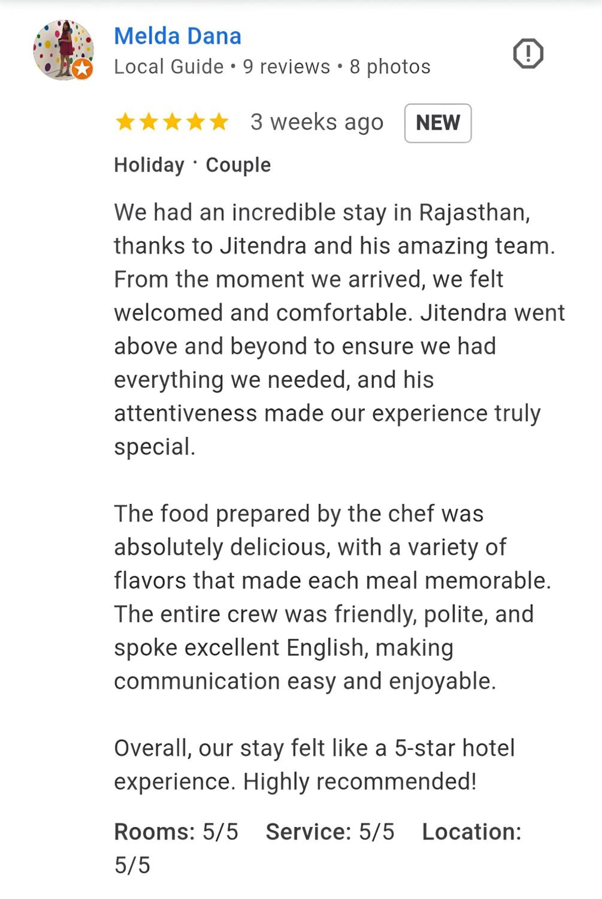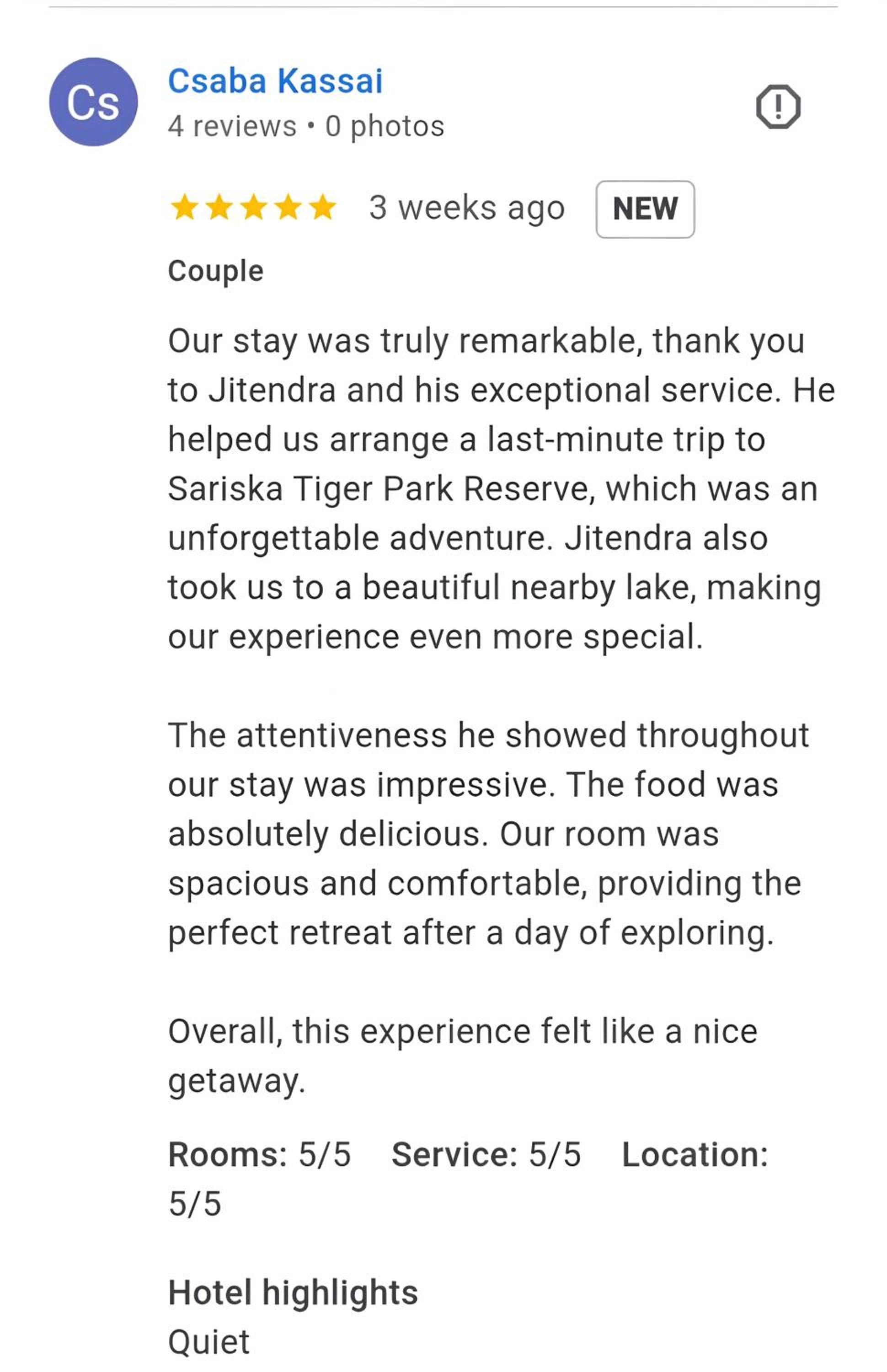 Communication is good. Service fantastic. Rinku contacted me in advace, went to the shop for us for some things we needen upon arrival, arranged our safari, arranged a good driver to Delhi (and last time to jaipur as wel). Few minutes from safari entrance. Rooms spacious and clean, super nice to relax at the pool after the safari. Very quite as well during the day and night. I initially had some doubts as the price is very cheap but they just undervalue their service… as it is worth for me easily twice the price.