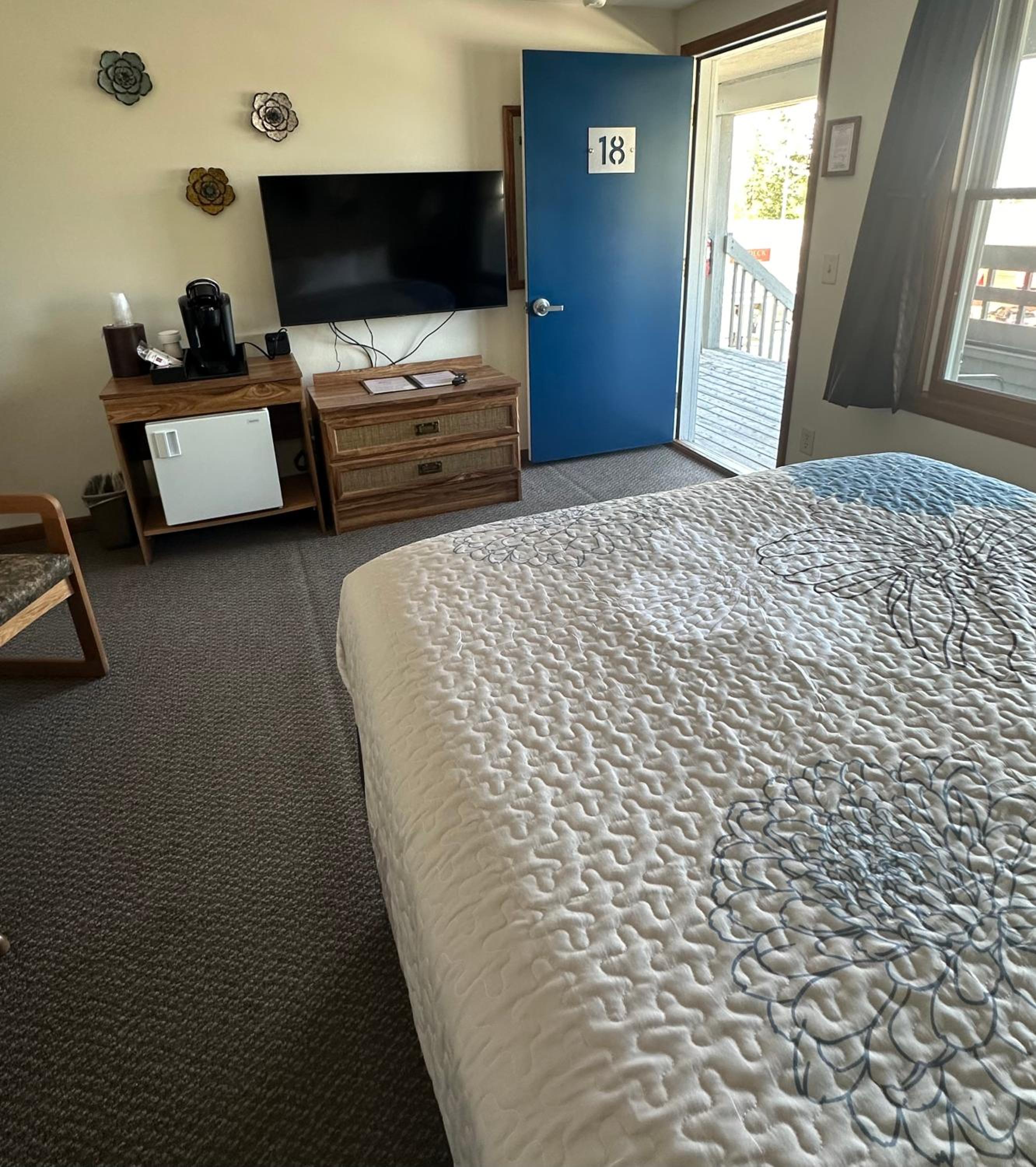Suggestions to Owner. Rm 10. Closed room smelled damp. Weather permitted opening windows, which aired out the place. Toilet did not always flush, sink slow to drain. Perfect location for all things Sister Bay and surroundings. Keurig and k-cups very much appreciated.