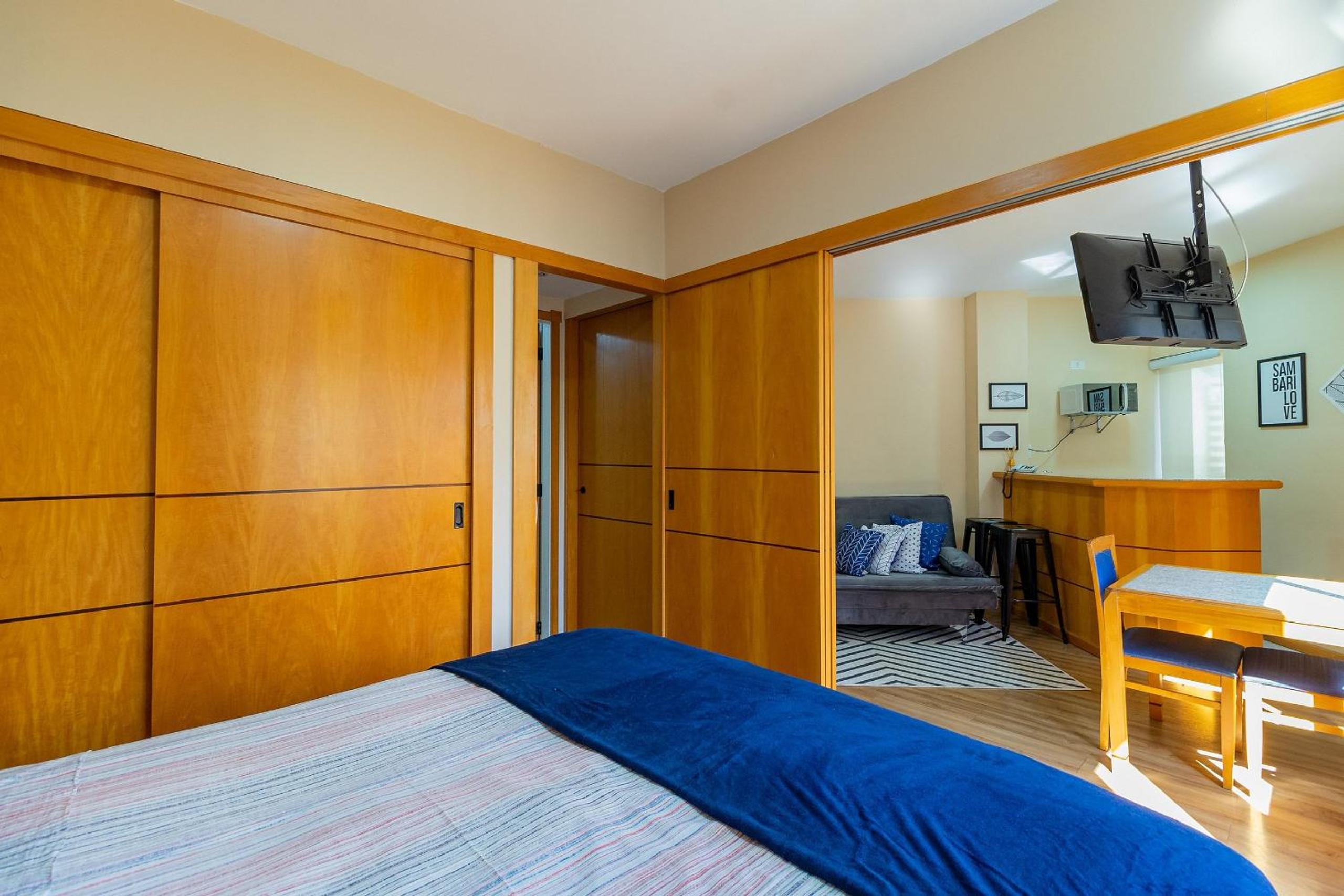 Apartamento limpo, bom tamanho para família e confortável. Localização excelente, com muitos restaurantes, padarias e mercados. Cozinha equipada ok. O ponto negativo é que fizemos a reserva para 4 pessoas e não havia roupa de cama ou toalhas para 4 pessoas (apenas 1 toalha de banho!). A sala com sofá cama para as crianças não tem ar condicionado e fez calor durante a noite. Como chegamos tarde e fizemos apenas o pernoite, não chegamos a entrar em contato com o locatário para solicitar roupa de cama e os itens fizeram falta.
