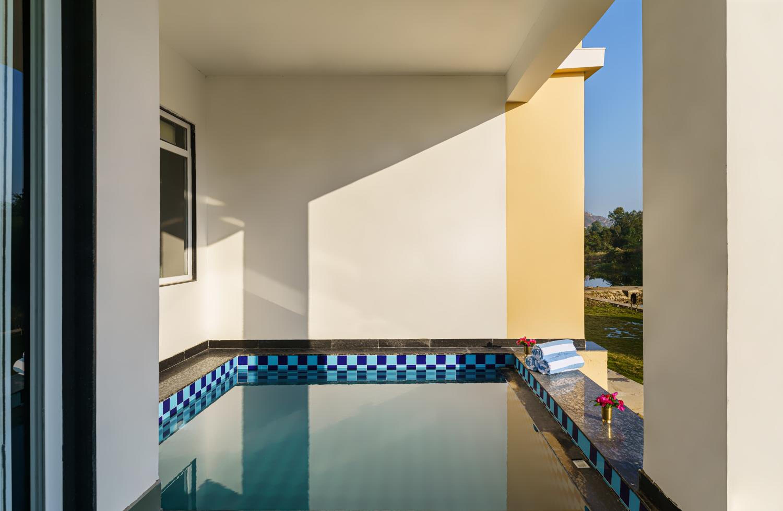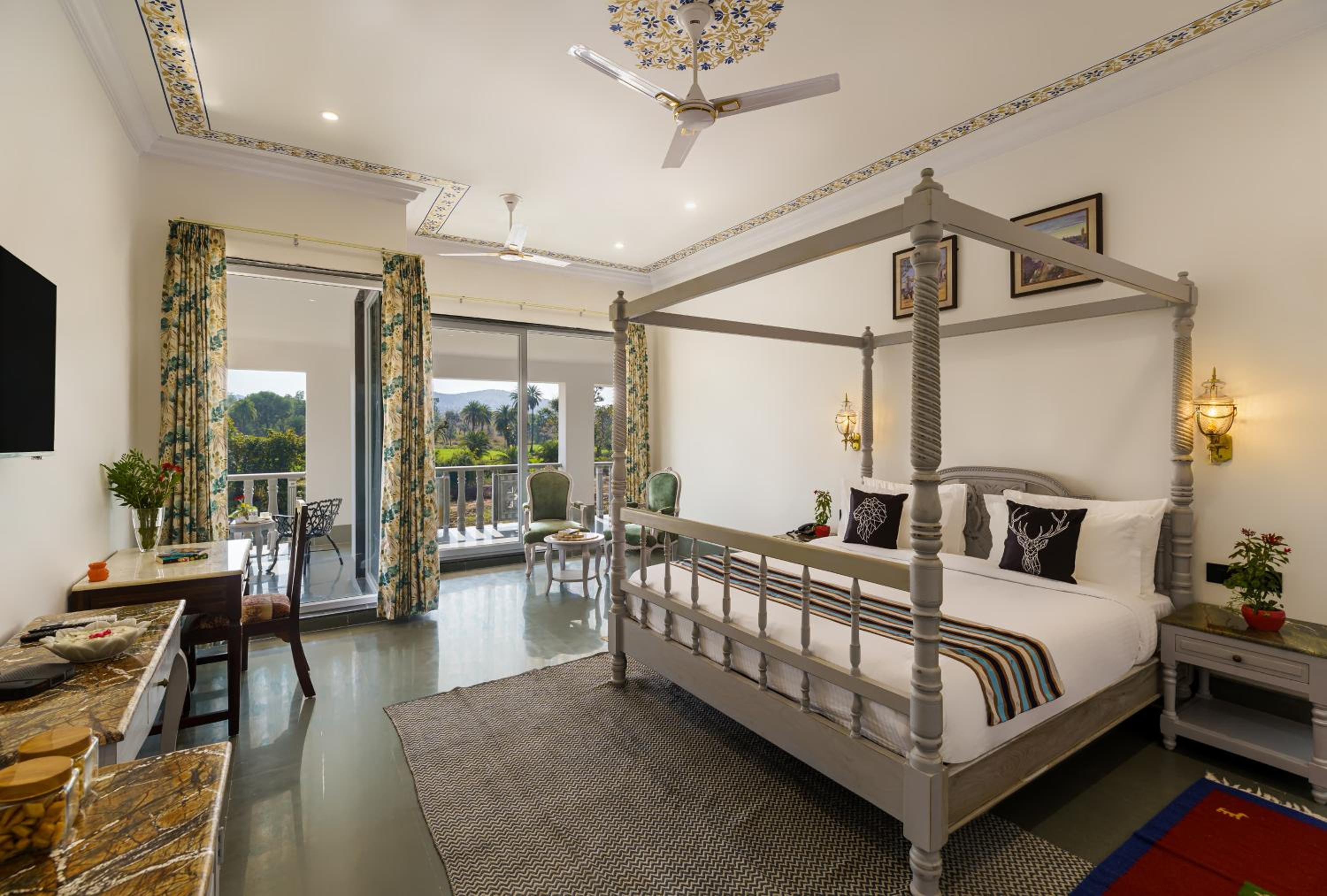 Certain units at Jhadol Bagh feature balconies overlooking the river, allowing guests to immerse themselves in the natural beauty of the surroundings.