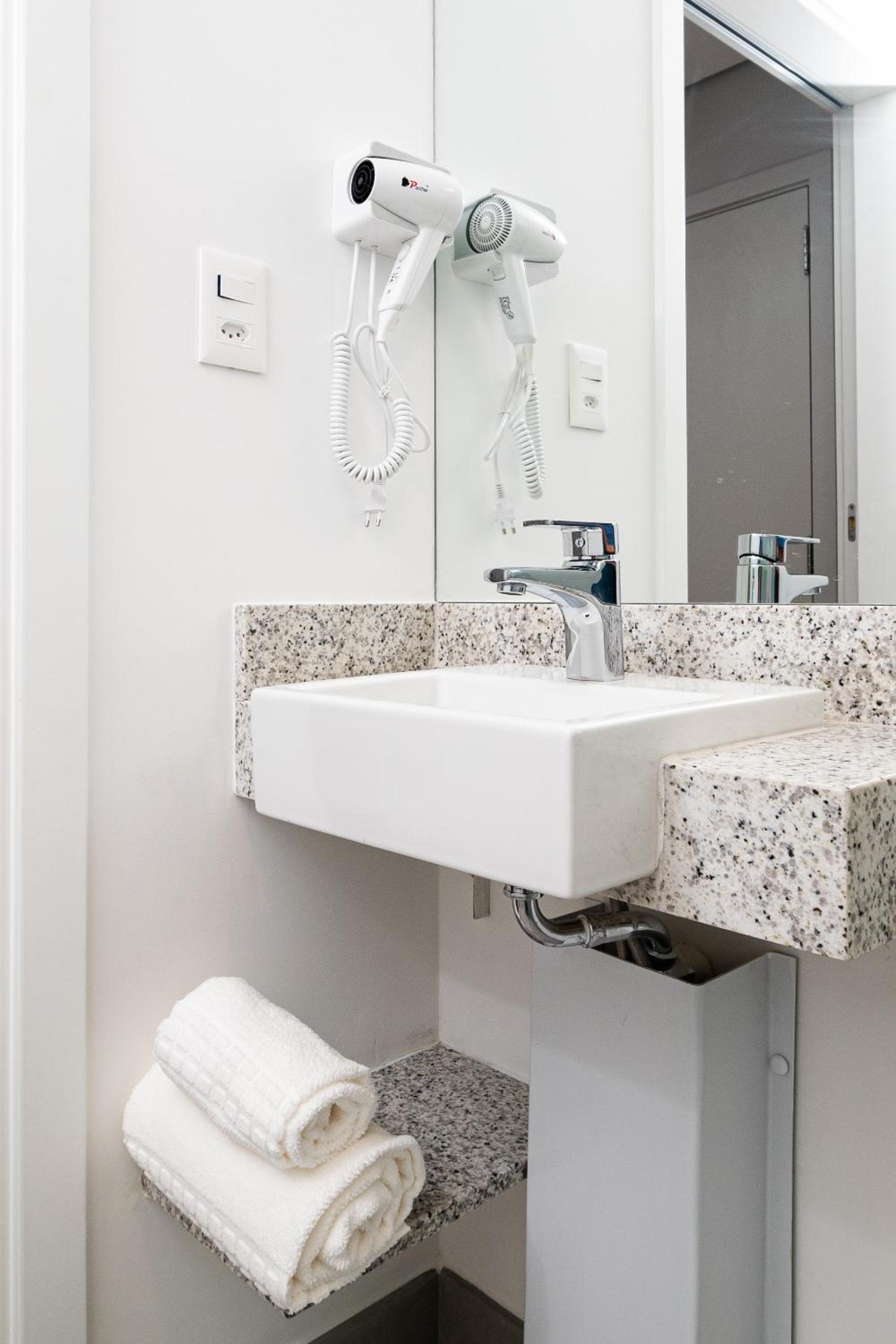 Foi ótimo ter uma área embaixo com mesas pra ficar depois do check-out para conseguir almoçar, fiz um concurso lá perto. Do lado tem uma pizzaria excelente, achei muito bem localizado.