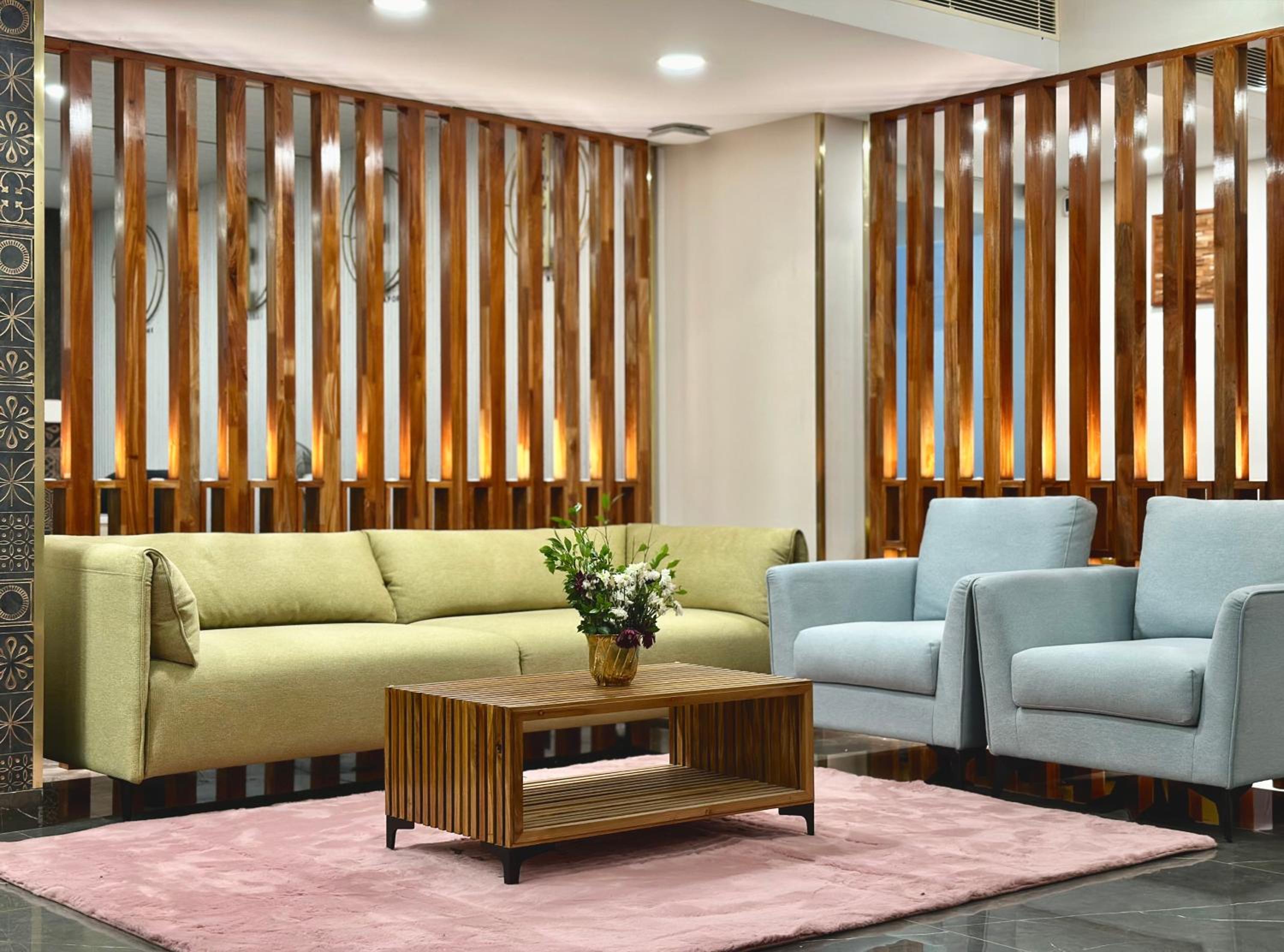 While 4 person occupied and had only 2 persons sofa set and dining table where other 2 had to sit on floor