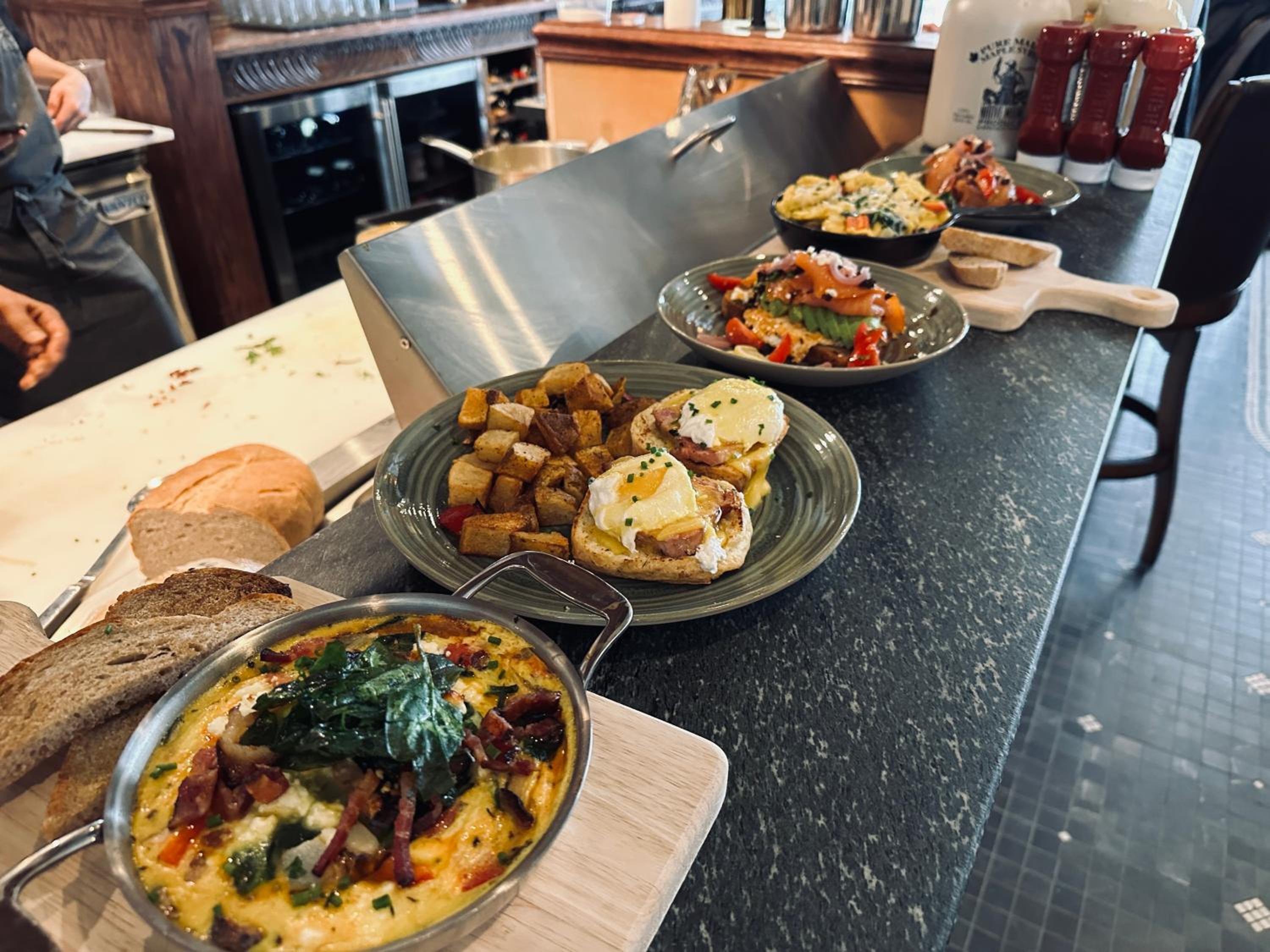 Breakfast was delicious. Nice to have the fireplace on a cold weekend.