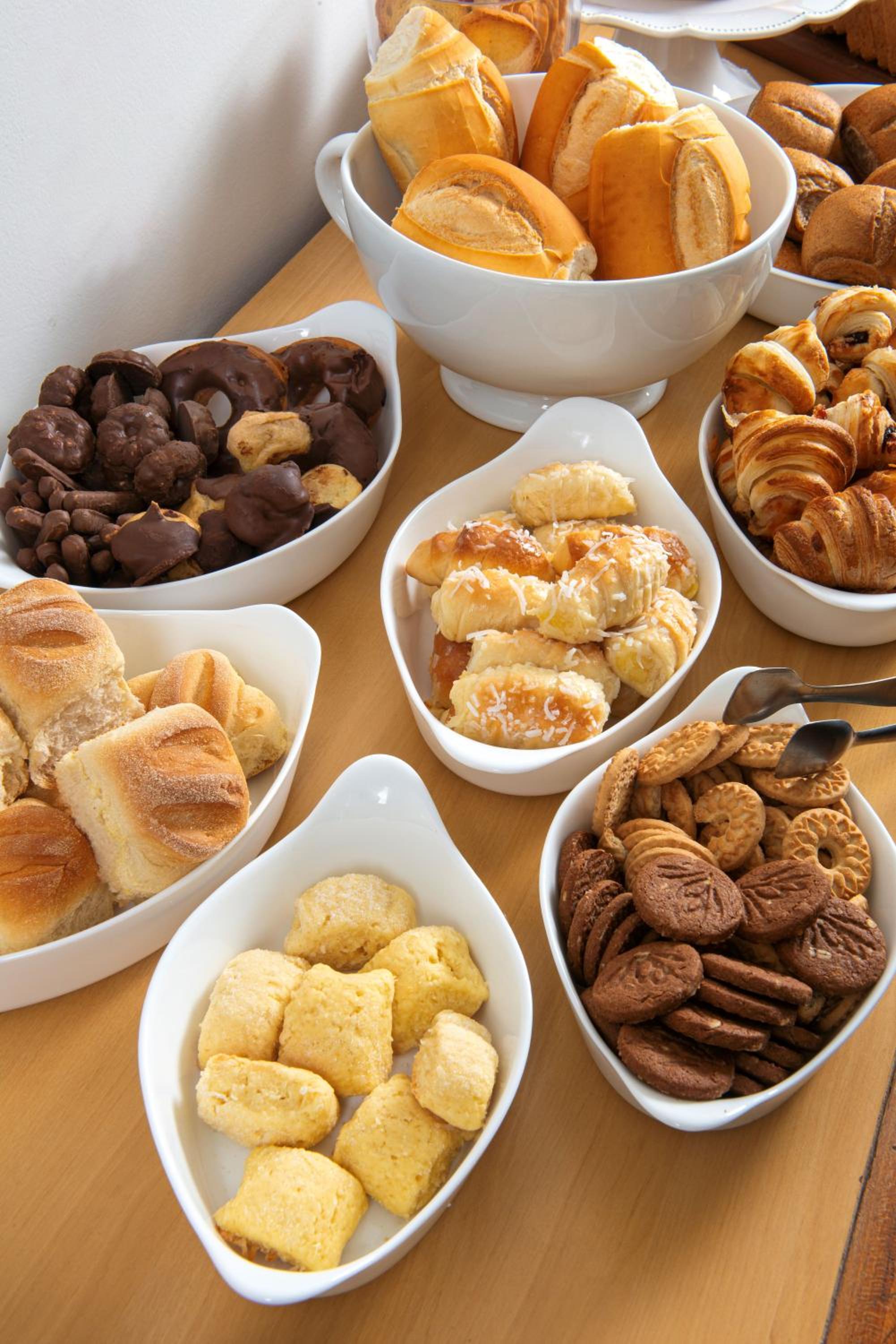 Café da manhã gostoso, diversificado e de qualidade.