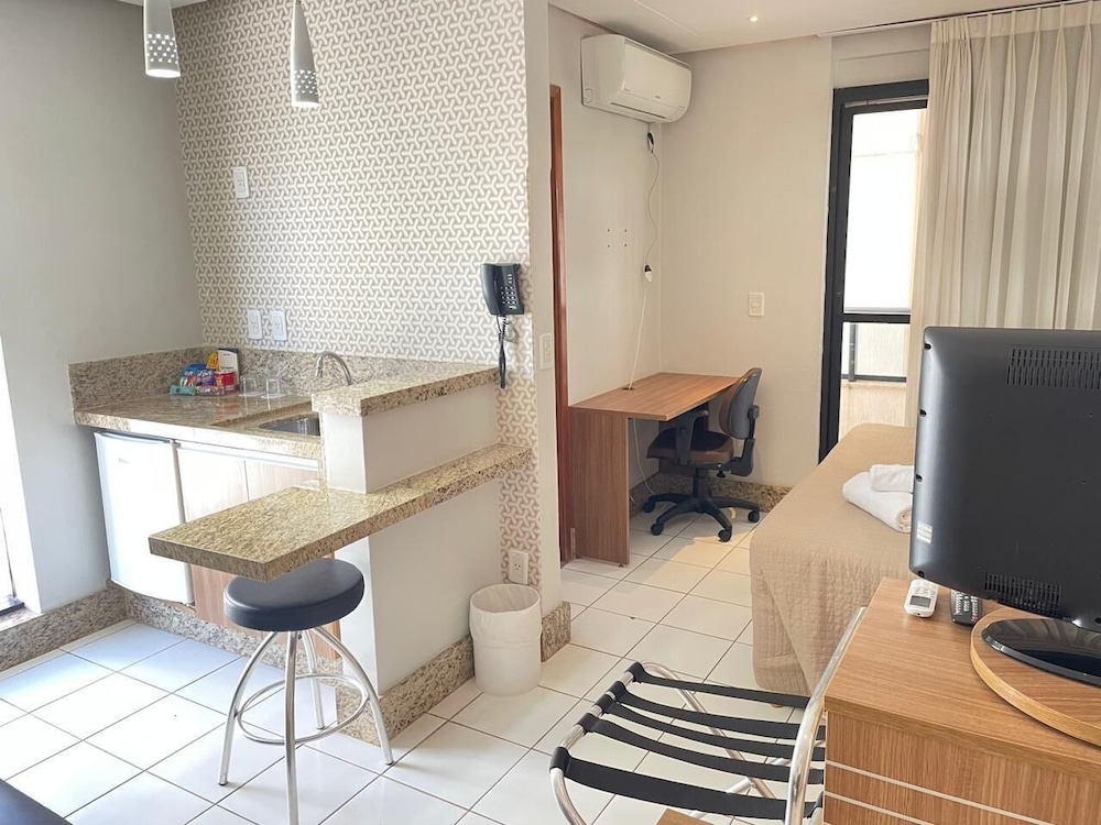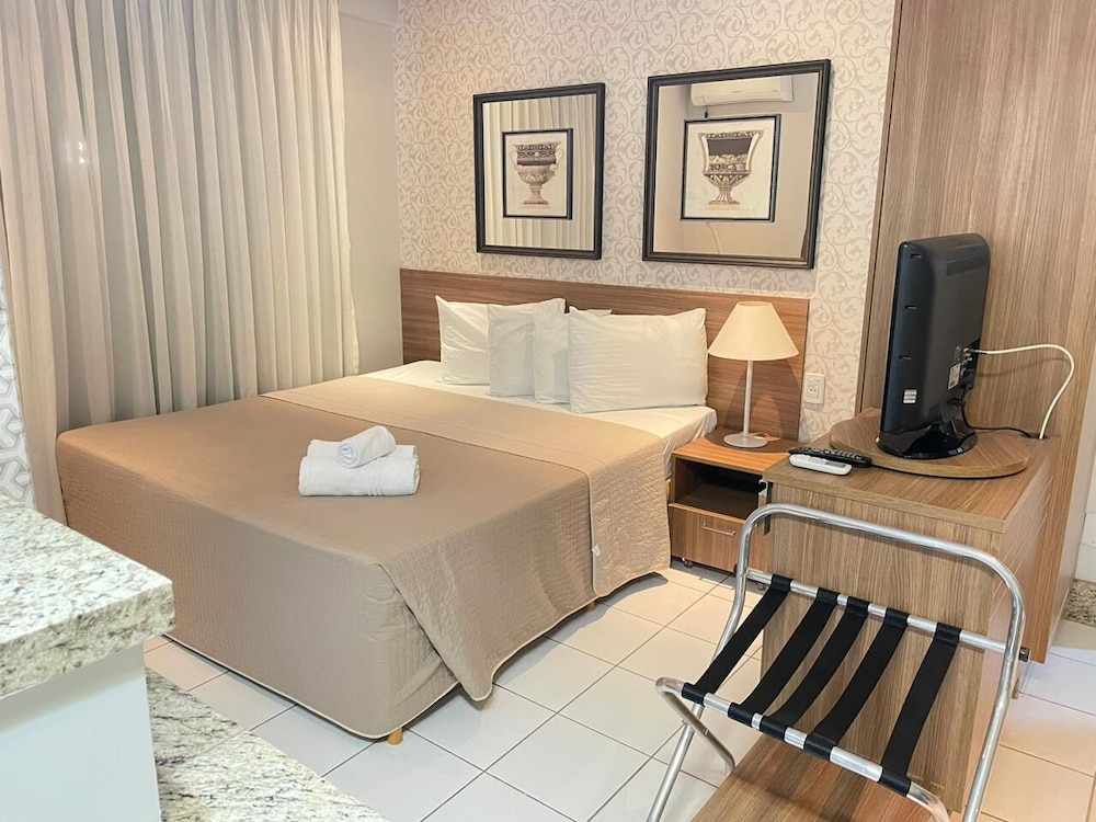 Necessita de reformas nas acomodações. Substituição de aparelhos de ar condicionado, colchões; sofás; e ralos de chuveiro; trancas de janelas. Acho que seria muito importante, fundamental e razoável poder efetuar reserva e hospedagem comnpagamento do café da manha à parte. Ja que se trata de Apart/Flat o hospede pode ter o direito de escolher o que lhe melhor convier, e assim escolher e ter precos melhores para a hospedagem. Eu não desejo mais hospedar com cafe da manhã incluso, visto que não achei agradavel o que é servido, não achei nada "fresco", e ainda servirem apresuntado, não oferecerem manteiga e ver que as 9 horas da manhã outros hospedes não conseguiram nem comer um pedaço de melancia porque não haviam mais frutas para reposição. Pão de queijo parecia velho e rechaud com cubas vazias.