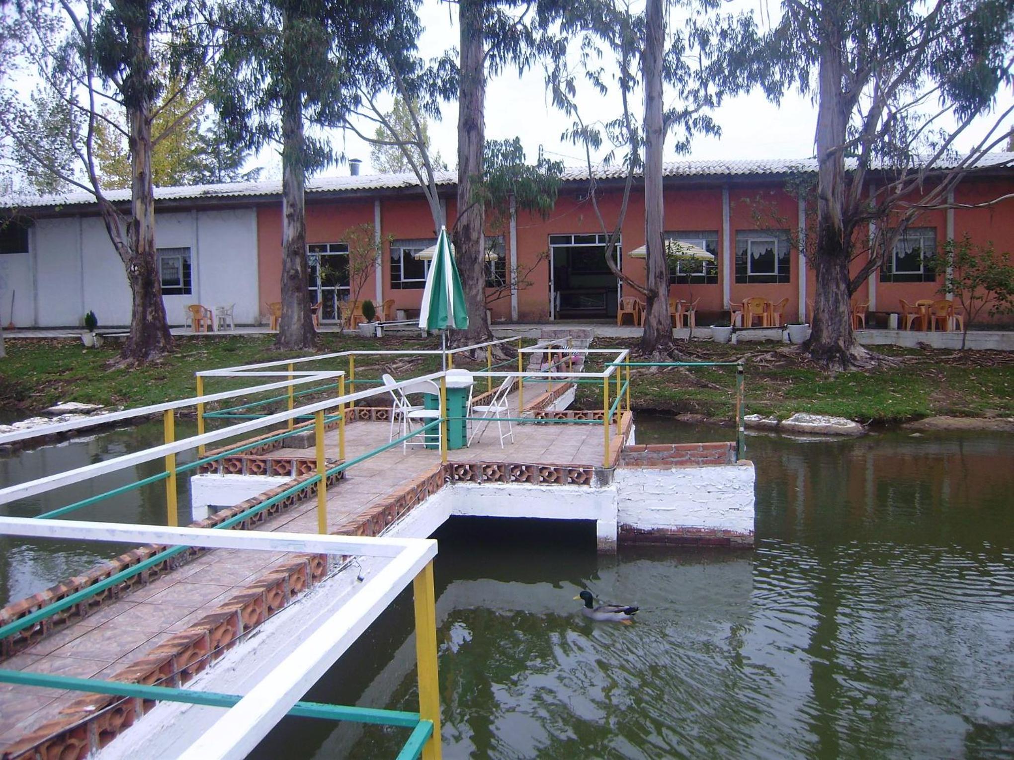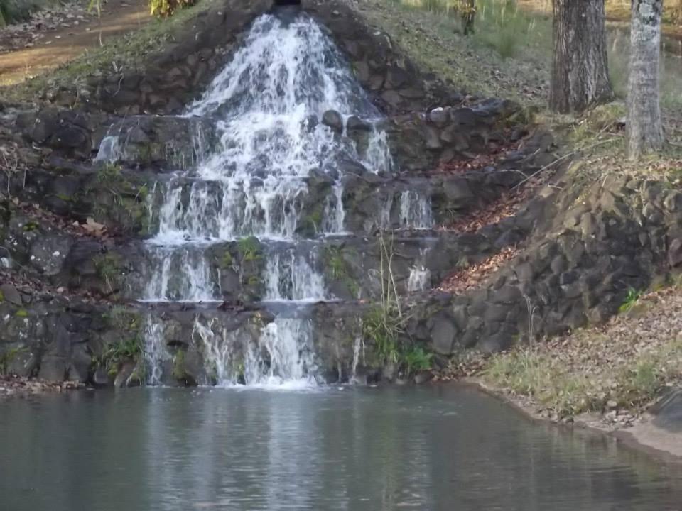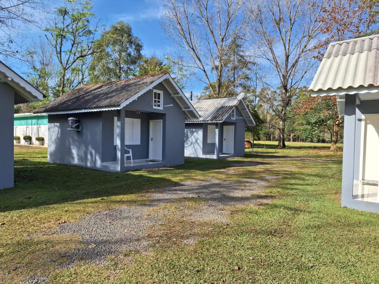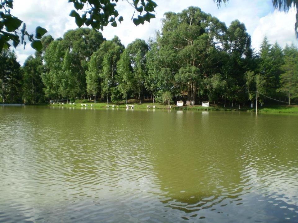 Parque com grande área útil, lagoas para pesca, cabanas confortáveis.