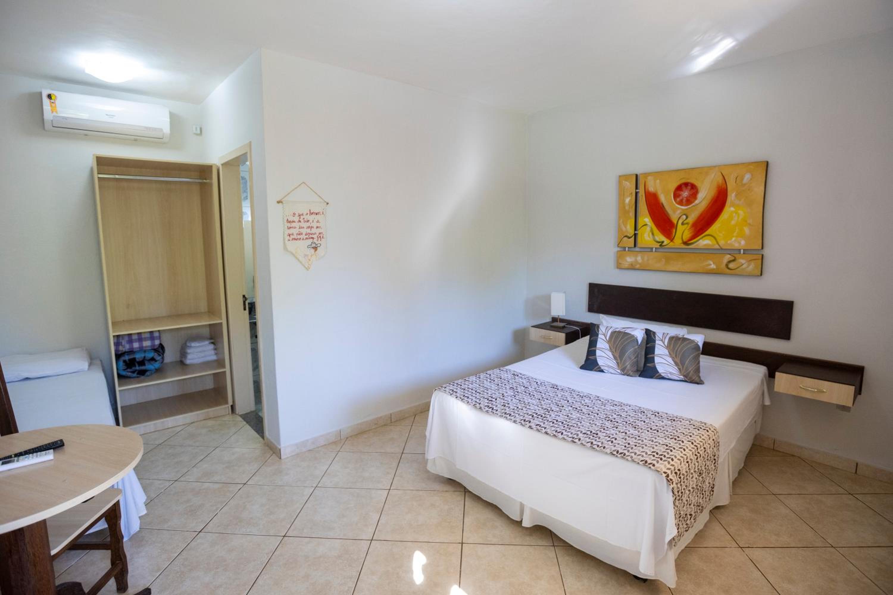 A cama casal poderia ser king size.