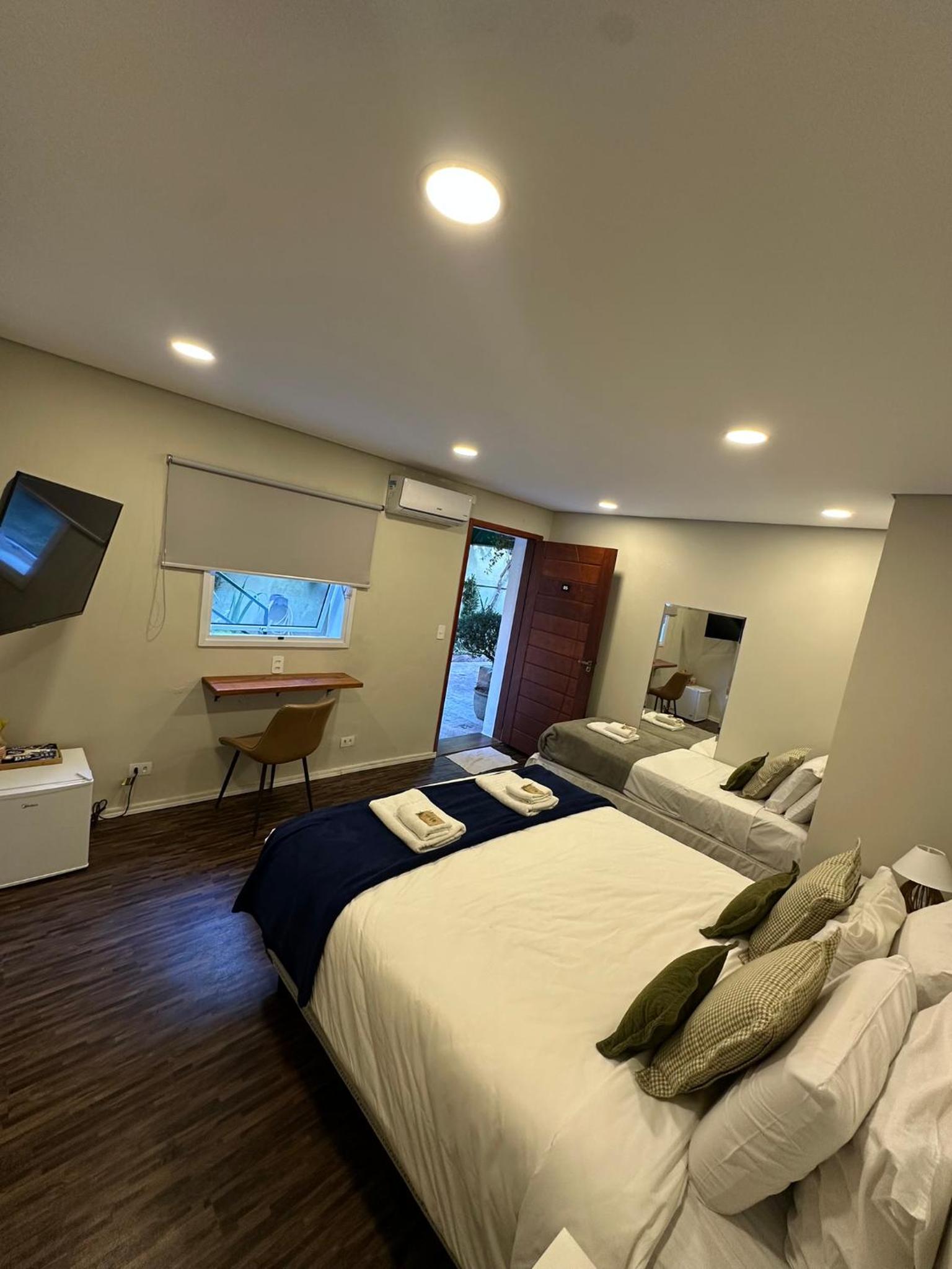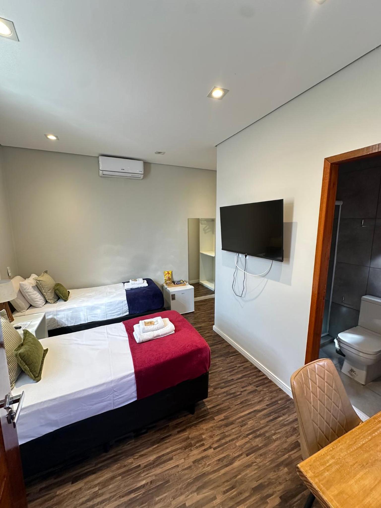 O quarto é simples, mas bem confortável. Atendeu minhas expectativas, só me incomodou que apareceram muitas formiguinhas no banheiro e no quarto também. Fora isso, nada a reclamar.