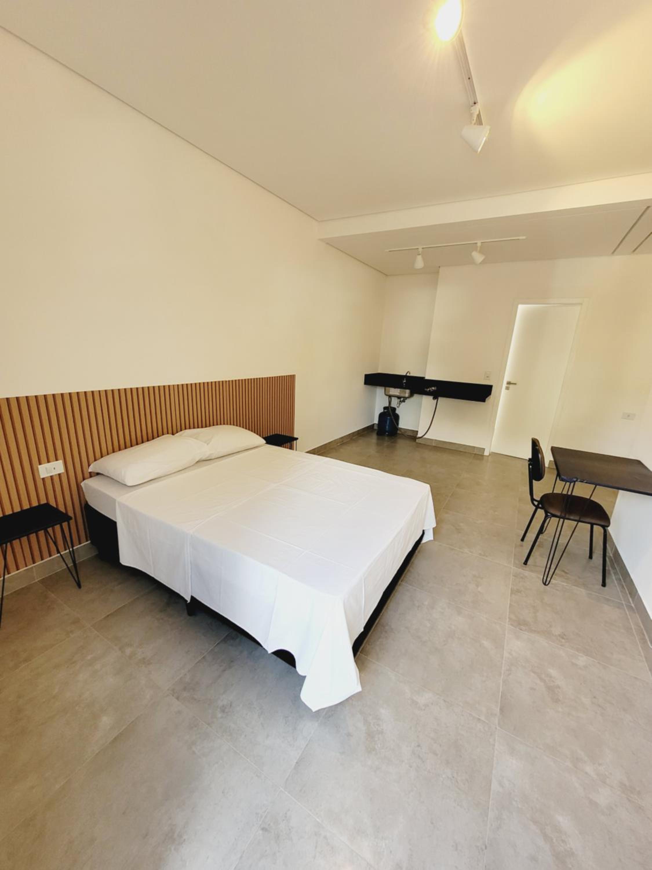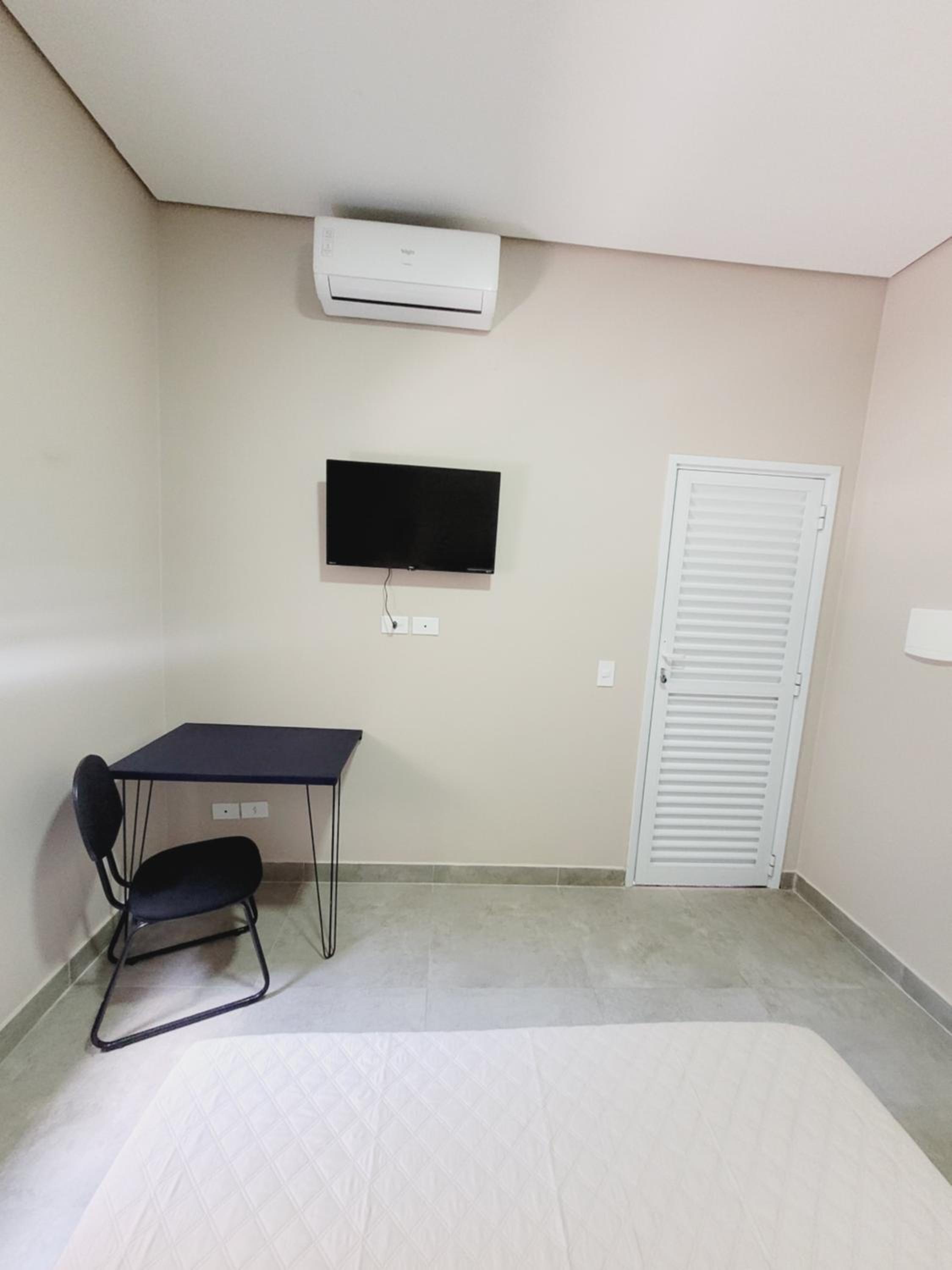 Tudo muito novo. Ótimos piso e distribuição do ambiente. Senti falta de frigobar/geladeira, mas pra uma diária não impactou tanto. O banheiro é incrível, ponto alto. Grande, e o chuveiro a gás faz toda a diferença. Voltarei!