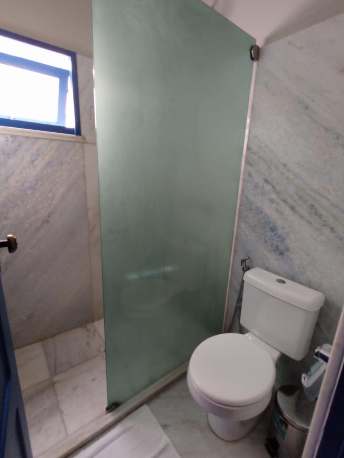 Chuveiro sem água quente, quarto sem blackout, a porta sem estrutura, entrava m toda luz que vem lá de fora.