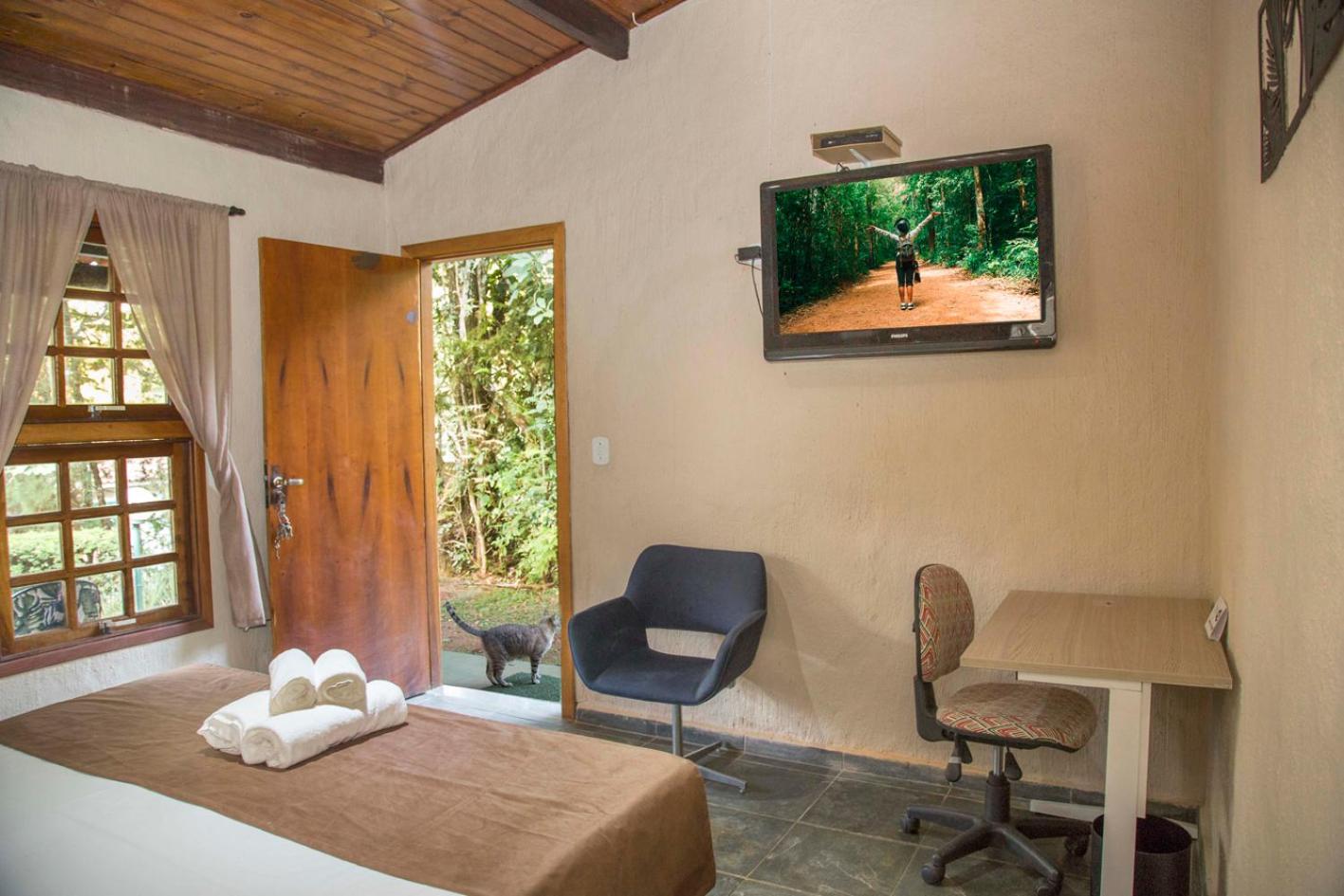 Tudooooooo tudooooo excelente , tudo muito bem organizado café da manhã muito bom condiz com os valores , a tarde tivemos um mimo um café da tarde , chegamos la as 15 horas a Rita disposta em fazer um peixinho frito salada para nós farofa linda e o Bruno gente o Bruno eu não tenho adjetivos para este moço nota 1.000 mil que ser iluminado sempre disposto , solicito a TV eu nâo sabia por os canais ele foi la me ajudou , ao chegarmos perguntou se eu precisava de ajuda para carregar as coisas , e minha PET AMOUUUUJ, OS PET ,s são tratados com tanto carinho tanto RESPEITO .A POUSADA É LINDA AS ROUPAS DE CAMA , BANHO IMPECÁVEIS .A estrada de terra um poquinho p chegar até lâ mas é normal pq a pousada está em meio a natureza podem ir que vale apena .AS PISCINAS , OS BANHEIROS SALÃO DE JOGOS TUDO .JANTAR A NOITE TUDOOOO ÓTIMO.