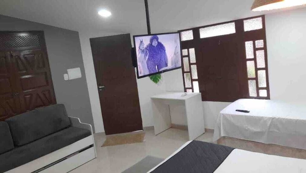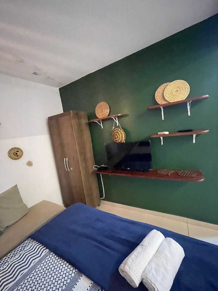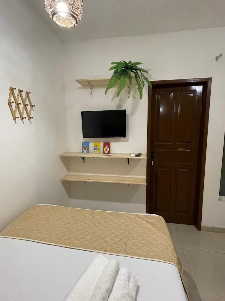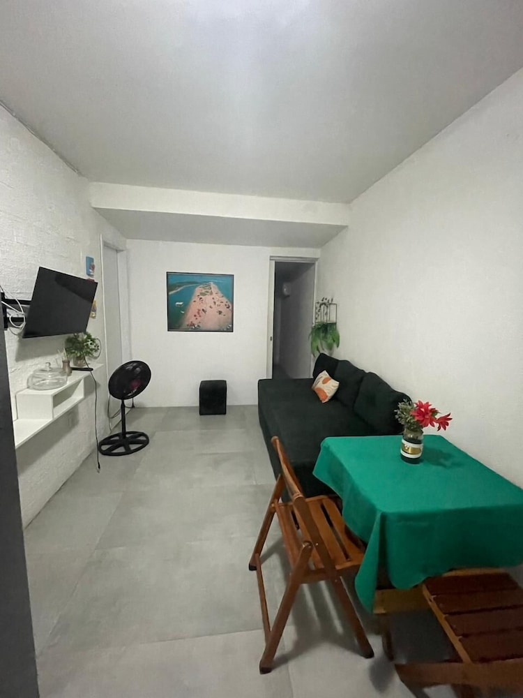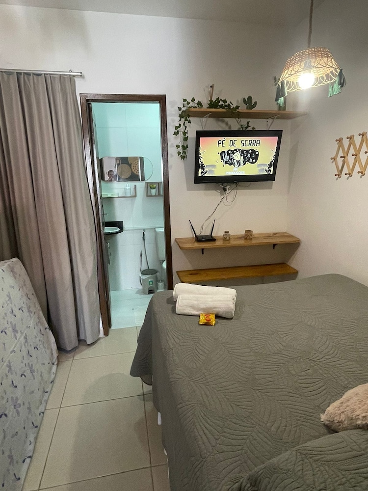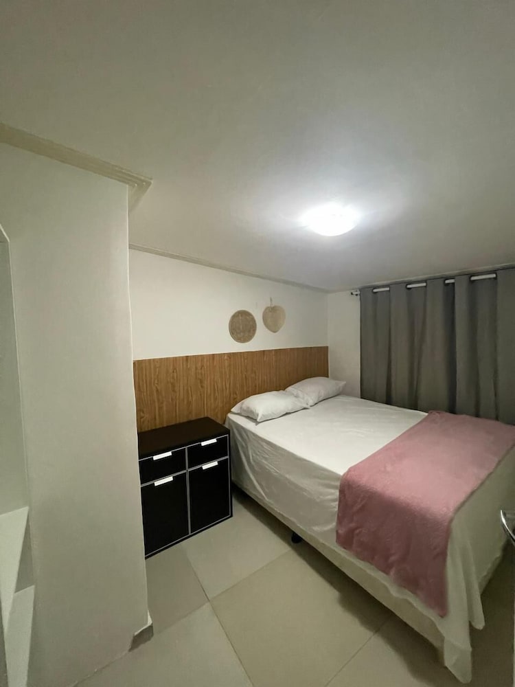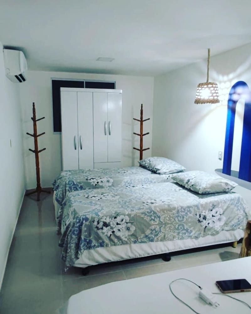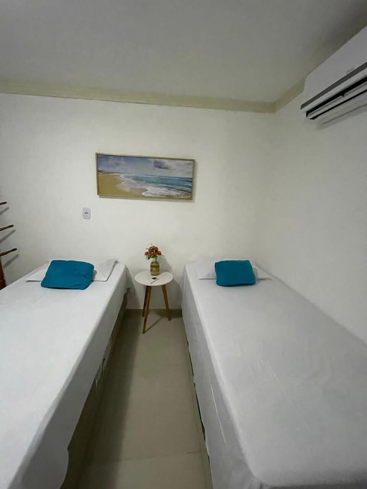 O quarto é grande e tem ainda banheiro, sala e cozinha. Têm dois ares condicionados (um pro quarto e outro pra sala), camas confortáveis e limpas, tudo limpinho. Pela mensagem, eles pedem para você levar toalhas e lençóis e papel higiênico (achei meio deselegante, mas é por precaução caso não gostem dos que eles têm que são bem simples). Tem que prestar atenção ao valor, porque no final, acrescenta ainda a faxina, mesmo assim vale à pena pela localização que é bem por trás dos bares da orla de Atalaia. A acomodação é bem boa.