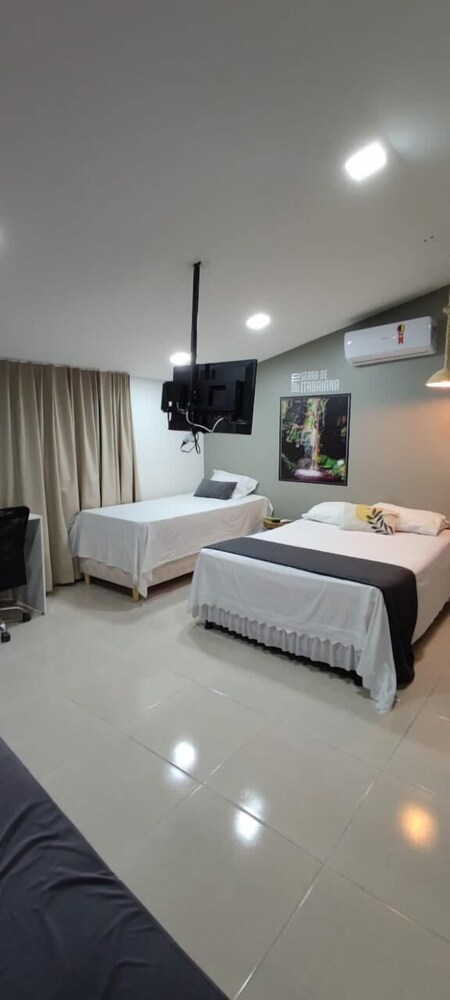 Camas, tv e chuveiro