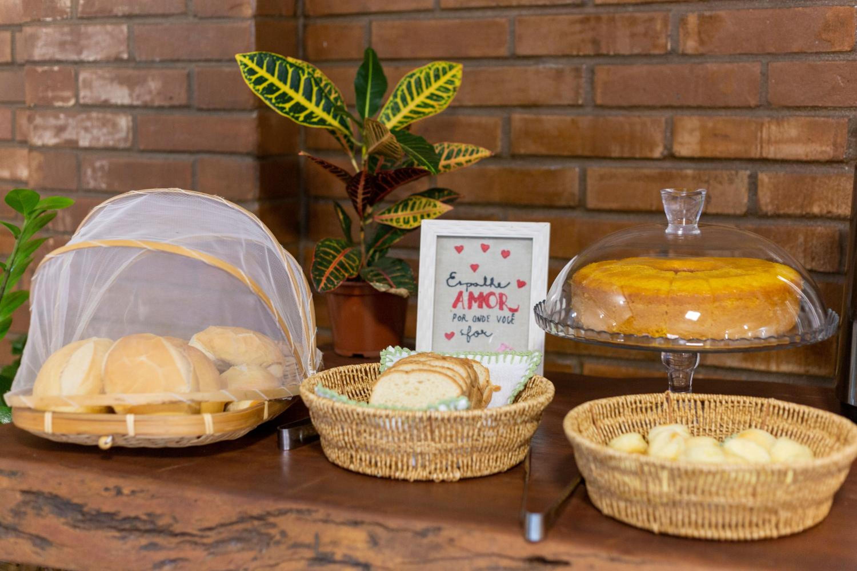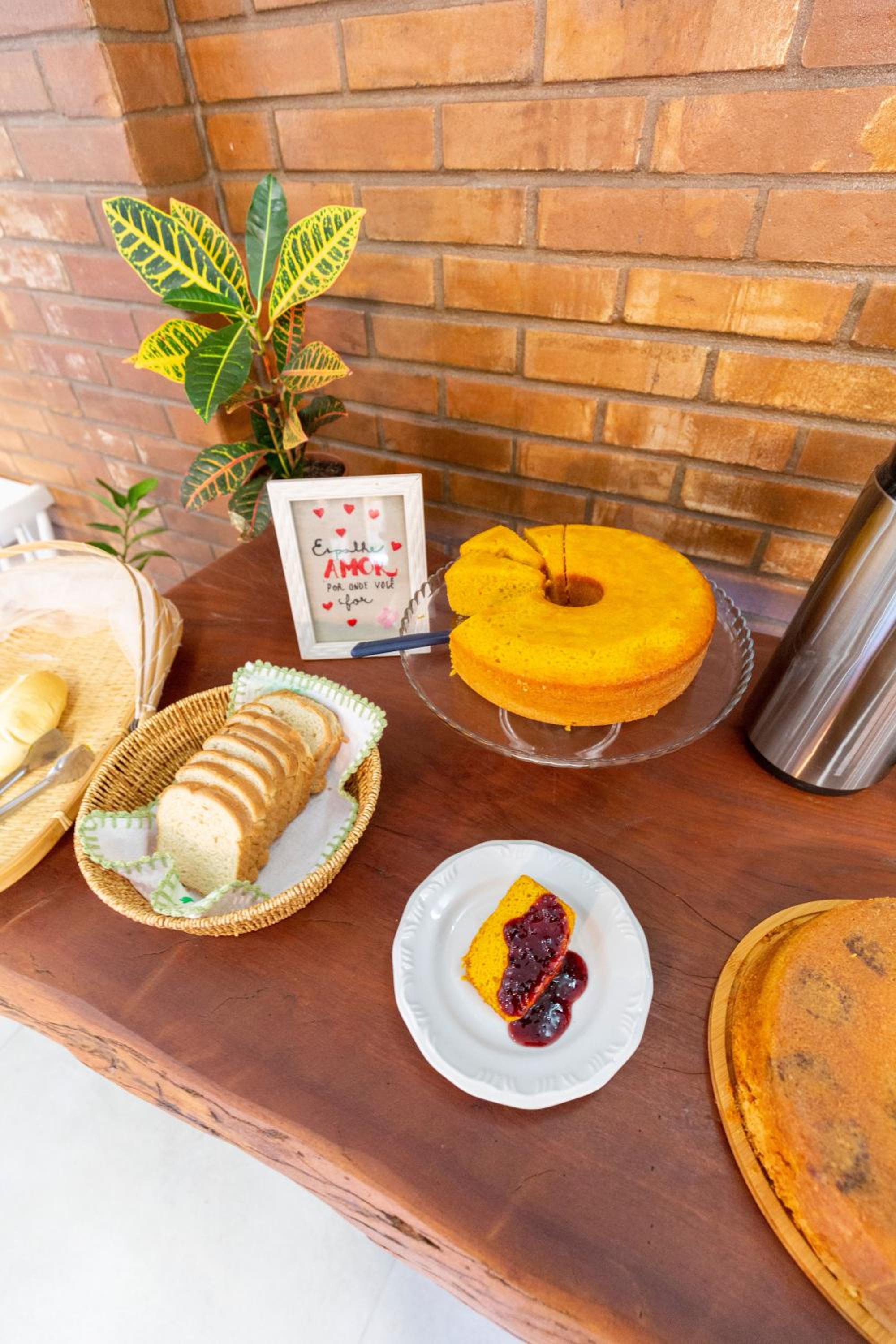 Café da manhã muito bom, com bolos feitos pela Rose, nossa gentil anfitriã.