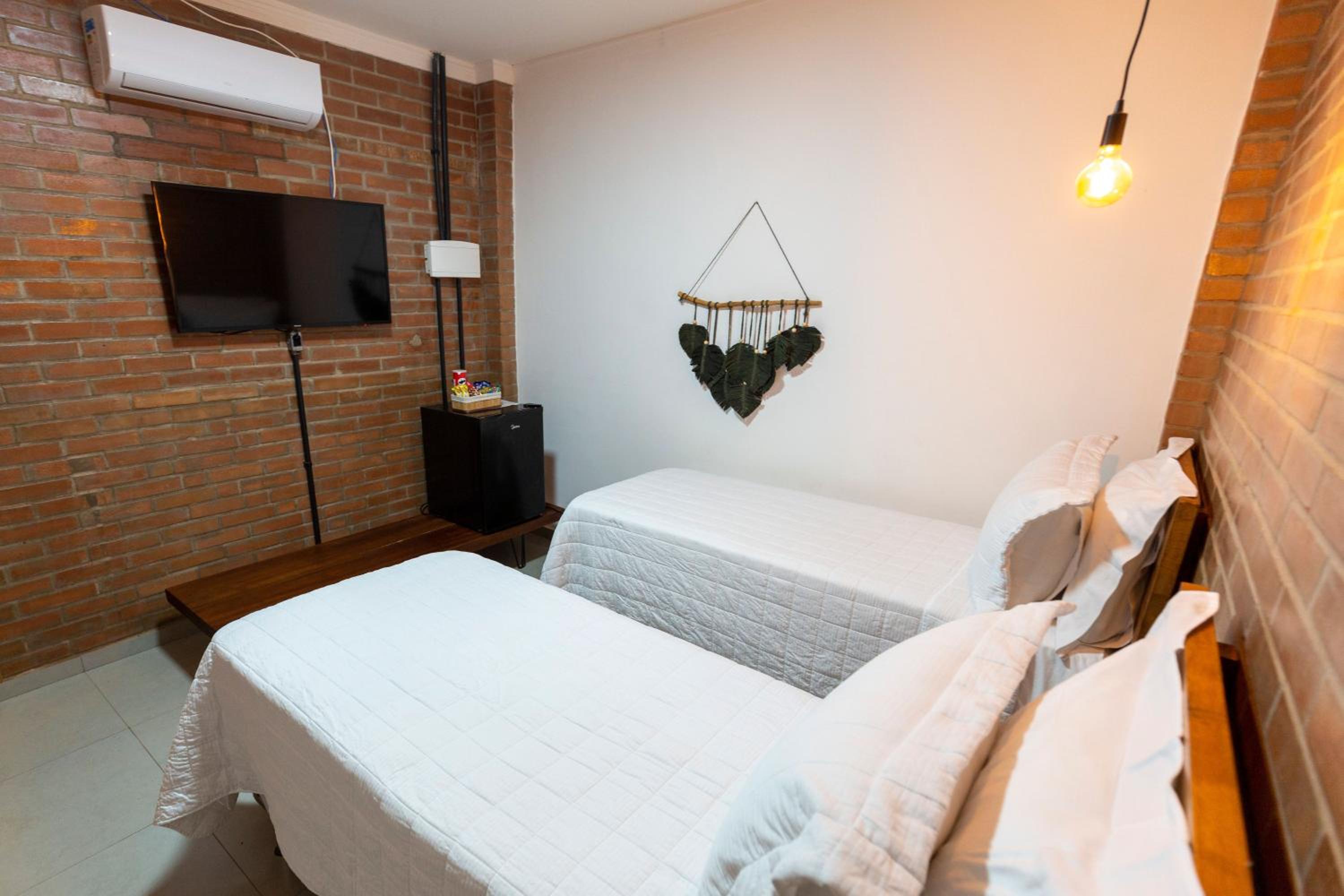 Relax in style in the well-appointed rooms at Pousada Bem Viver, each featuring a private patio overlooking the beautiful garden. Enjoy modern amenities including a flat-screen TV and a balcony offering stunning city views.