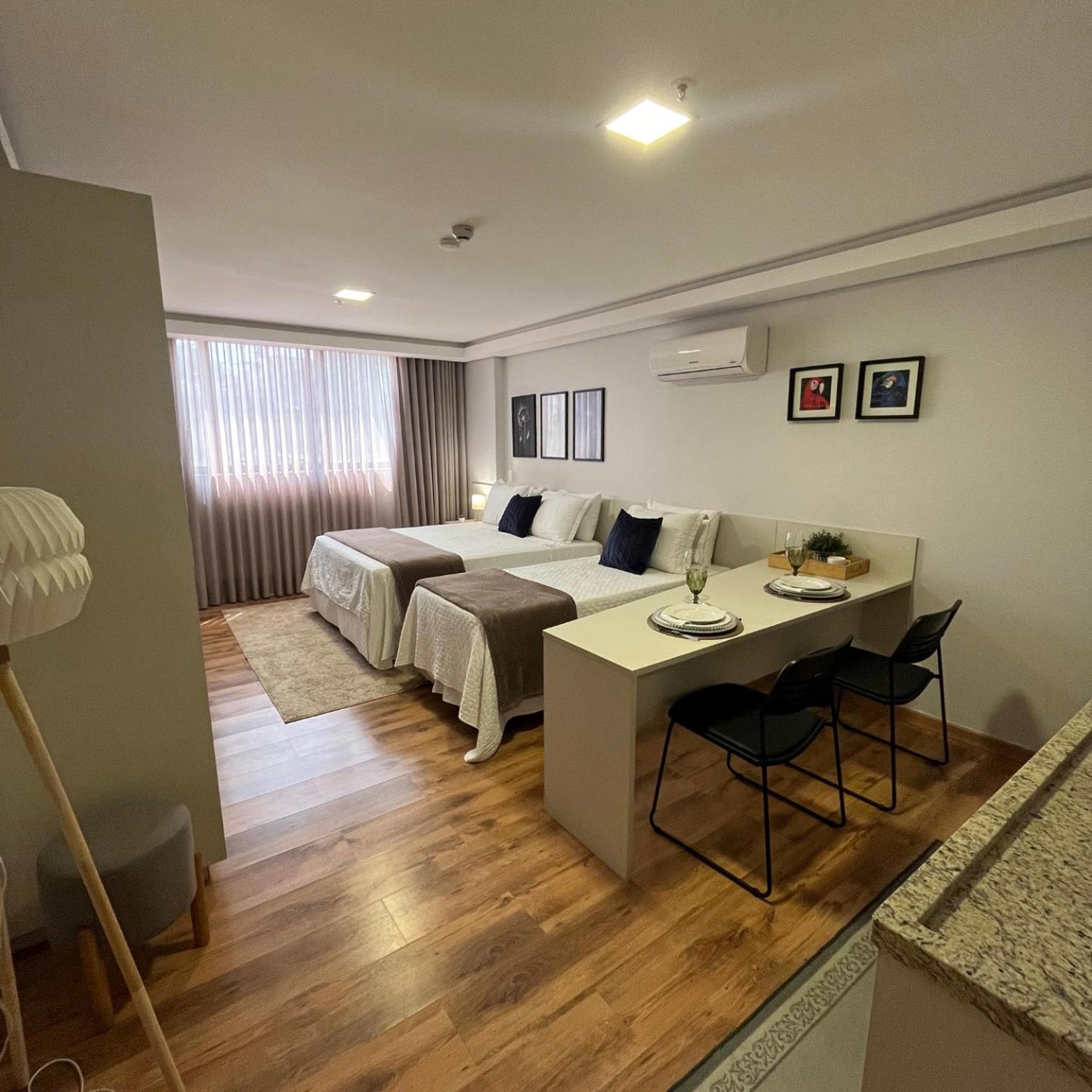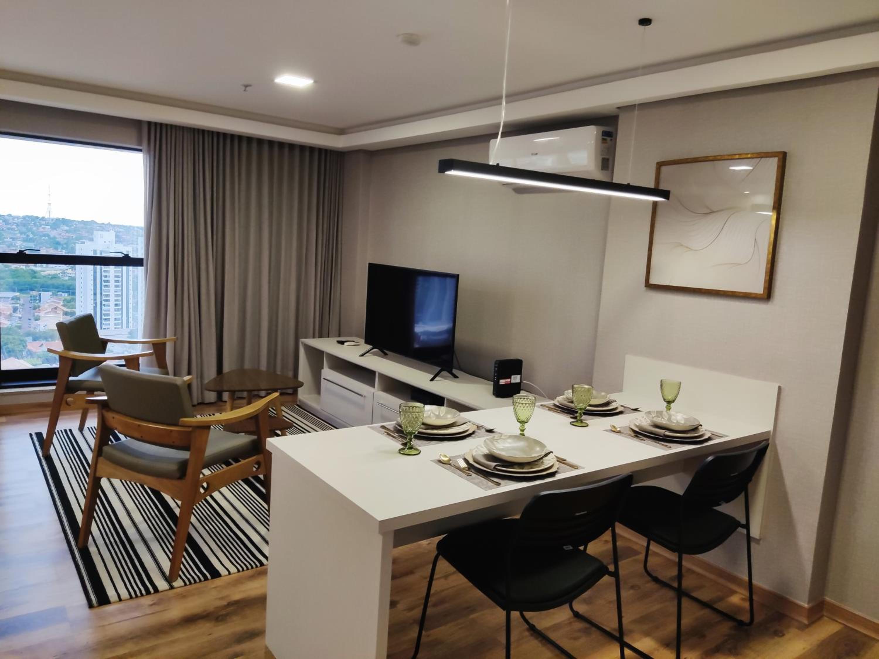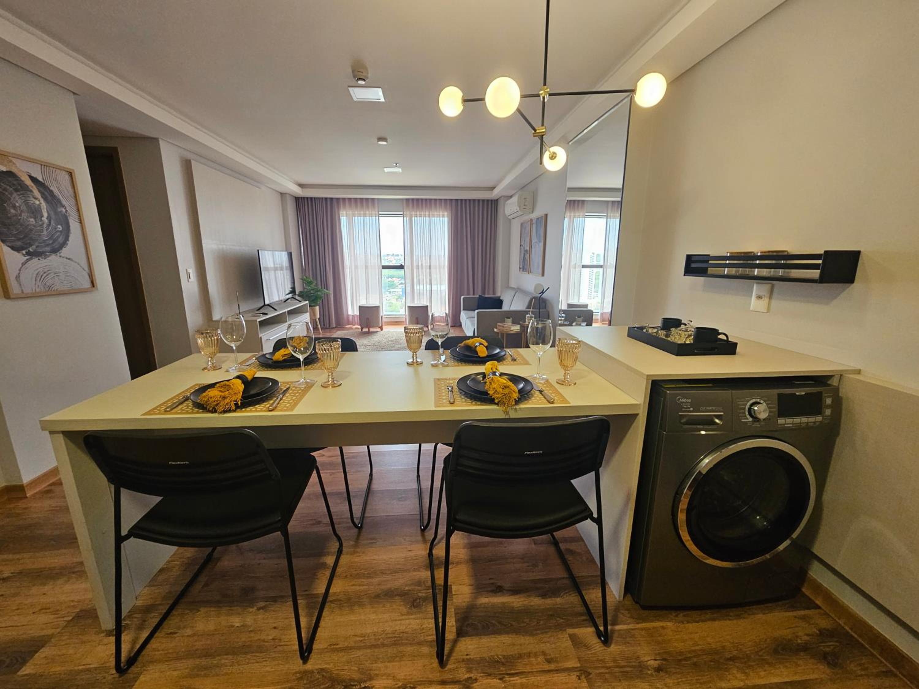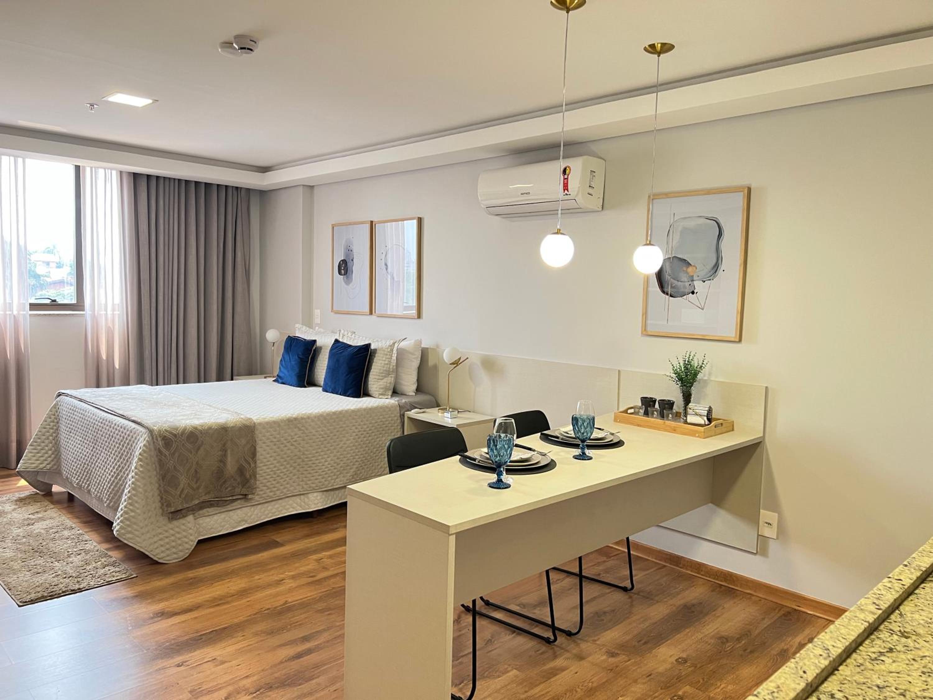 O apartamento família é muito espaçoso, com sala e cozinha conjugadas, e duas suítes. Tem máquina de lavar e secar roupas, ferro de passar e a cozinha é bem equipada. As camas são bem confortáveis. O ambiente é moderno, bem limpo, com serviço de camareira diariamente. Tudo excelente. O café da manhã é fantástico, bem variado e é possível pedir, além do buffet, misto quente, panquecas, tapioca, etc. O hotel também tem almoço e jantar. Os atendentes são muito prestativos e atenciosos. Excelente hotel, parabéns! Voltando a Campo Grande, nos hospedaremos lá novamente.