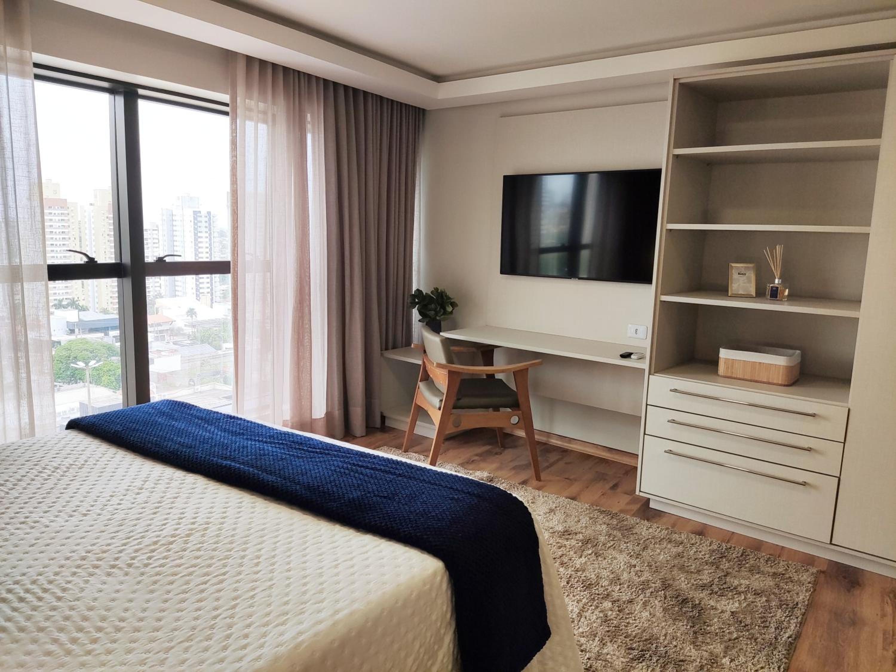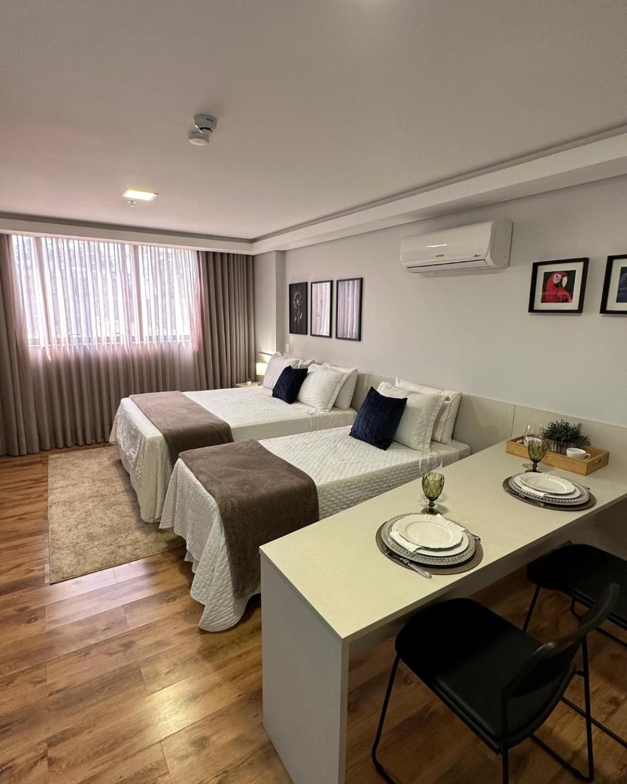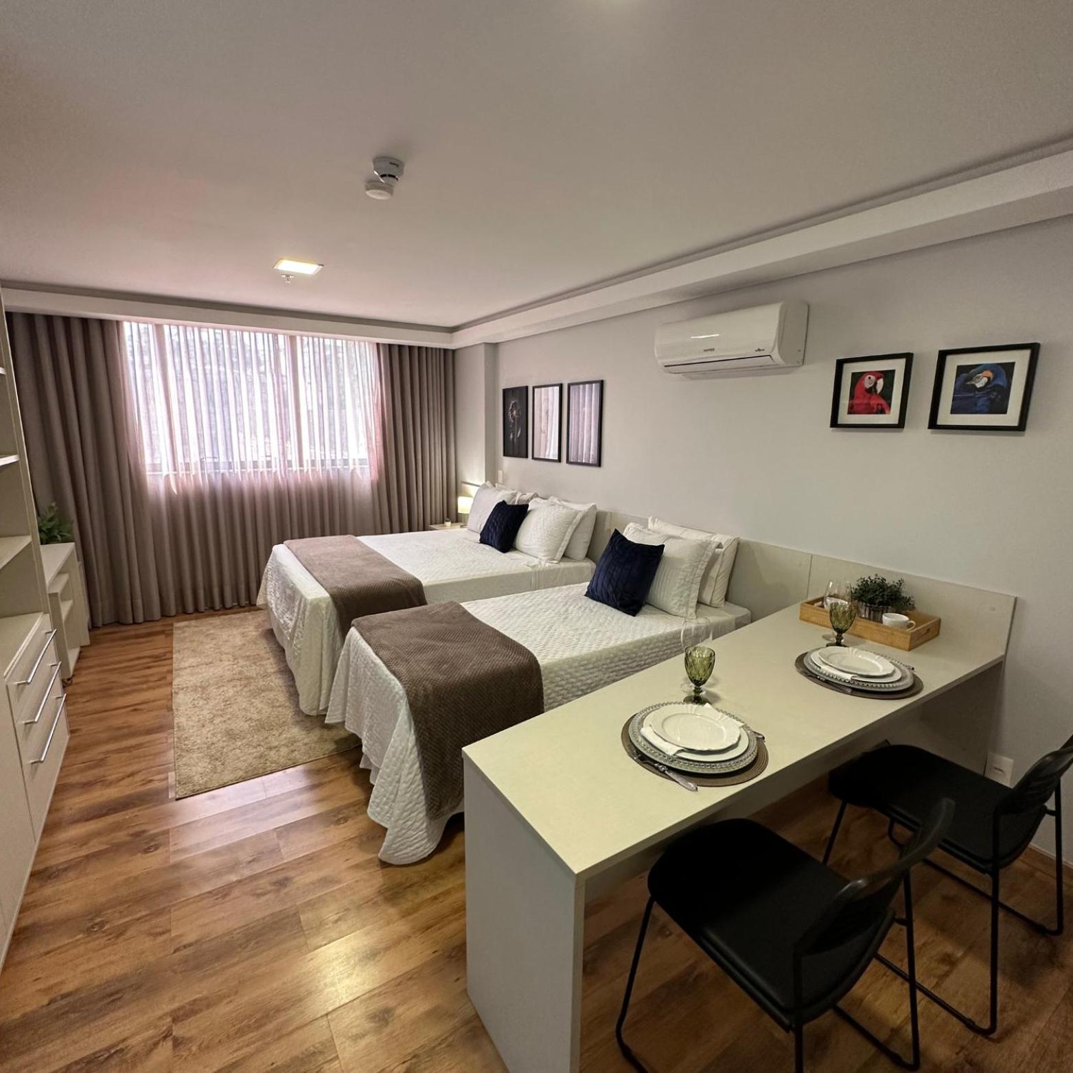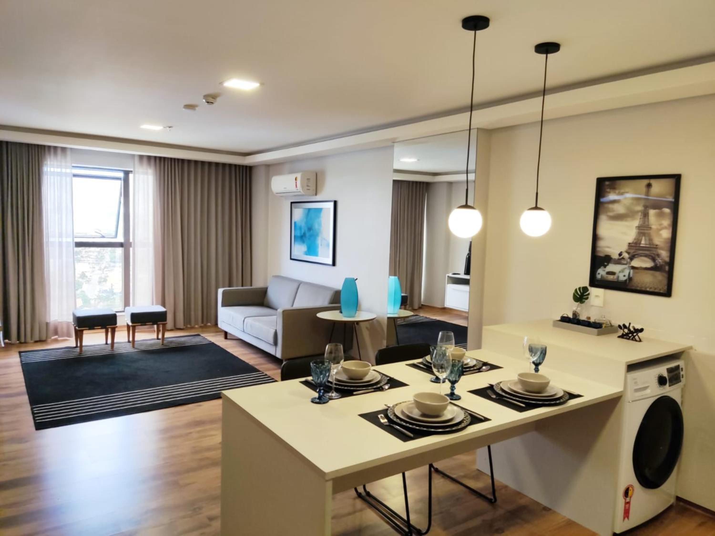 O apartamento família é muito espaçoso, com sala e cozinha conjugadas, e duas suítes. Tem máquina de lavar e secar roupas, ferro de passar e a cozinha é bem equipada. As camas são bem confortáveis. O ambiente é moderno, bem limpo, com serviço de camareira diariamente. Tudo excelente. O café da manhã é fantástico, bem variado e é possível pedir, além do buffet, misto quente, panquecas, tapioca, etc. O hotel também tem almoço e jantar. Os atendentes são muito prestativos e atenciosos. Excelente hotel, parabéns! Voltando a Campo Grande, nos hospedaremos lá novamente.