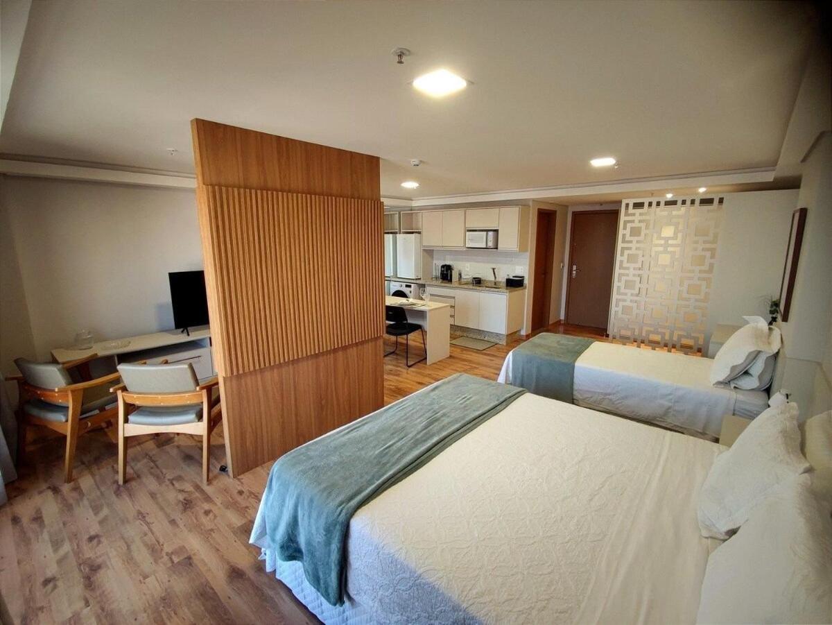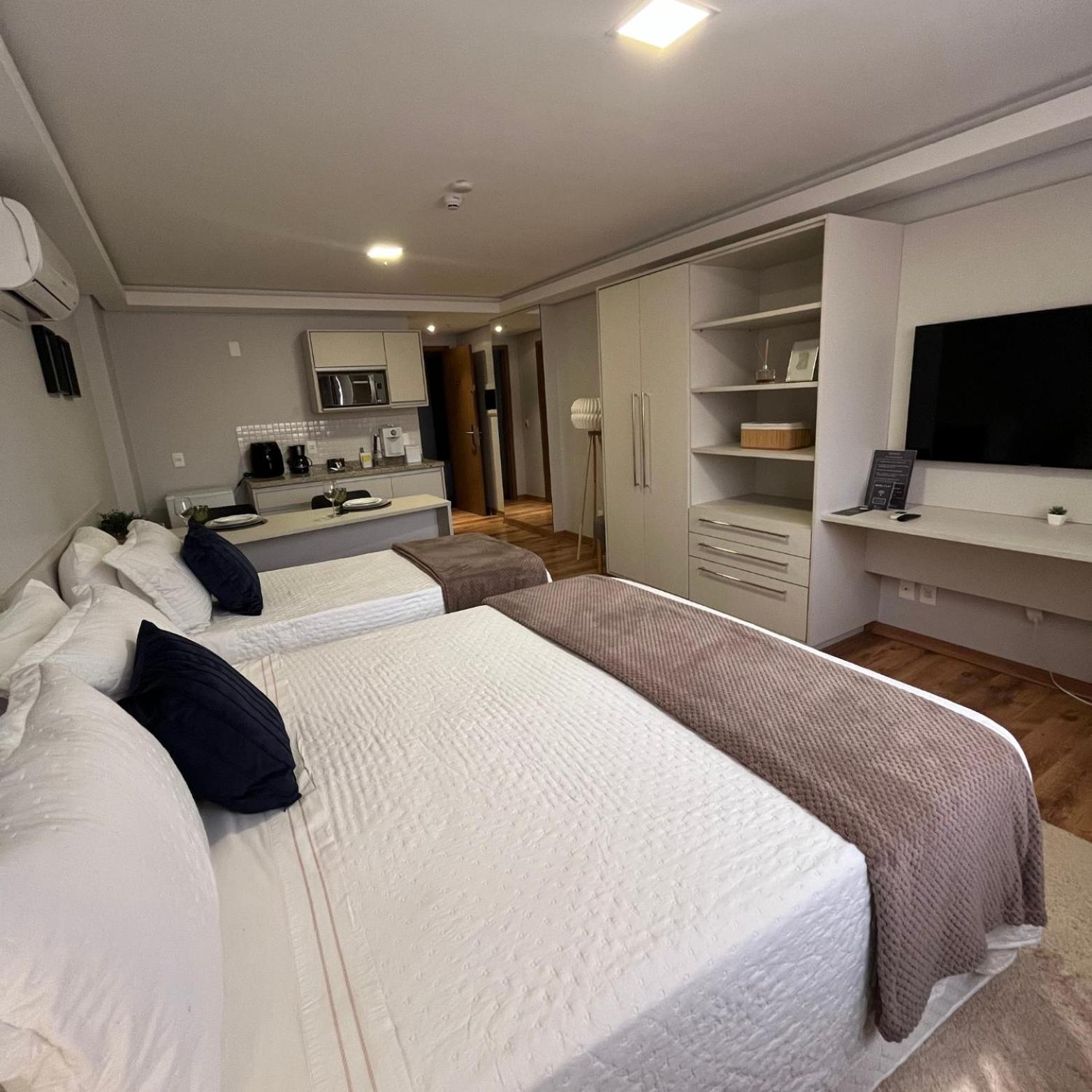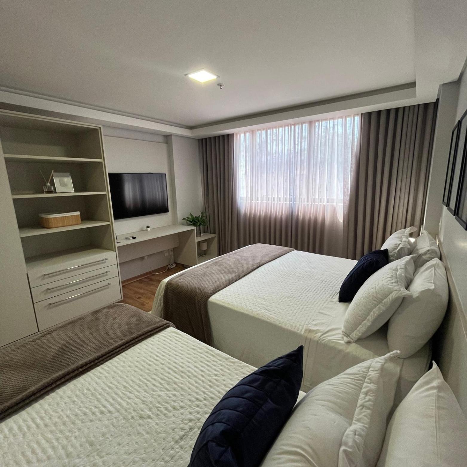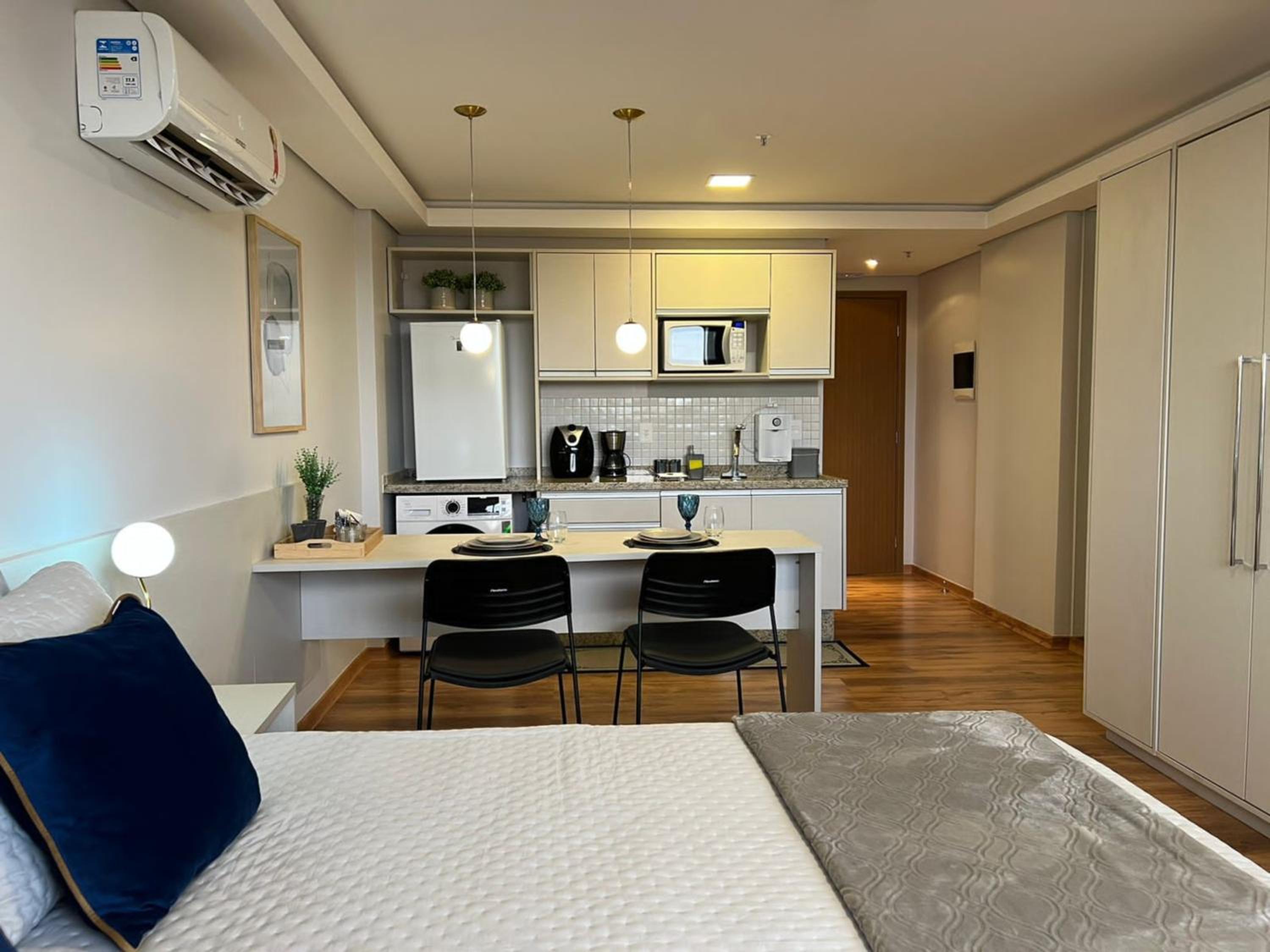O apartamento família é muito espaçoso, com sala e cozinha conjugadas, e duas suítes. Tem máquina de lavar e secar roupas, ferro de passar e a cozinha é bem equipada. As camas são bem confortáveis. O ambiente é moderno, bem limpo, com serviço de camareira diariamente. Tudo excelente. O café da manhã é fantástico, bem variado e é possível pedir, além do buffet, misto quente, panquecas, tapioca, etc. O hotel também tem almoço e jantar. Os atendentes são muito prestativos e atenciosos. Excelente hotel, parabéns! Voltando a Campo Grande, nos hospedaremos lá novamente.
