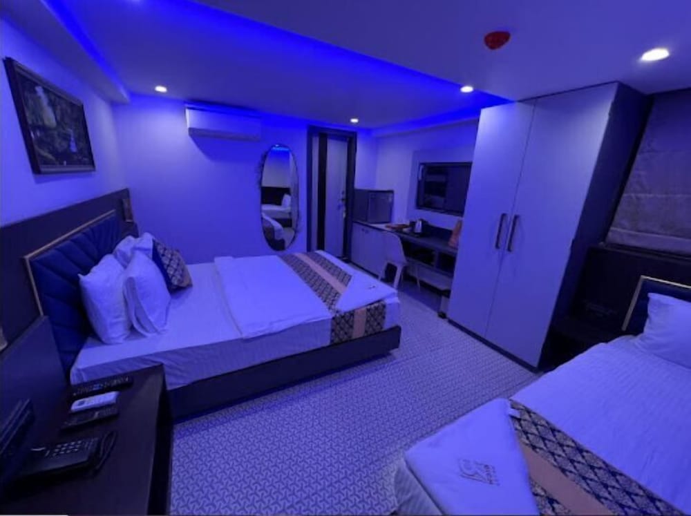 Bathrooms feature showers with rainfall showerheads. Conveniences include ceiling fans, and housekeeping is provided daily. Distance to nearby landmarks such as Laxmi Industrial Estate and Kokilaben Dhirubhai Ambani Hospital make it an ideal choice.