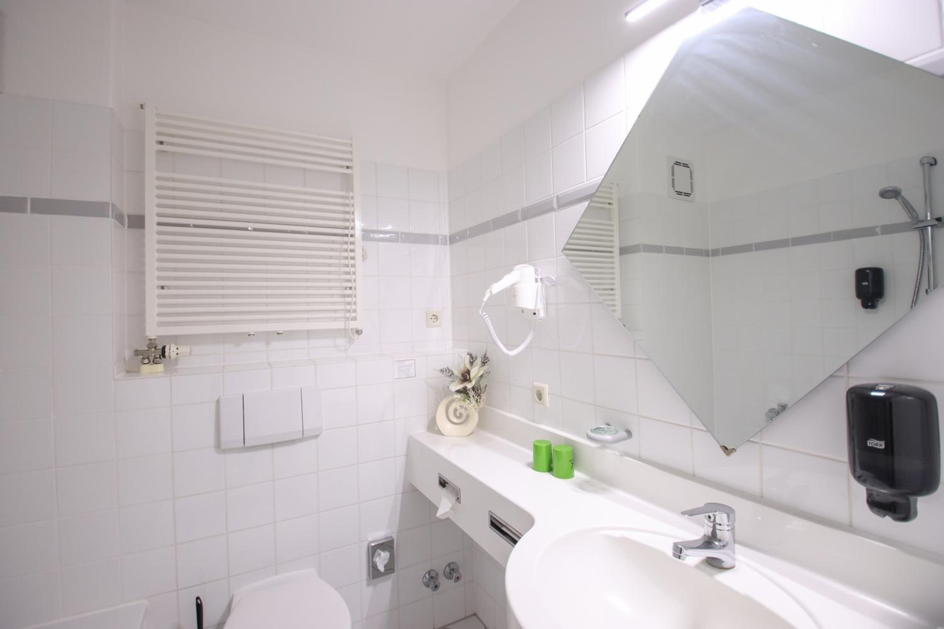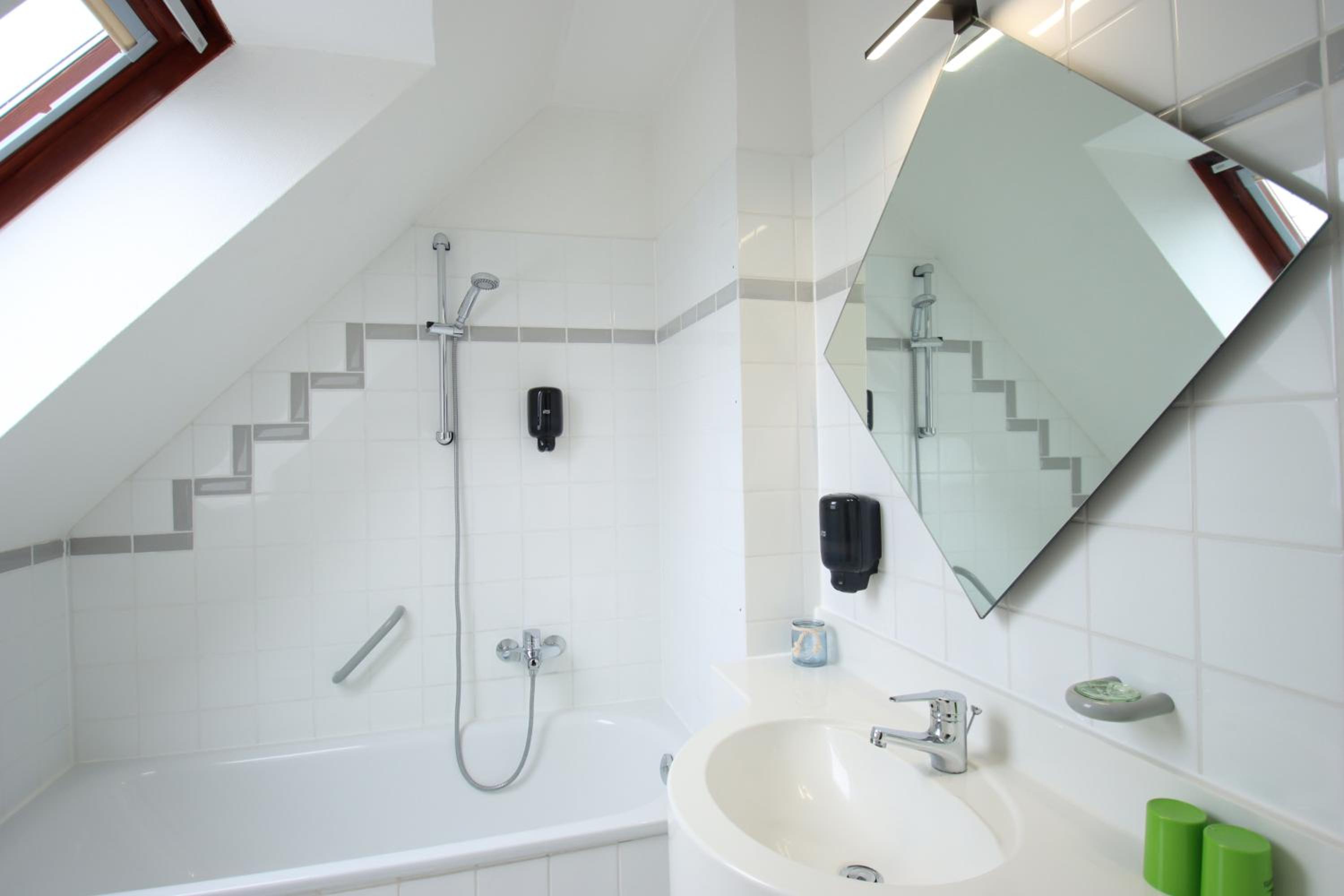 Wir hatten eine Wanne im Bad diese war nicht sehr hoch und sehr glatt. Zum Duschen etwas schwierig. Rutschgefahr.