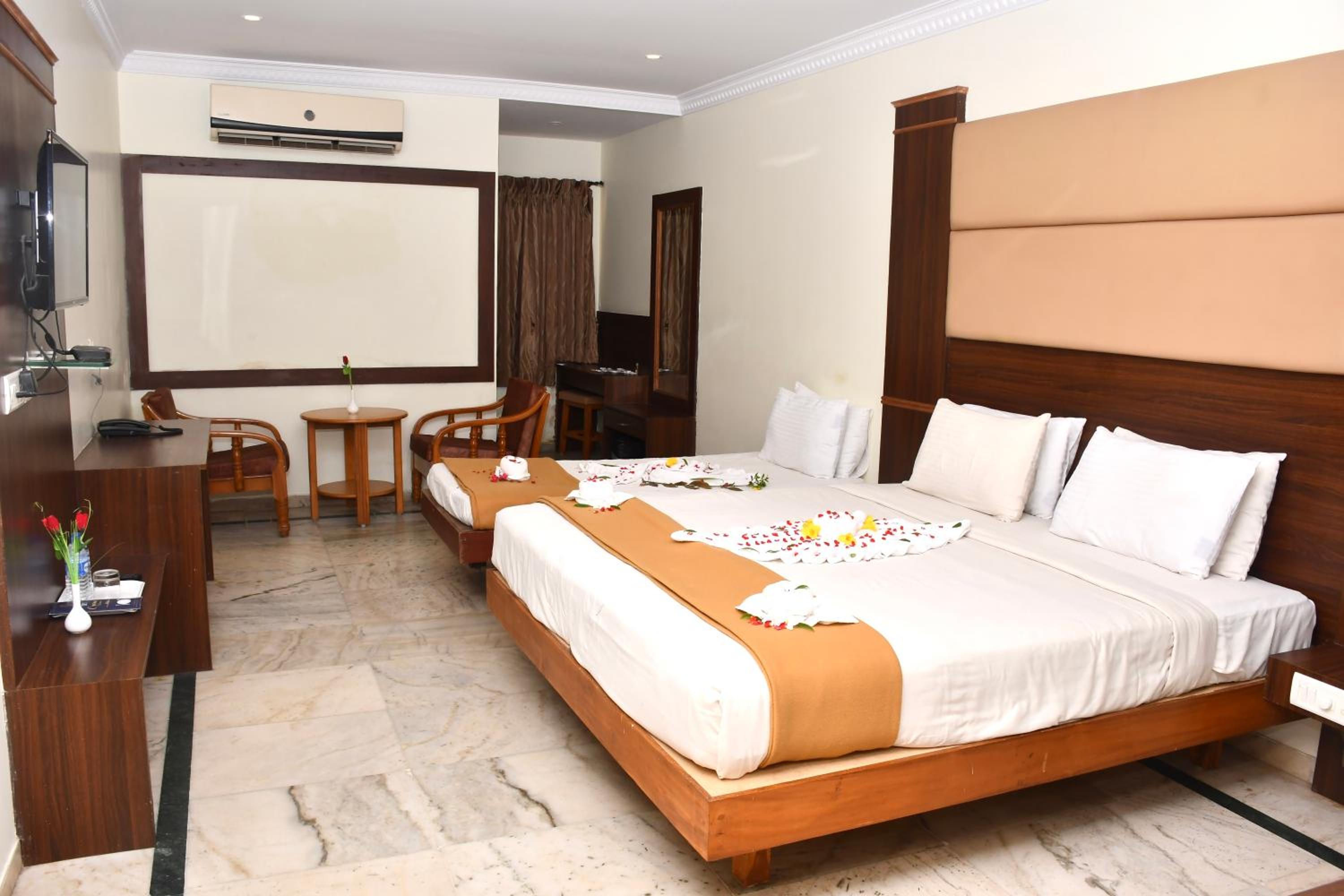 Hotel was under remodeling which was naturally not advertised during booking, so there was a general look and feel of dust everywhere. There was a general feel of uncleanliness in the family rooms I paid for. The bathroom has an unpleasant smell. The bedsheet was not clean when we walked in but they replaced it right away. The restaurant food was just average, not recommended even for coffee (they offer Nescafé which is a pity considering Kumbakonum degree coffee is amazing). Better to go to nearby Balaji Bhavan for meals.