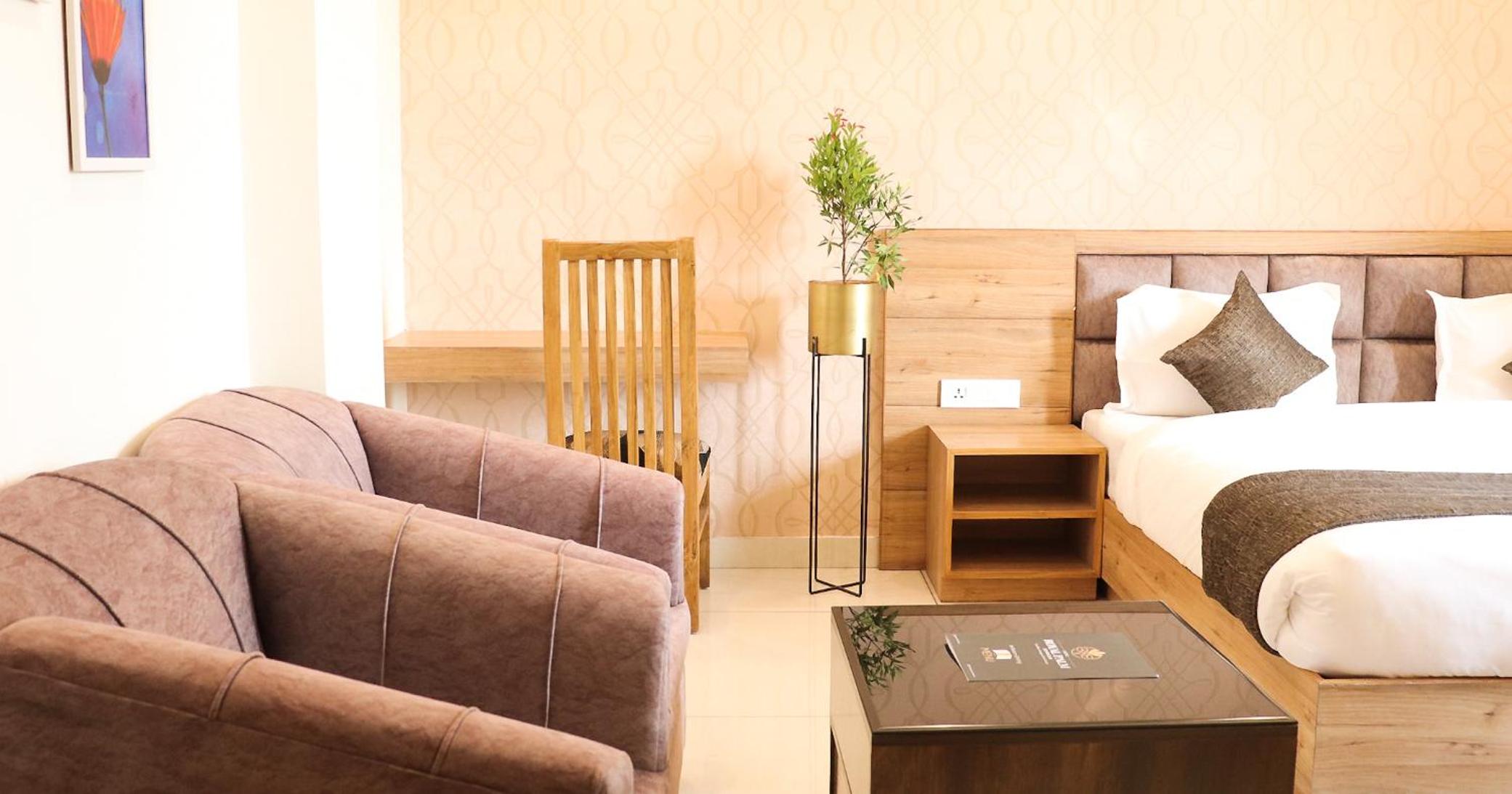 Hotel Royal Palm Dehradun offers modern amenities such as air conditioning, flat-screen TVs, and free WiFi.