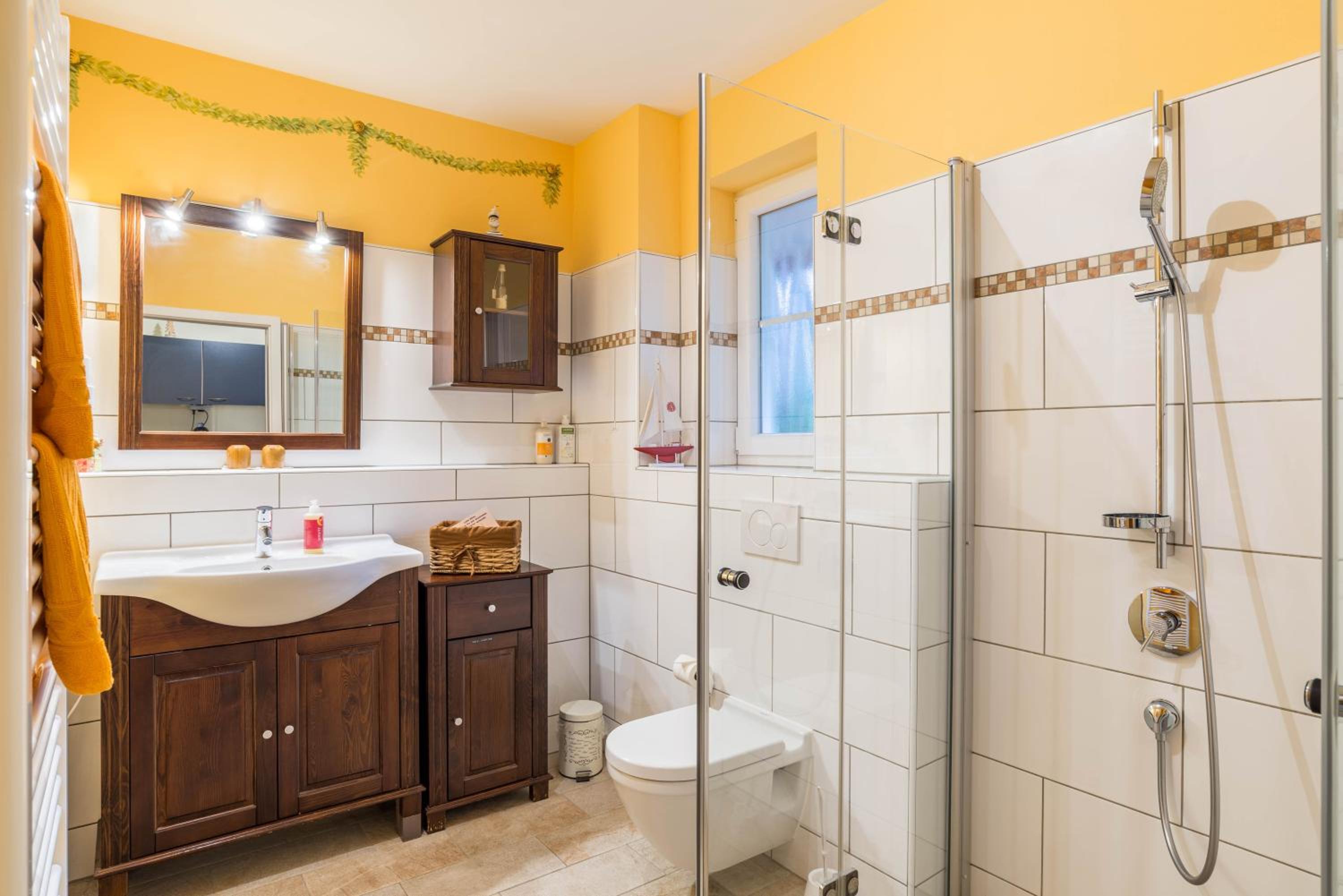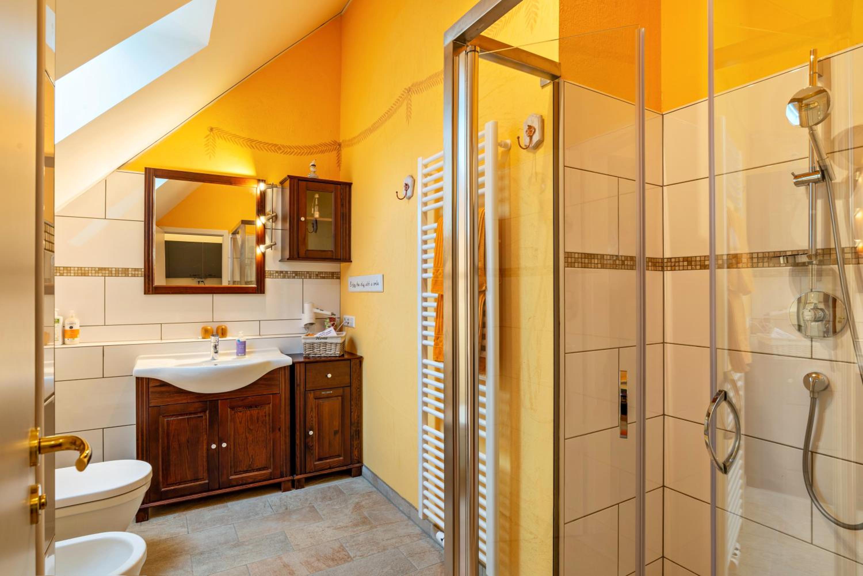 Das Bad ist sehr geräumig und sehr sauber. Der