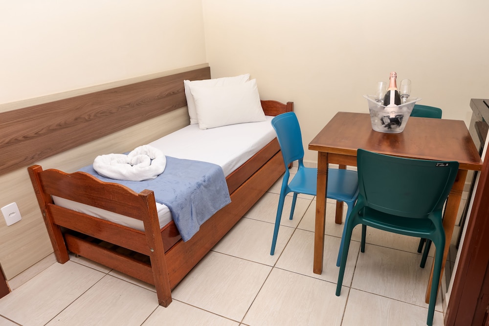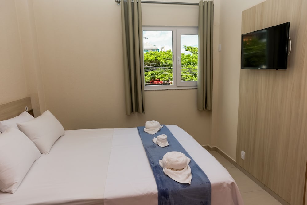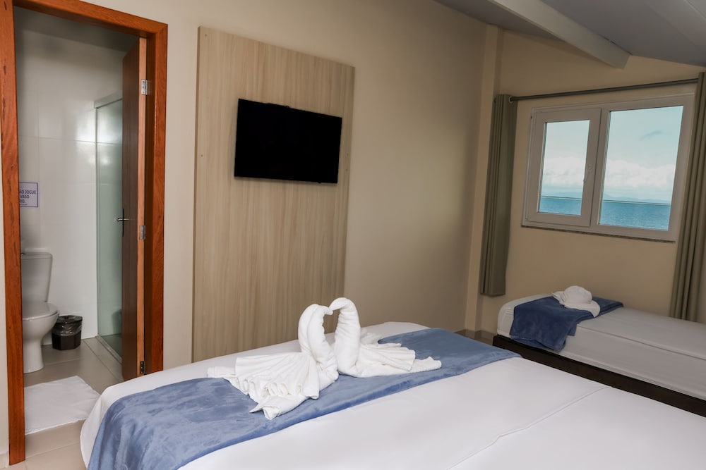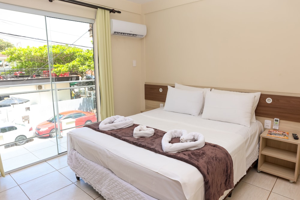 Reservamos um quarto na pousada, chegamos e o quarto estava ocupado, nos colocaram no hotel em um quarto lateral nos fundos de frente para outro prédio, motivo pelo qual, em pleno dia, tinha que ficar as cortinas fechadas, por total falta de privacidade. A chave da porta estava quase quebrando, entrava no quarto e tinha cheiro de barata, banheiro com luz fraca e cheirando mal. Pontos positivos, localização, estacionamento, cadeiras e guarda-sol. Ficamos imaginando como seria a pousada, já que nos deram um quarto no hotel e foi péssimo.
