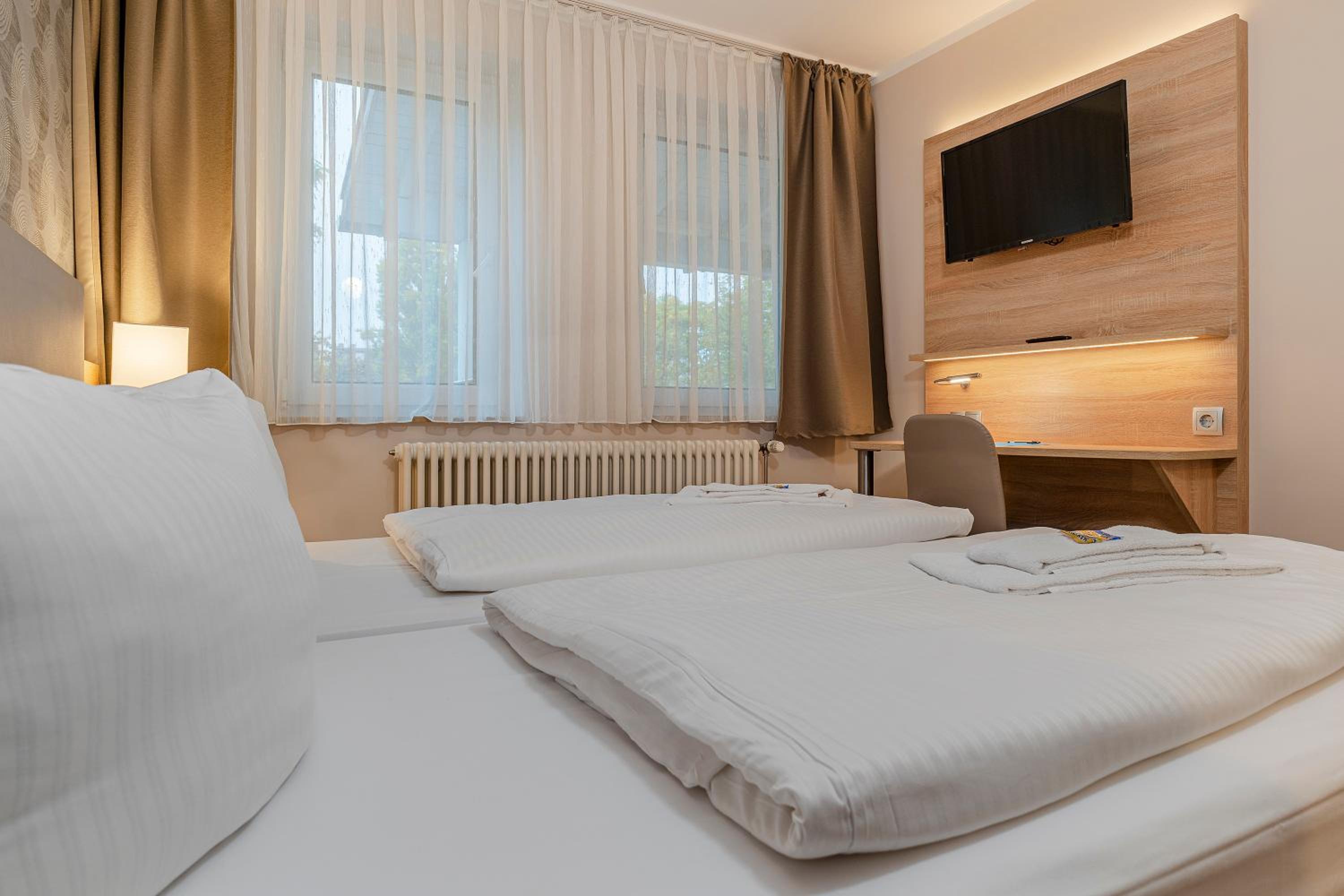 In der Nähe zum Stadion, einfache Handhabung. Nettes Zimmer. Ich war mit meinem Sohn da, der hatte Wert auf getrennte Matratzen gelegt. War alles gut