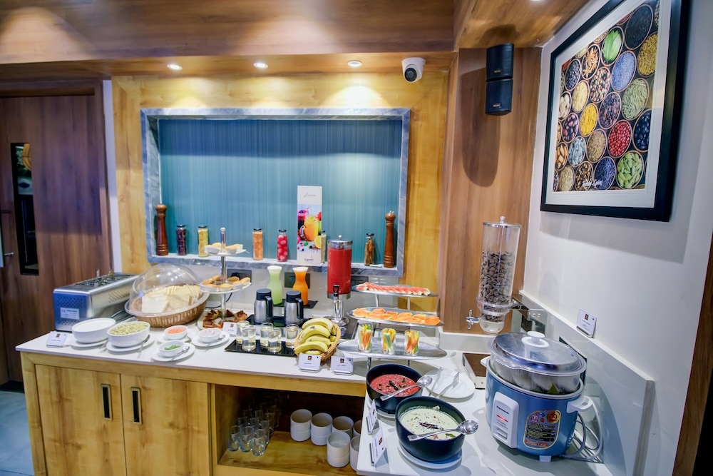 Hotel is in the busy shopping centre, plenty of choices to eat, hotel staff was good especially Swati and Rajalaxmi, very helpful and they booked the airport taxi for me……………………………………………………………………………….