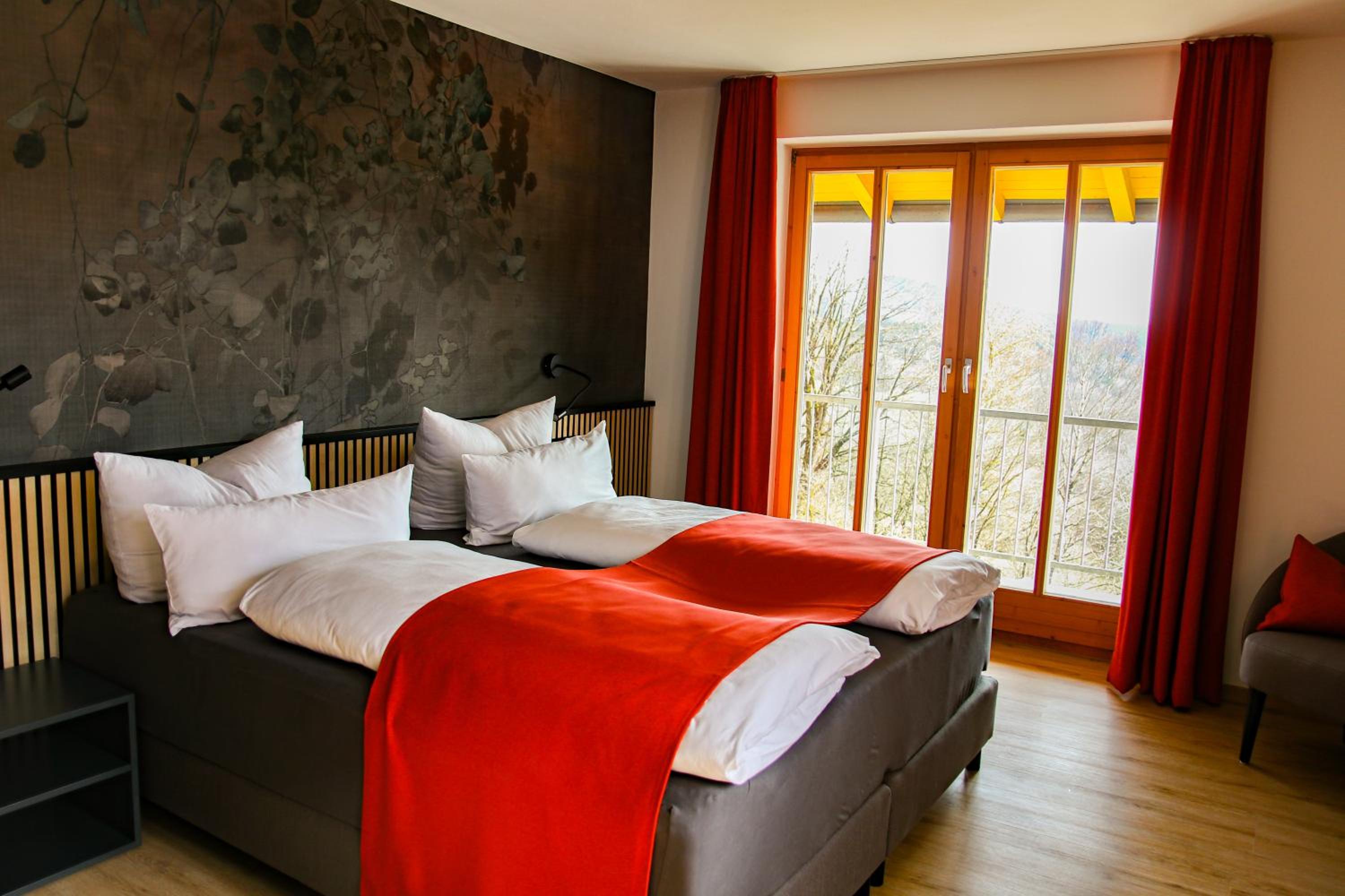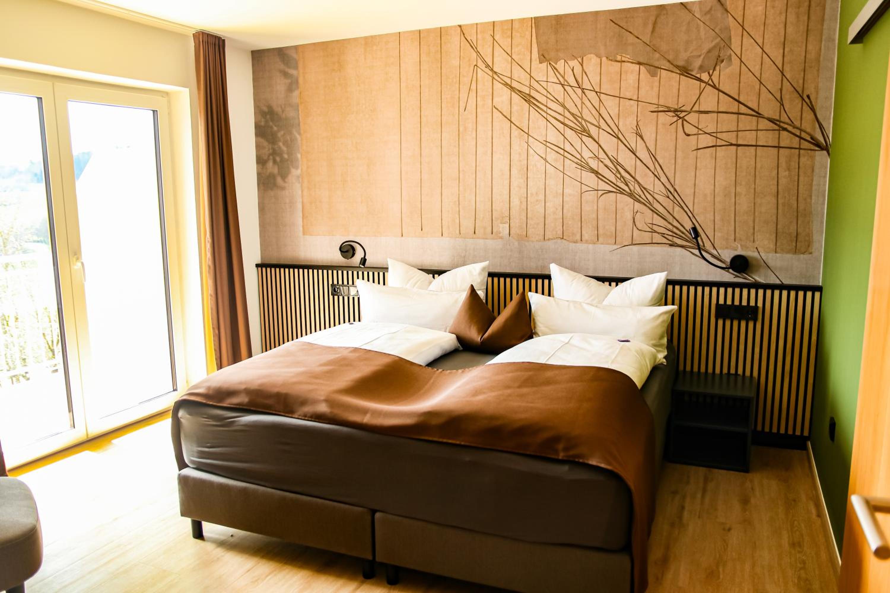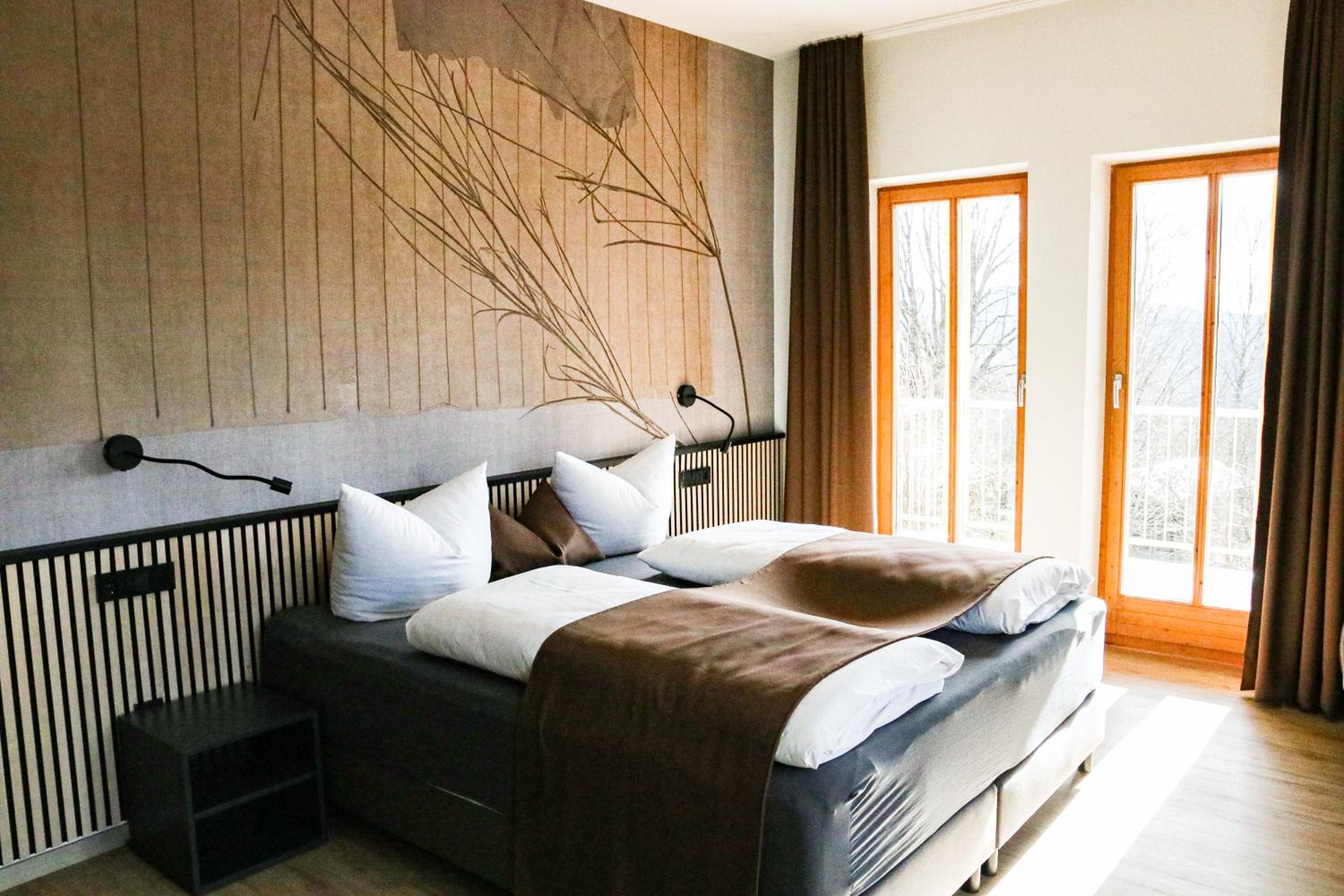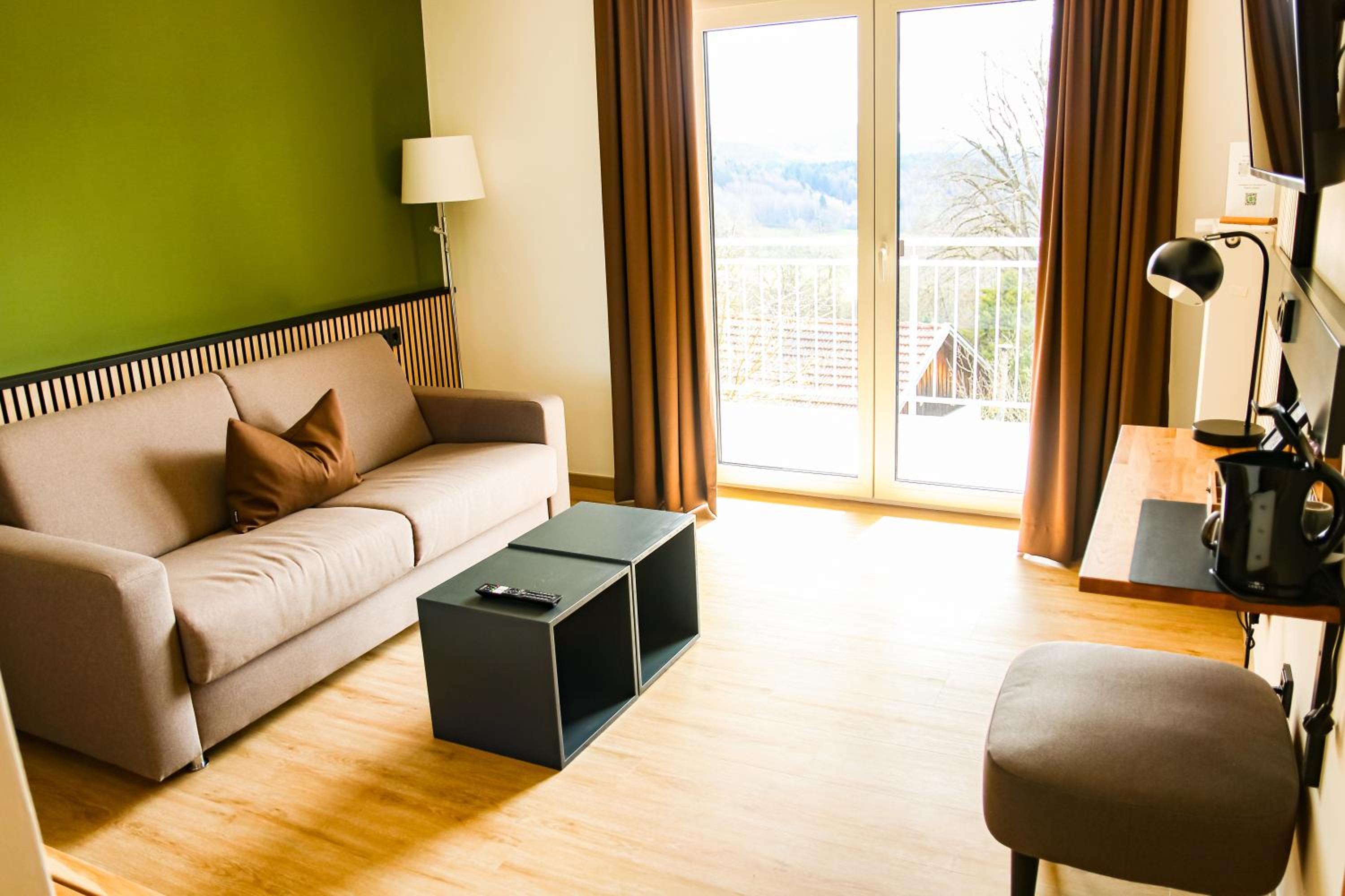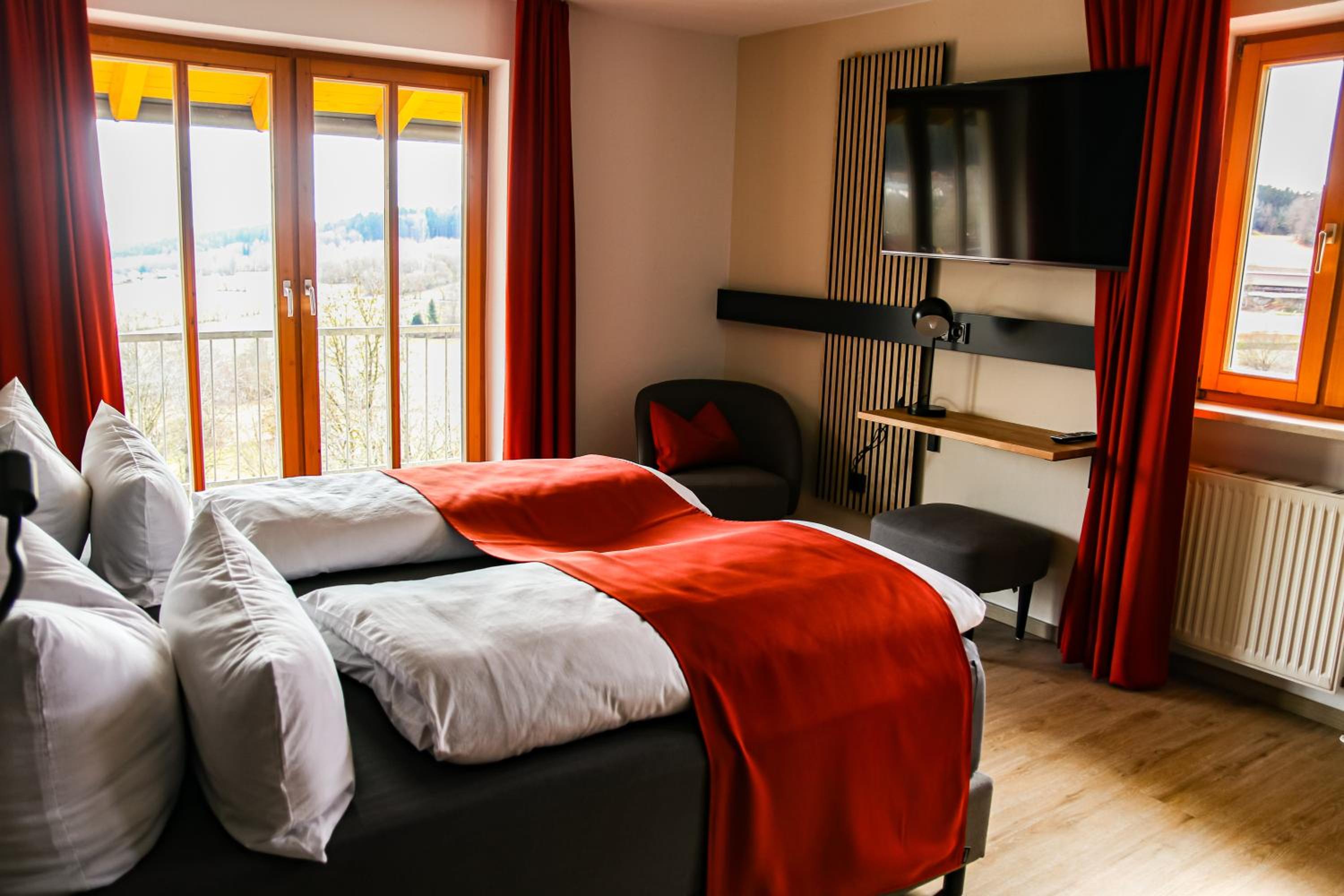 DAS PALMBERGER in Spiegelau offers elegantly furnished rooms with modern amenities including flat-screen TVs, private bathrooms, and cozy bedding. Some rooms even feature balconies with stunning garden views, ensuring a relaxing stay for all guests.