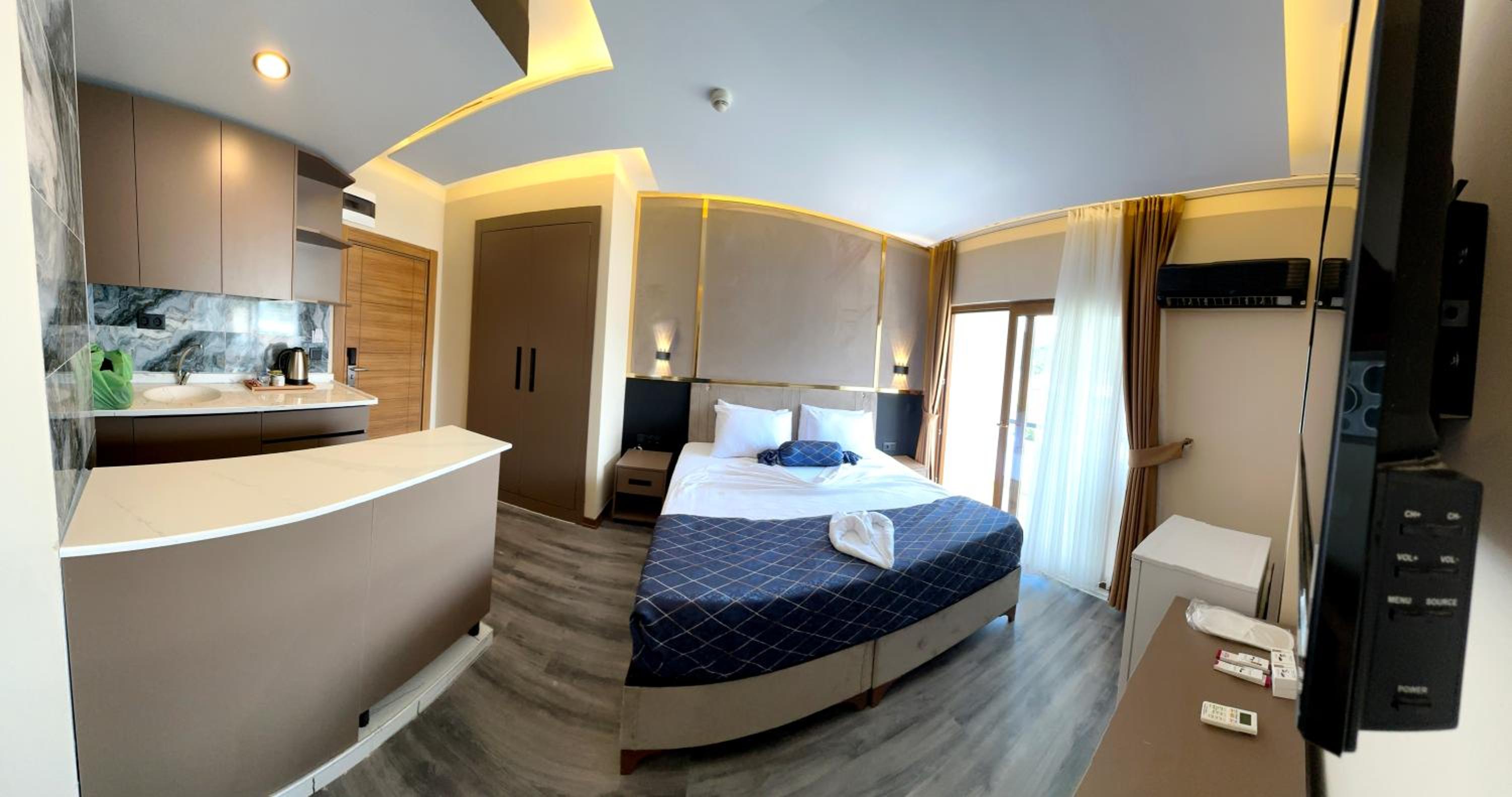 The location of the hotel is good. Near a lot of stores and the sea is not far to go. It is located in the center of Kemer.