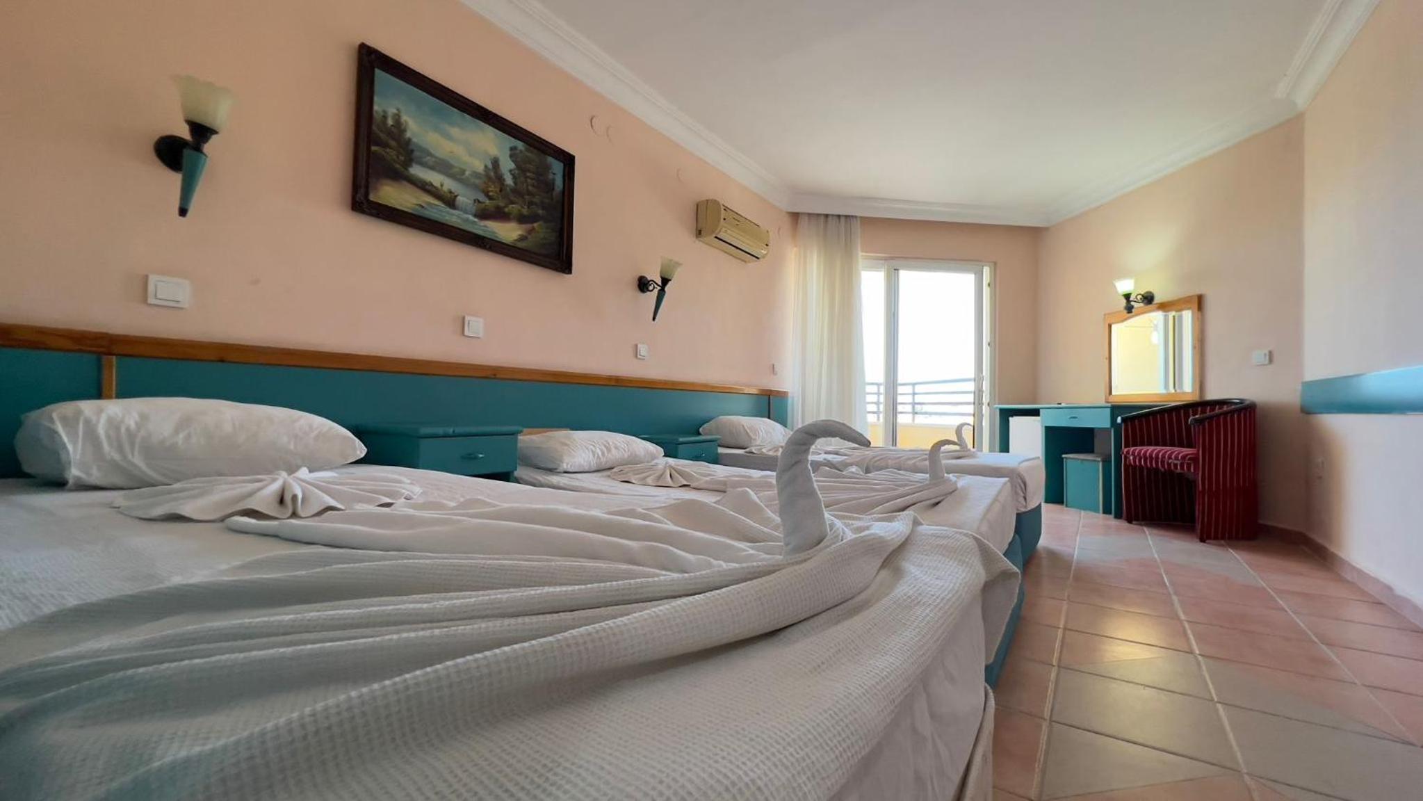 Erken rezervasyon ile ailecek gittik musteri kabul kismindaki arkadas hotels uzerinden rezervasyon hersey dahil dememize ragmen isine hakim degildi genel olarak otol temizligi odalar oda duvarlari yemekhane masadan tabaklari toplayanlar personel egitimsiz o otelde calistiklari dahi belli degildi hic hoslanmadik oysa otel konum olarak fiyat kazanc durumuna gore iyi bir isletmeci tarafindan temiz ve profesyonel destek alsa iyi tekrar gitmem .hic kimse tabaklari kokan catal kasiklari eski ve kirli bir yerde konaklayip yemek yemek istemez.kisacasi üzüldük.