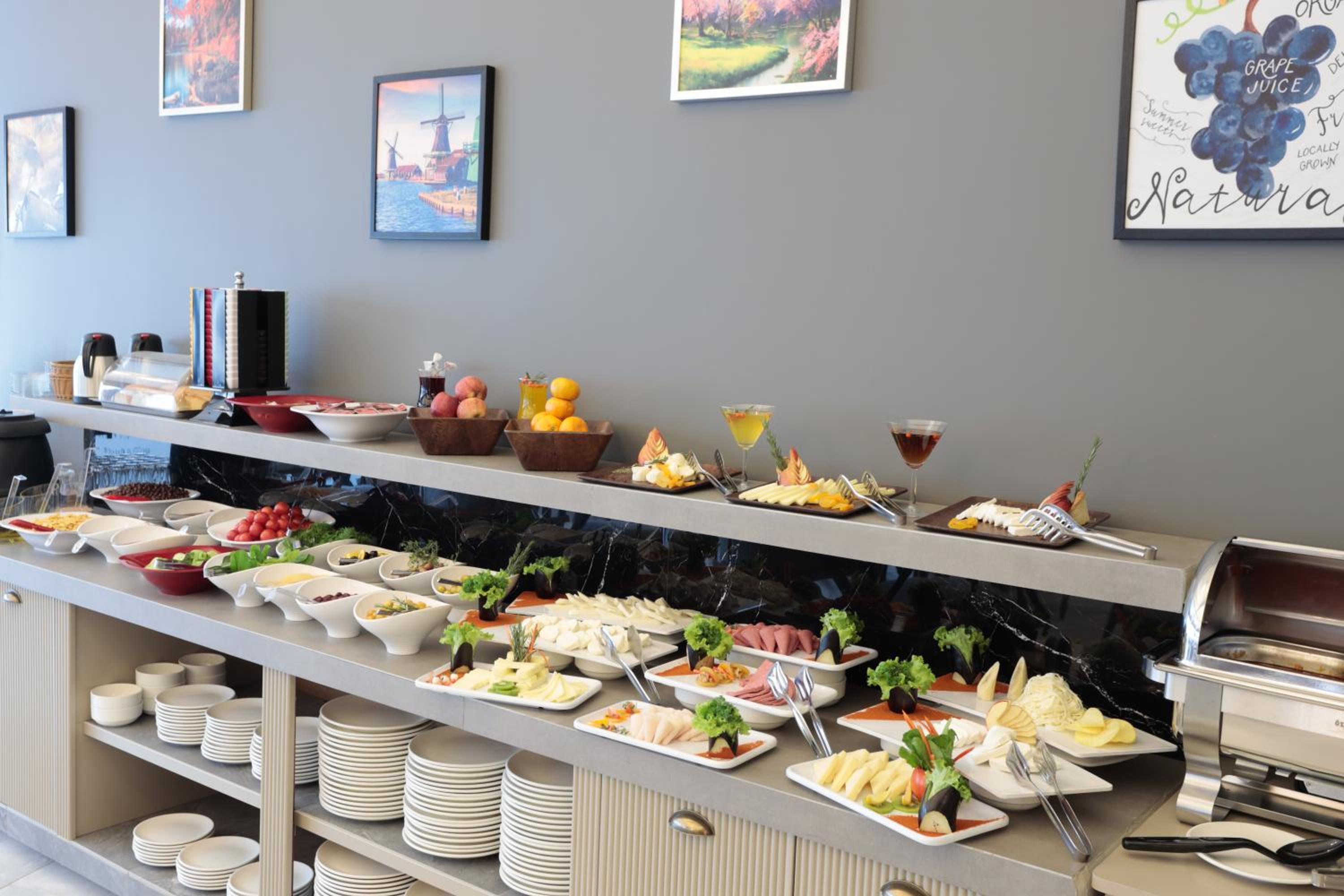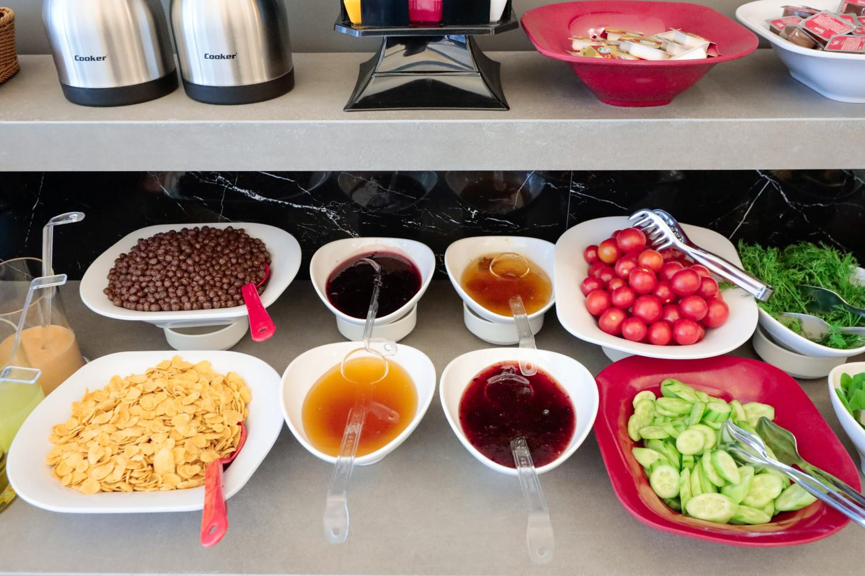 Simple open buffet breakfast, limited drink choice, no juice, no coffee, no water etc..