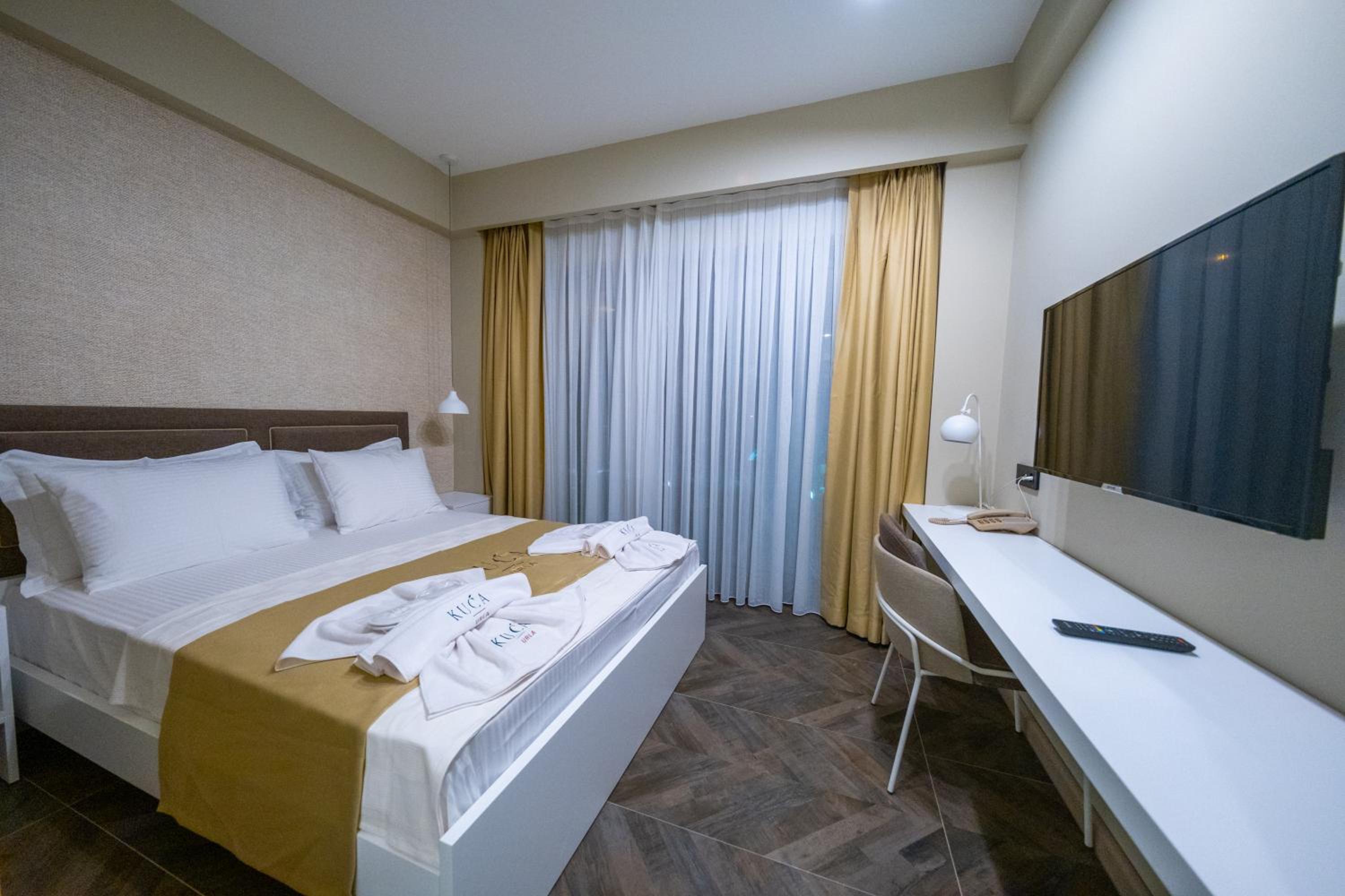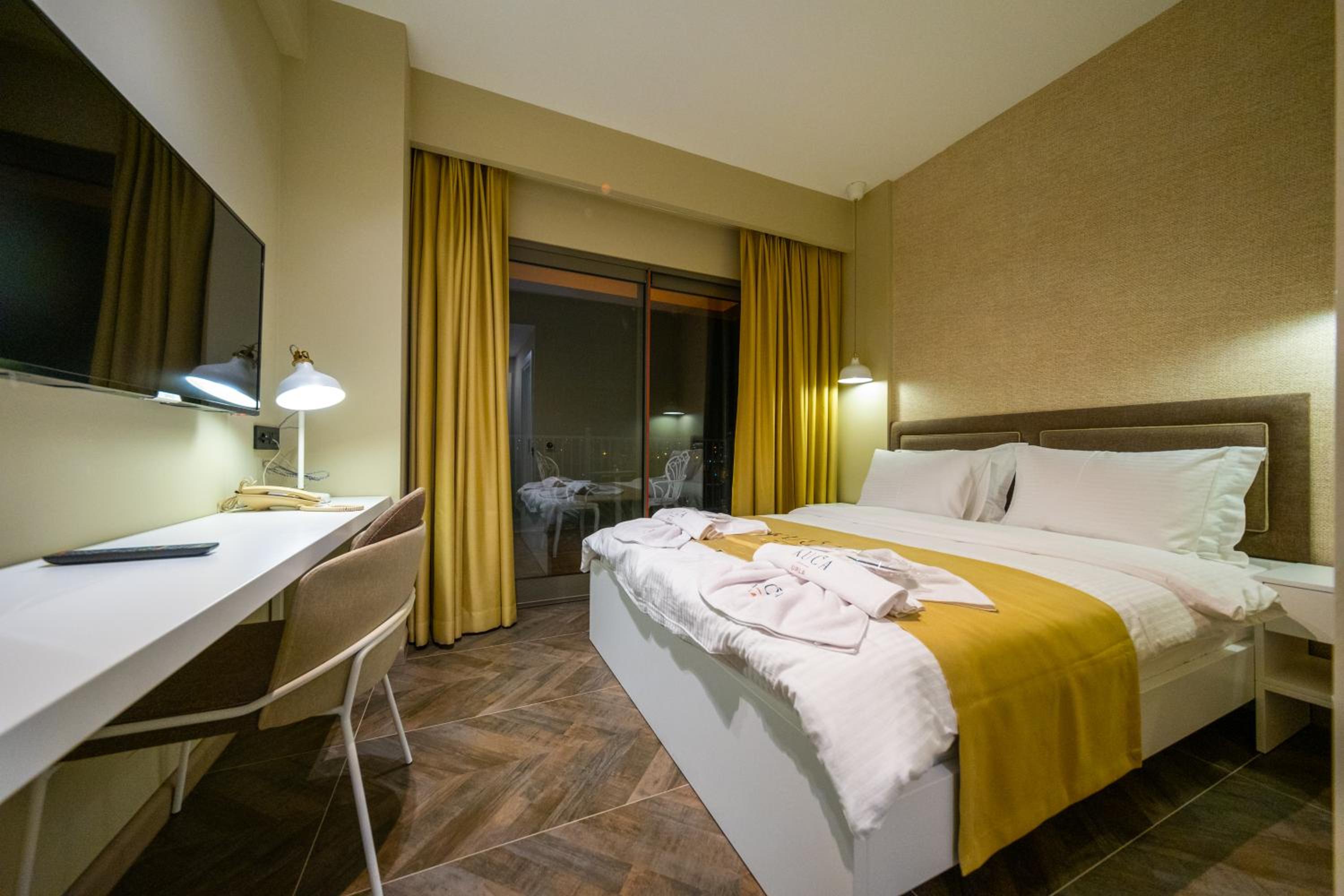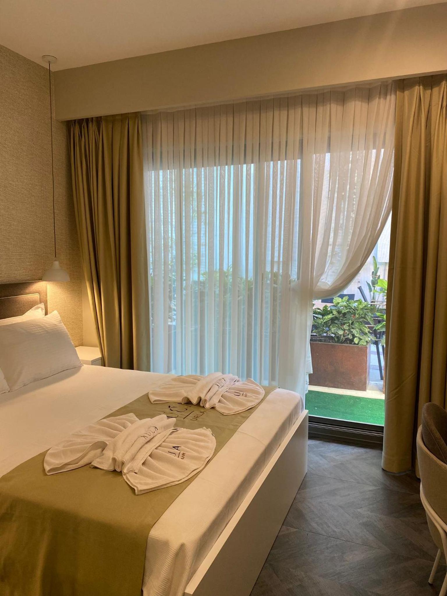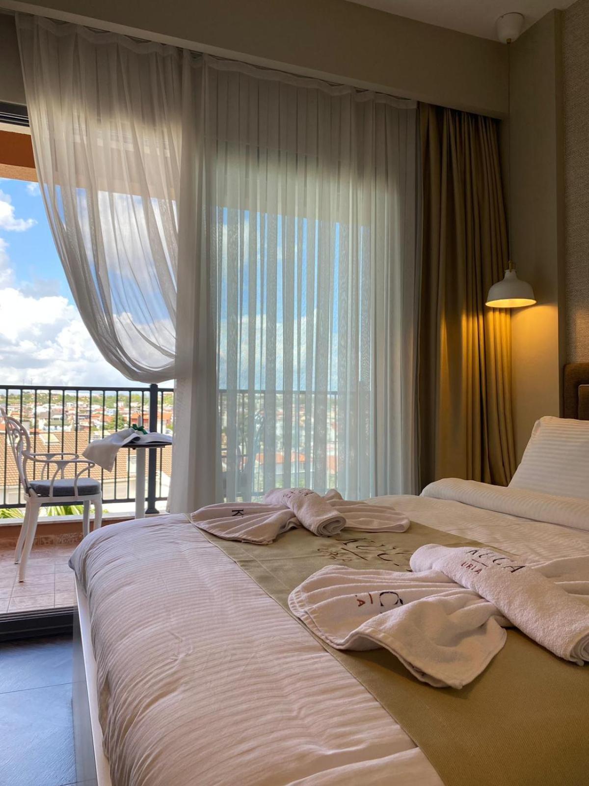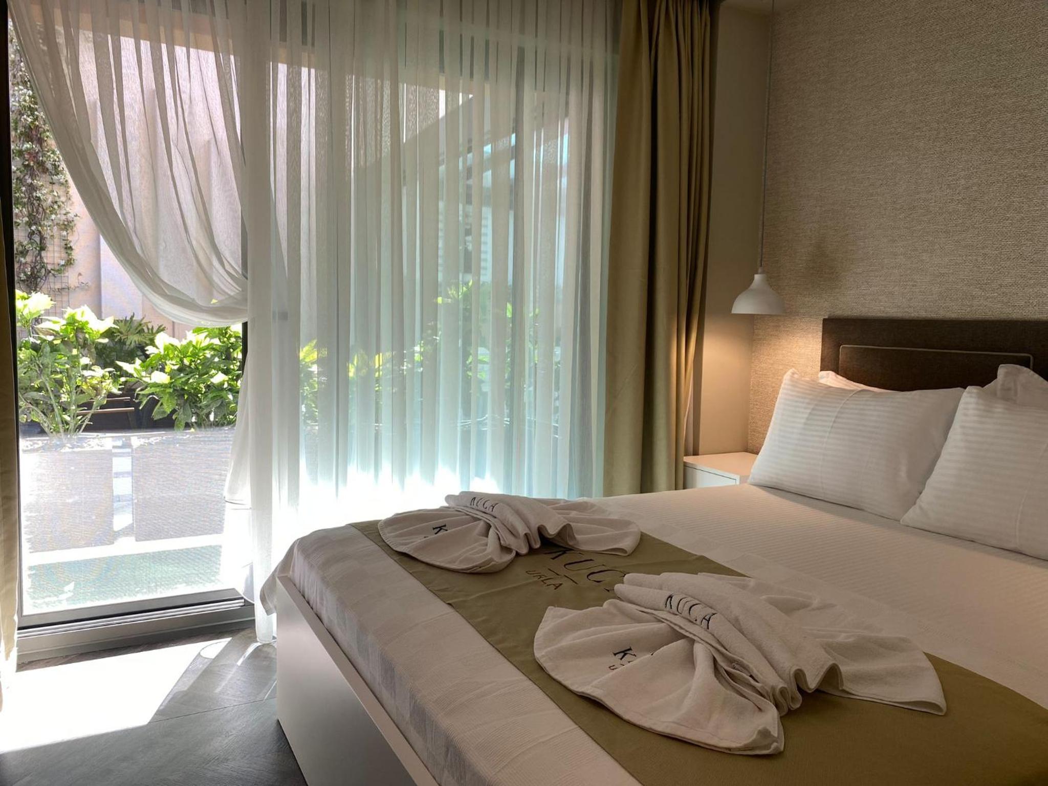 Each room at KUCA URLA features a private bathroom, with some offering balconies and city views, ensuring a comfortable stay.