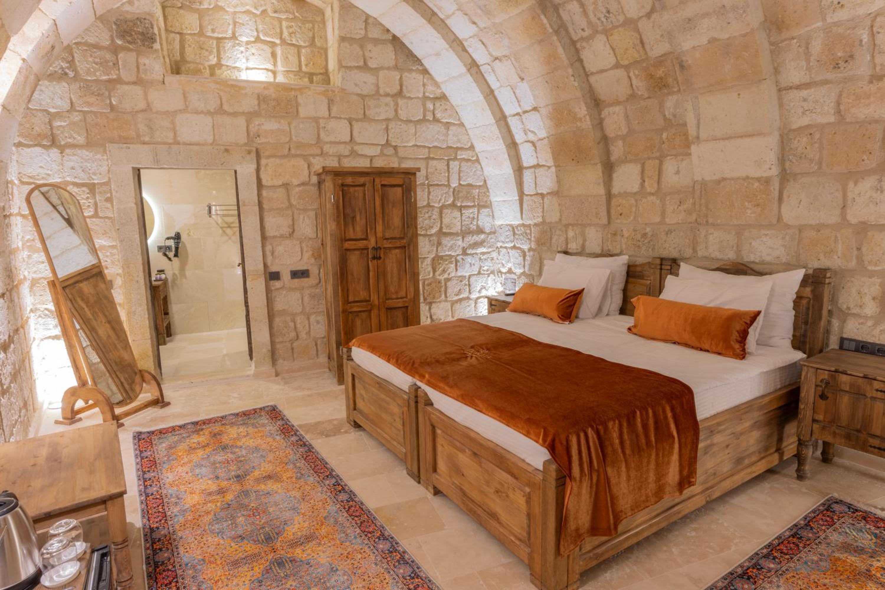 Odanın genişliği, kullanılan malzemelerin kalitesi çok güzeldi, kahvaltı ortalama. Mağara olmasından dolayı retsosratyon sıkıntısı varıdr muhtemelen anlıyorum ama kaldığımız odada wc için ayrı kapı yerine sadece perde olması konforumuzu biraz zorladı. Oda için fan ayarlamalarına da ayrıca memnun olduk, yoksa uyumak biraz zor olacaktı :)